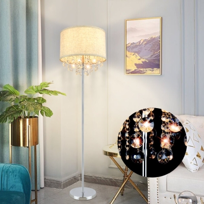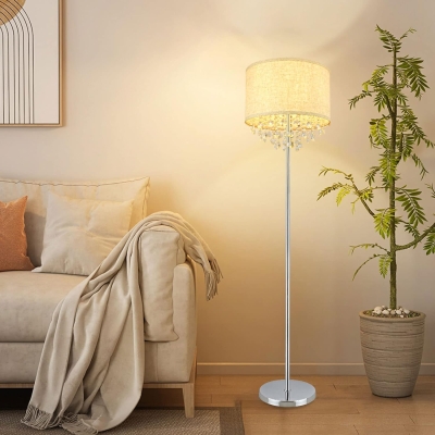 DLLT-kristallilattiavalaisin olohuoneeseen Moderni seisomavalaisin makuuhuoneeseen, kromiviimeistely, 64" korkea napainen LED-lattiavalaisin, 9W LED-polttimo mukana, kangasvarjostin, hopea