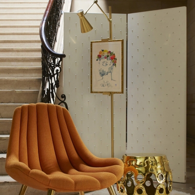 Carins Modern Art-deco-metallinen maalausteline, säädettävä lattiavalaisin, messinkiä