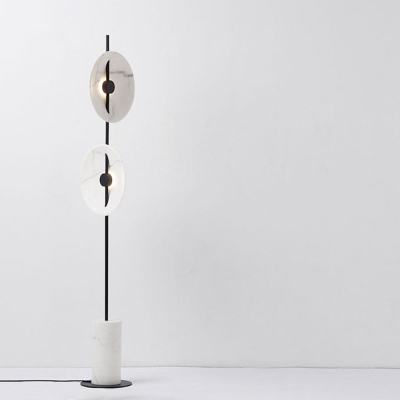 Salgado Moderni pohjoismainen pyöreä marmori/metallilattiavalaisin, valkoinen