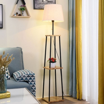 Eryn Modern Cone metallikankainen lattiavalaisin / w hylly, musta