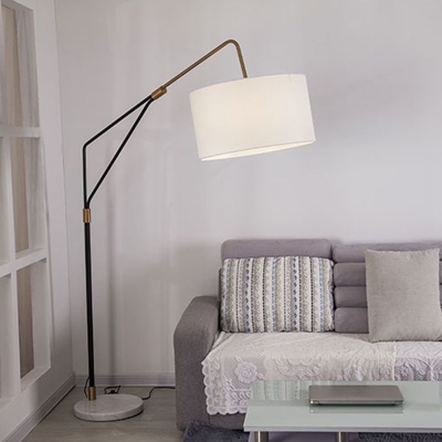 Eryn Modern kaarisylinterinen metallikankainen lattiavalaisin, musta/valkoinen