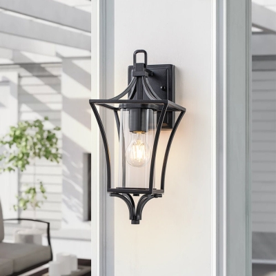 IP44 musta vedenpitävä 1-kevyt lyhty ulkoseinävalaisin