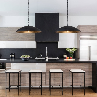 Vintage ylisuuri litteä kupolimetalliriippuvalaisin