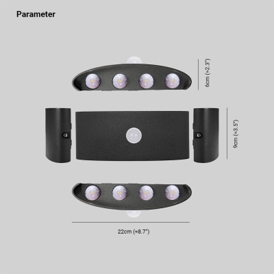 Orr Moderni kameran muotoinen metalli/akryyli vedenpitävä ulkoseinävalaisin kohdevalo, musta