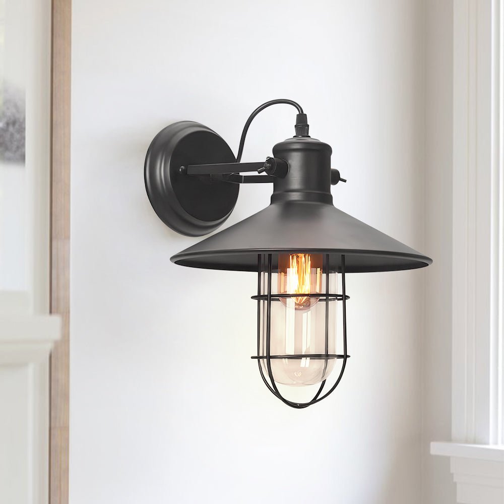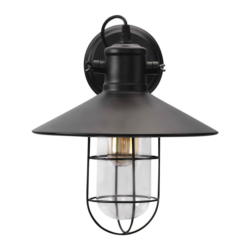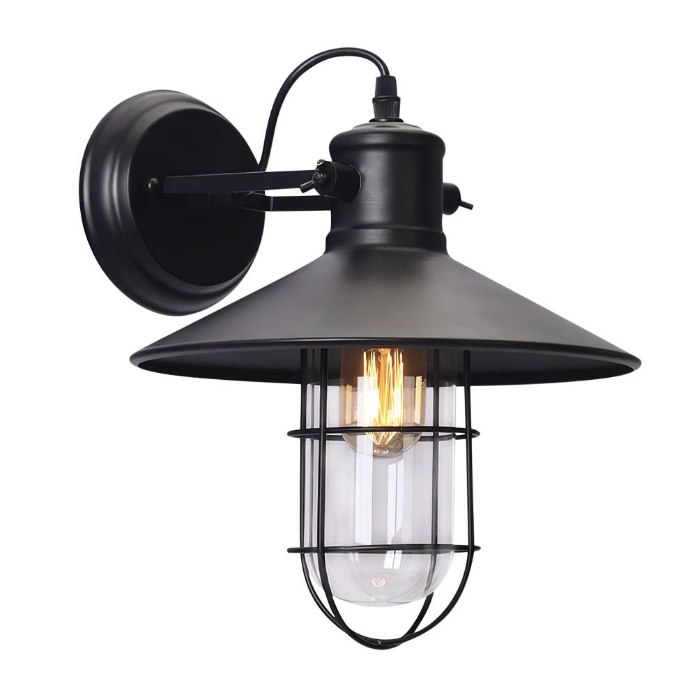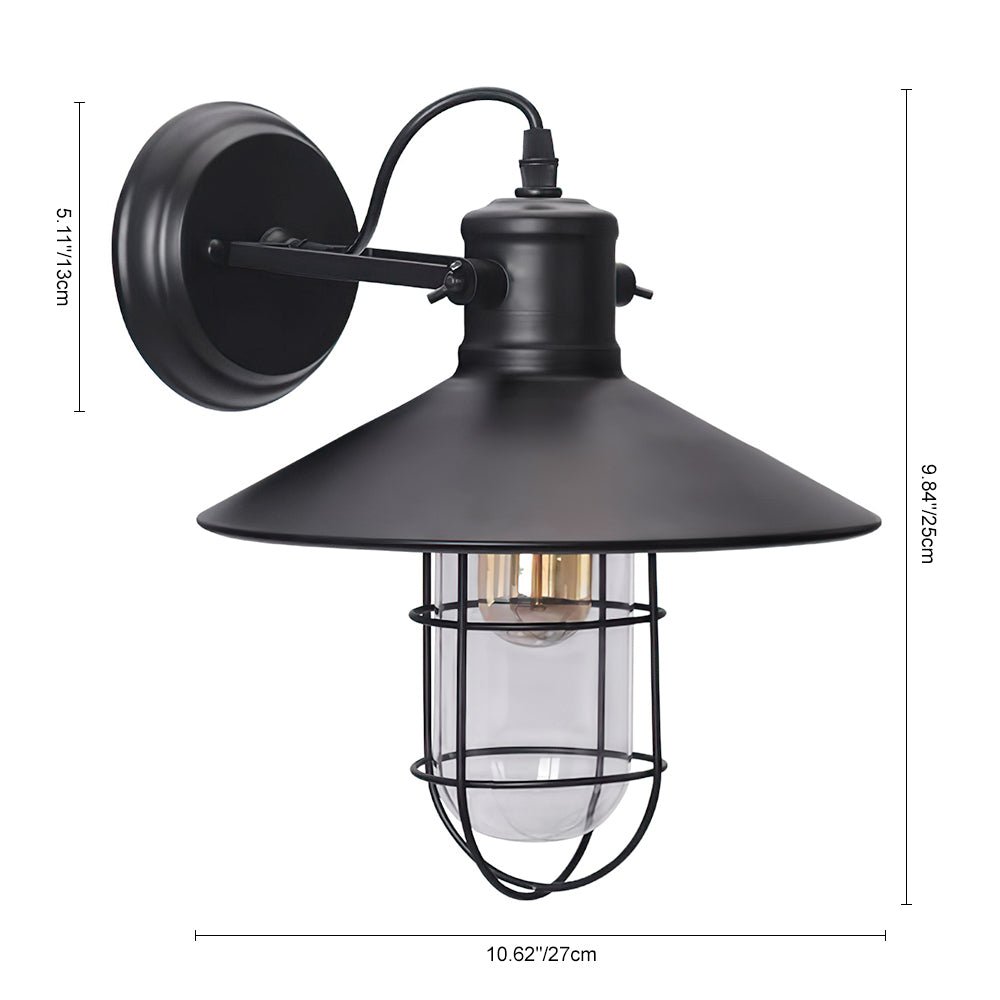 Tämä mattamustalla viimeistelty 1-valaisin navetan seinävalaisin on loistava valinta moderneihin maalaistaloihin, teollisuus-, perinteisiin tai vintage-tiloihin. Tässä teollisessa seinävalaisimessa on litistetty kartiovarjostin, jonka alla on lankasuojakehä. Sisällä E26-pohjainen polttimo (ei poissuljettu) valaisee työvalon alas kirkkaan lasivarjostimen läpi. Suosittelemme tämän 1-valaisimen modernin navetan seinävalaisimen käyttöä keittiön, eteisen, olohuoneen, makuuhuoneen, kylpyhuoneen tai ruokailutilan tyylin parantamiseen.Tiedot