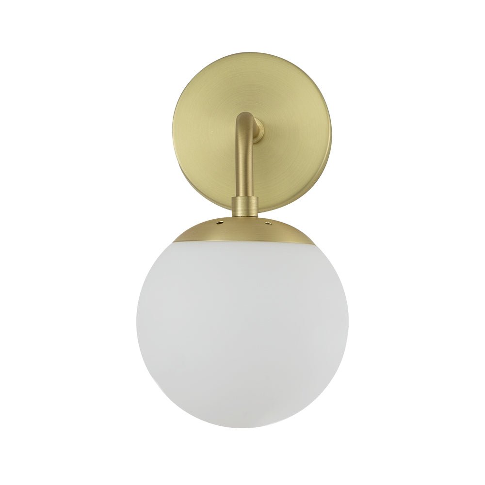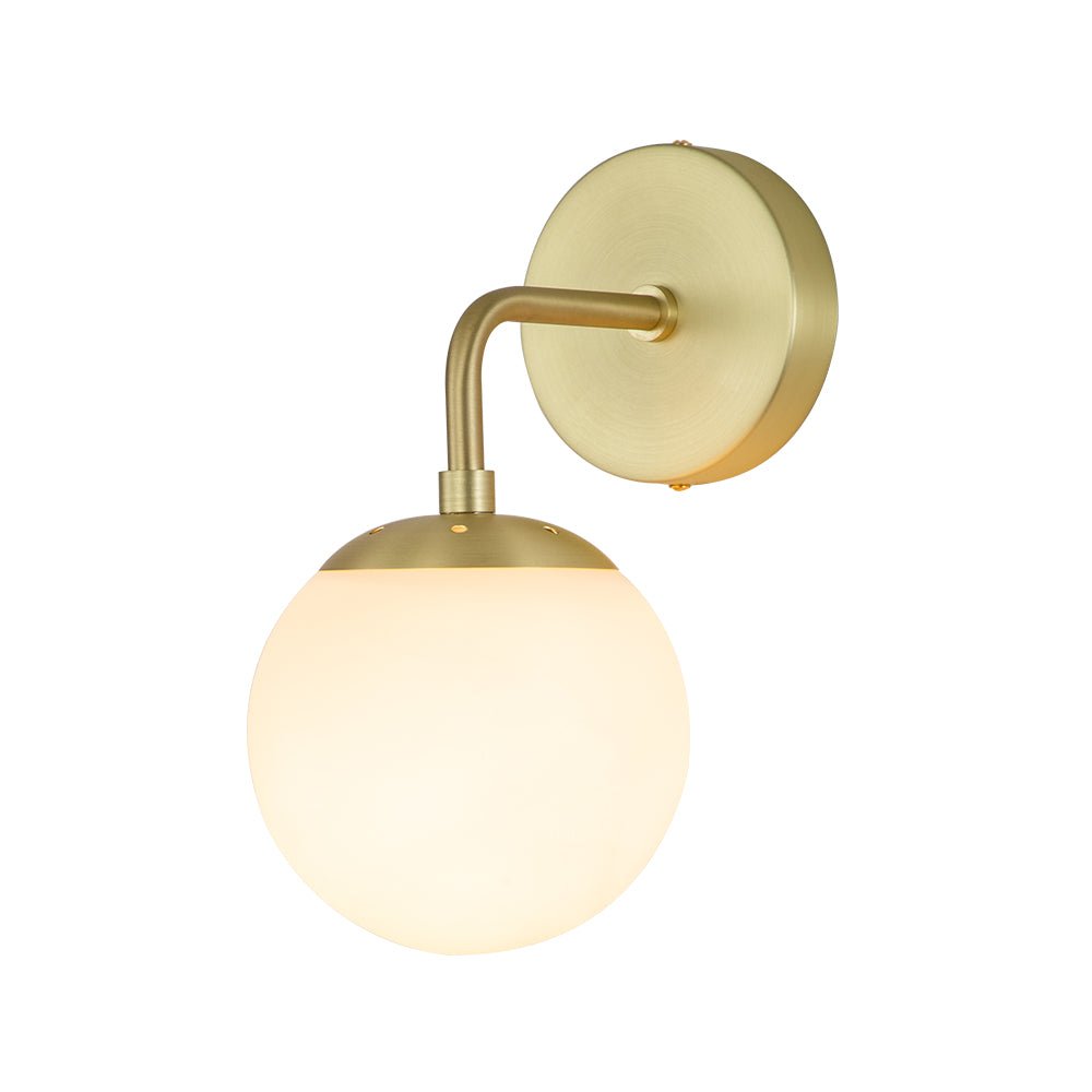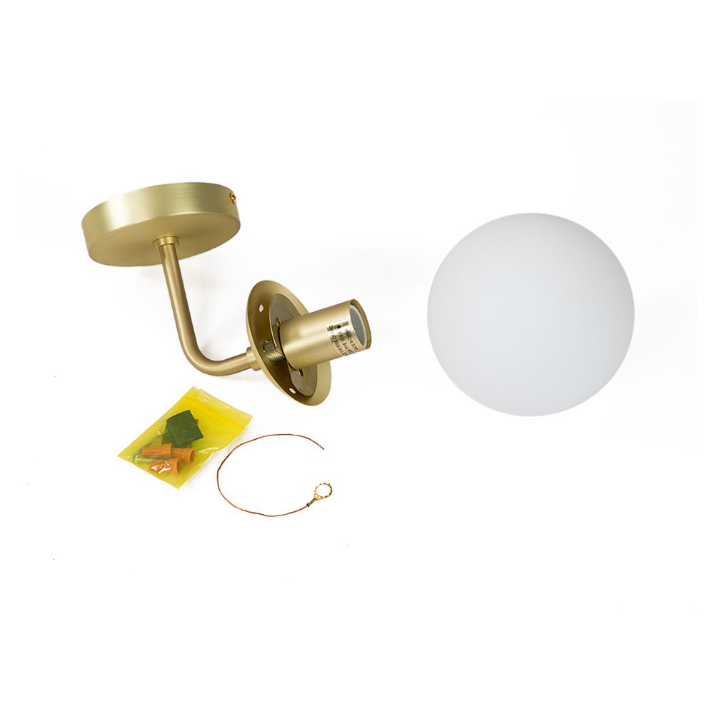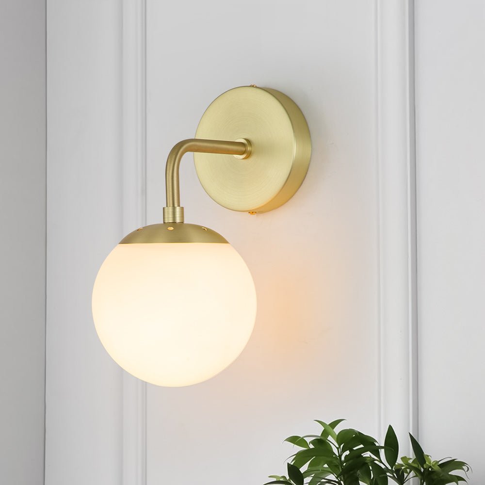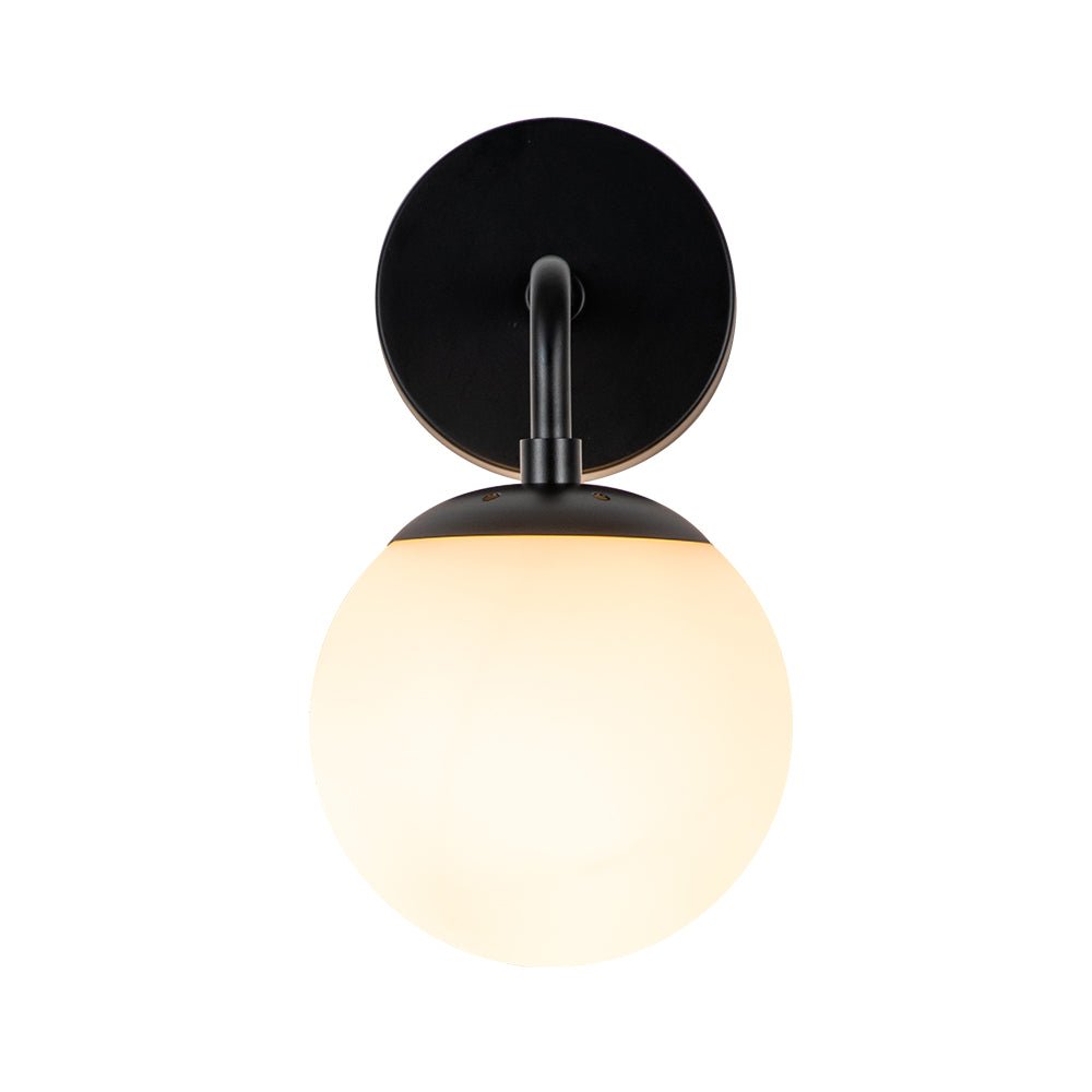 Yksinkertainen mutta elegantti, nykyaikainen vuosisadan puolivälin seinävalaisin, jossa on lyhyt kaareva varsi, joka roikkuu tyylikkäässä maitomaisessa lasipallon varjostimessa. Yhdellä keskikantaisella E26/E27-polttimolla (ei sisälly toimitukseen) tämä himmeä lasipalloseinävalaisin luo kodikasta tunnelmallista valaistusta tilaan. Tämä mustalla tai messingillä viimeistelty opaalilasipalloseinävalaisin sopii hyvin olohuoneen, sohvaalueen, sängyn ja eteisen valaisemiseen.