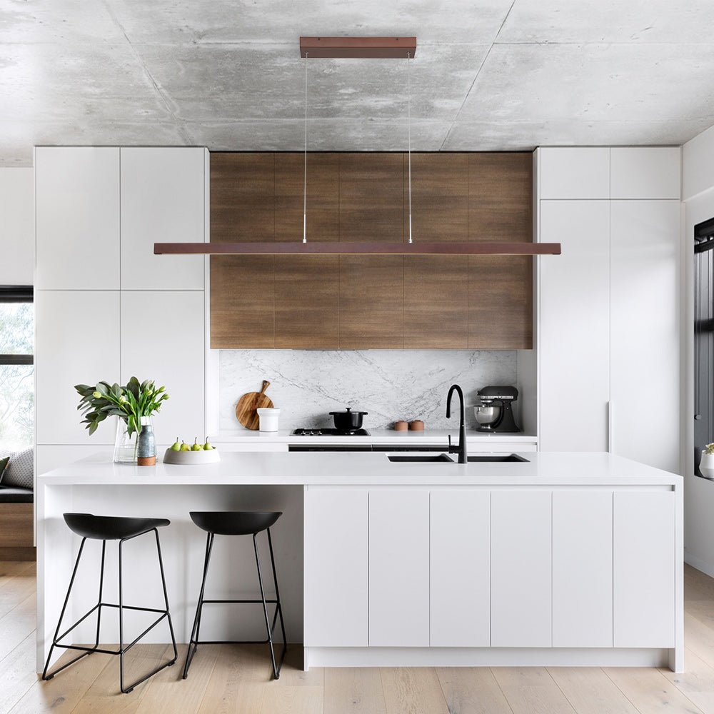 - Luonnonpuusta valmistettu lineaarinen kattokruunu
