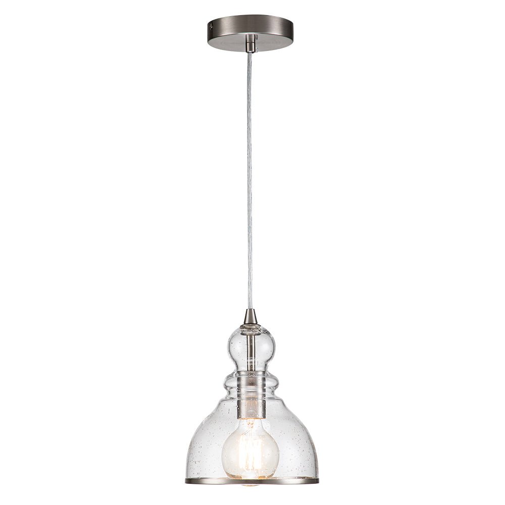 One Light • Harjattu nikkelipinnoite • Kellomainen muoto • Kylvetty lasivarjostin • E26 Keskikantainen polttimo (ei sisälly) • Kiinteä • UL-listattu