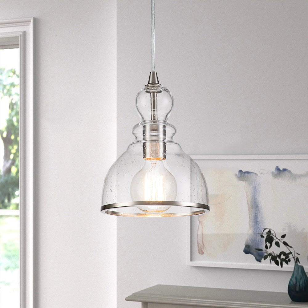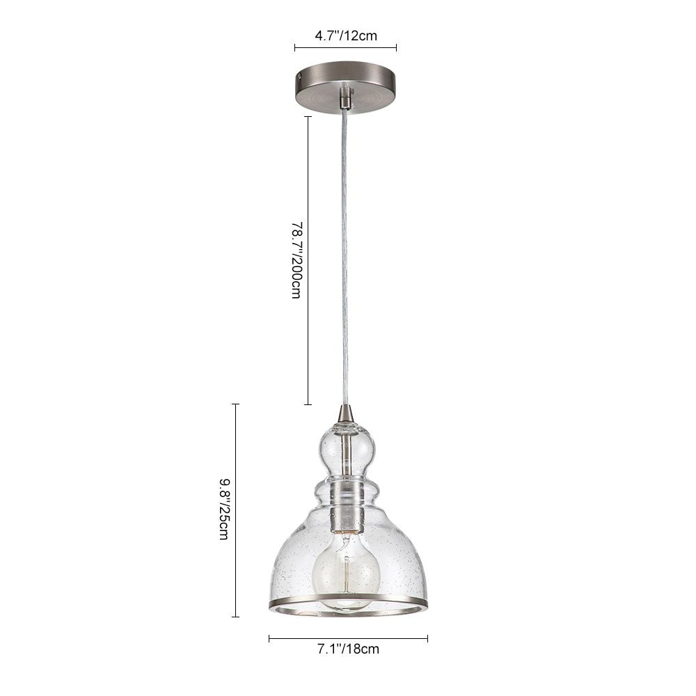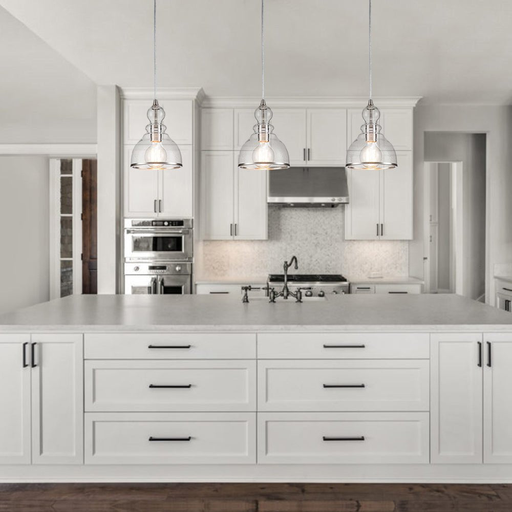 Yksinkertaisesti tyylikäs ja siirtymävaiheen maalaistalotyyli, tämä yksittäinen lasinen riippuvalaisin sopii yhteen useiden eri tyylien kanssa, ja sitä voidaan käyttää yksittäin tai kerrannaisina keittiösaarekkeen tai ruokasalin viimeistelyyn. Tässä keittiön riippuvalaisimessa on kellomainen varjostin, jossa on tyylikkäät sulavat muodot. Se on valmistettu kirkkaasta lasista, joka on korostettu harjatulla nikkelillä. Himmennettävä tunnelman joustavuuden lisäämiseksi ja säädettävä ripustuskorkeuden mukaan. kaluste parantaaksesi elämäntapaasi.Tiedot