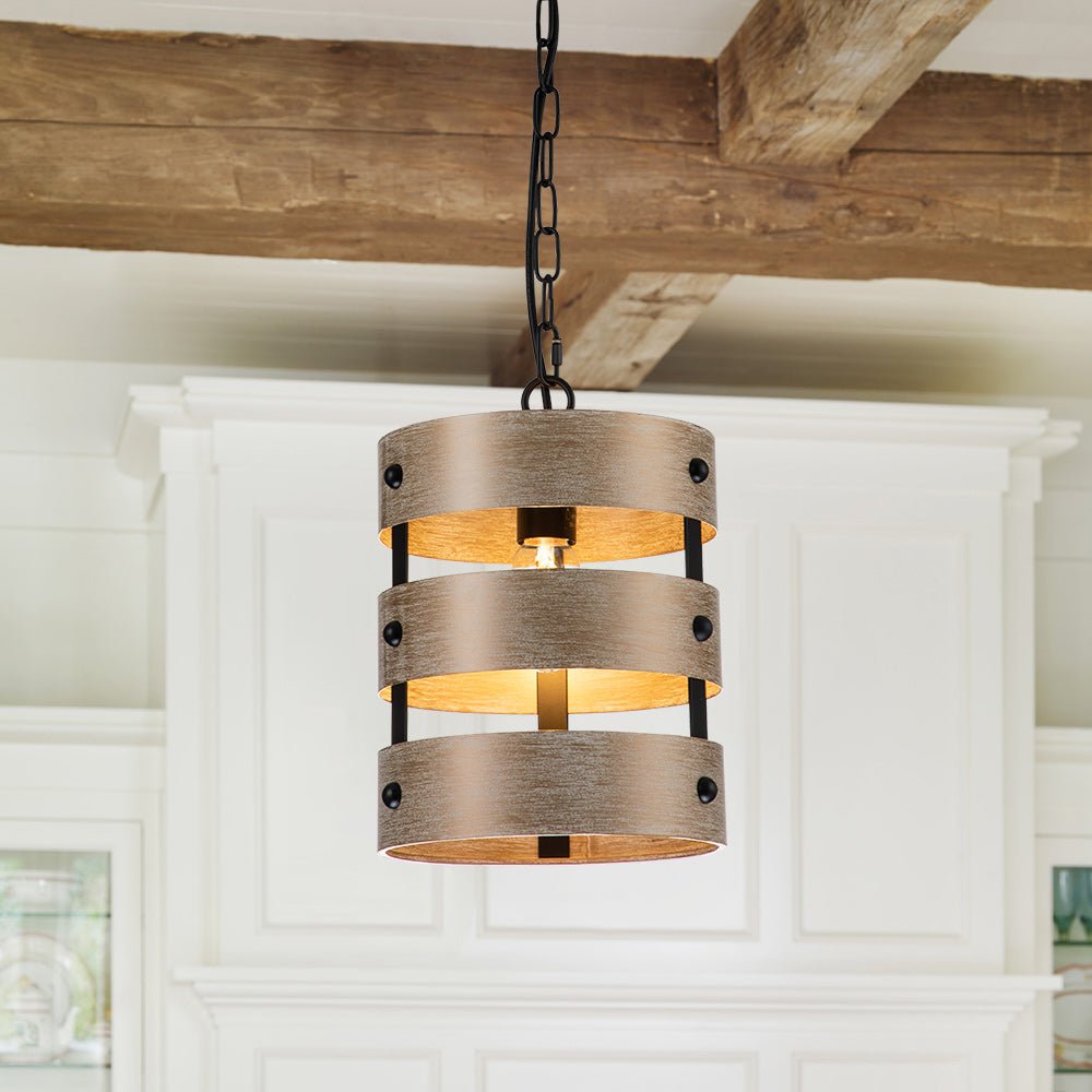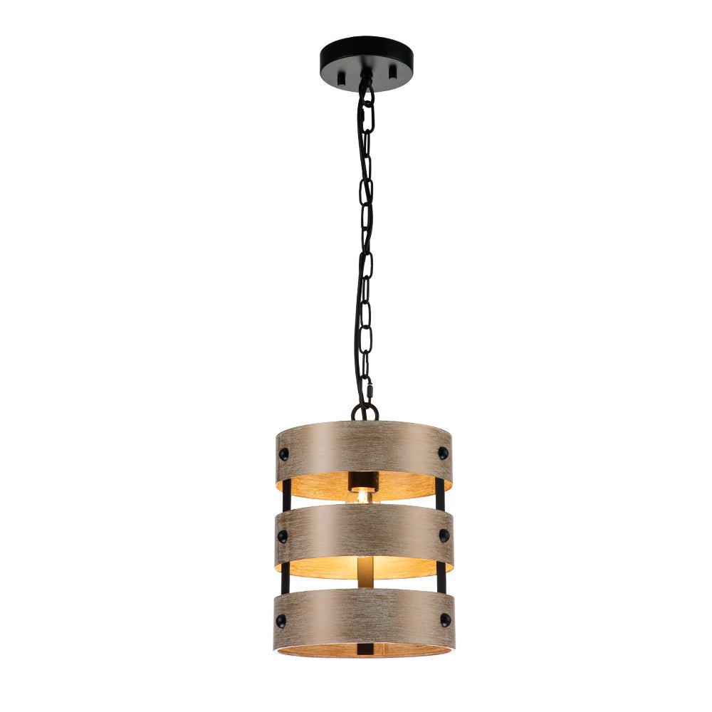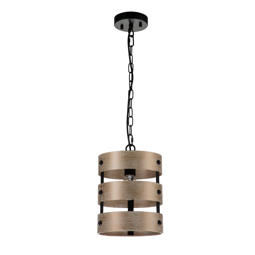Kolmirengasvarjostin, jonka avulla E26/E27-keskikantinen polttimo (ei sisälly) valaisee läpi, tämä 1-valoinen rustiikkinen sylinteririippuvalaisin jakaa kutsuvan hehkun keittiösaarekkeellesi, ruokailutilaan, kylpyhuoneeseen tai mihin tahansa muuhun asuintilaasi. . Metallista valmistettu ruskea pesty tekopuupinta peittää rungon taitavasti ja nostaa modernia maalaistaloa tähän yksittäiseen puumaiseen riipukseen. Säädettävä ripustusketju helpottaa tämän modernin maalaistalon riippuvalaisimen korkeuden säätöä.Tiedot