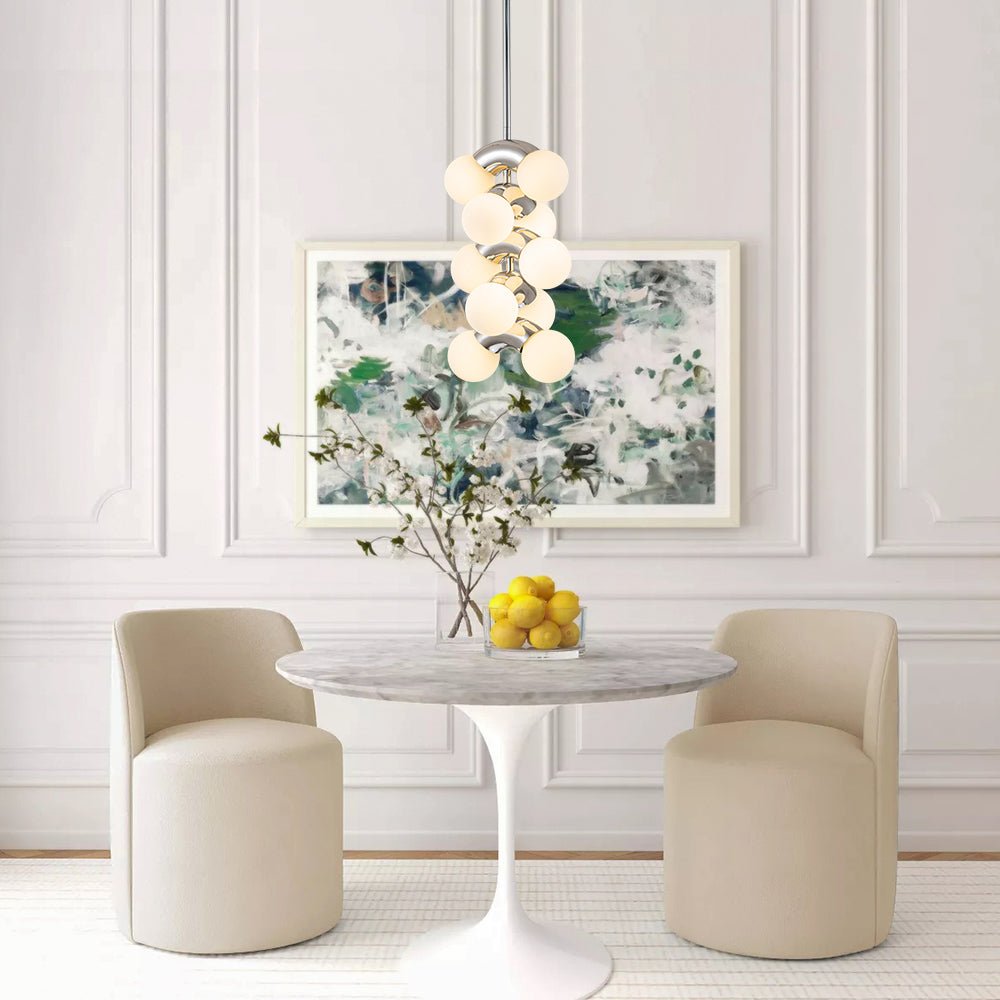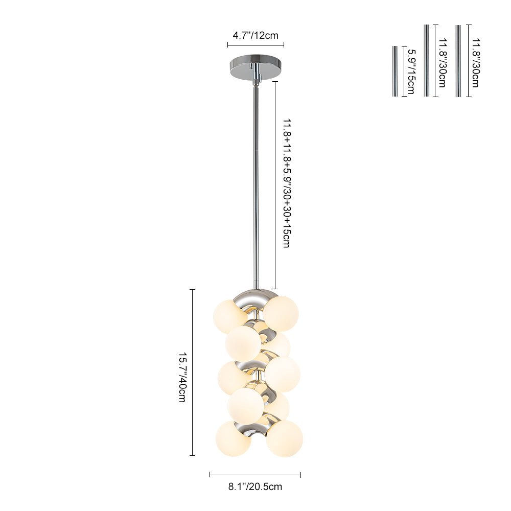 Laadukas valo loistaa loistavasti porrastetusta palloriippuvalaisimestamme. Loistavan monimutkainen muotoilu, joka jäljittelee hienoa helmikorvakorua, valaisevat maidonvalkoiset maapallot on ripustettu paksuihin, kaareviin metalliputkiin. Jokaisessa maapallossa istuu kodikkaasti yksi G9-polttimo (ei sisälly toimitukseen), ja kun ne ovat valaistuja, riipuksen korumainen muoto hohtaa ja herättää lumoavaa kiinnostusta ja tunnelmaa. Korista ruokailutilaa, eteistä, olohuonetta tai makuuhuonetta tällä 10-kerroksisella himmeä lasipalloriipuksella ja tuo hienostunut viehätys ja tyylikäs kosketus.Tiedot