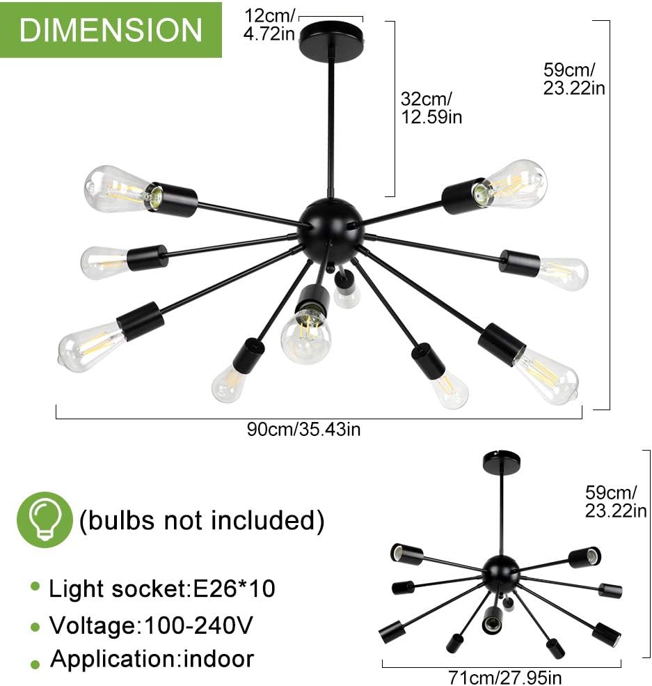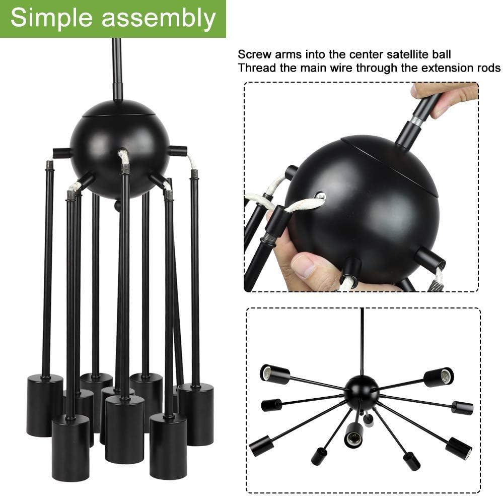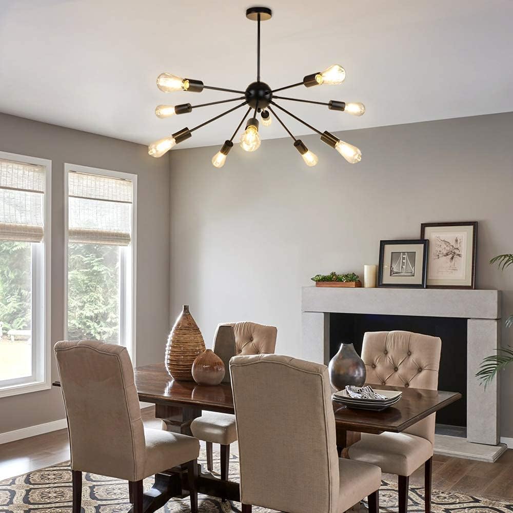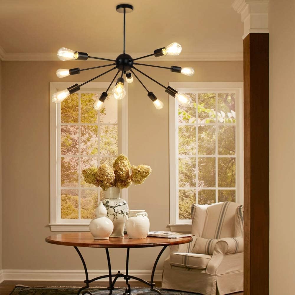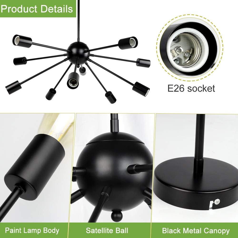 DLLT Sputnik Kattokruunu 10-valoa, moderni riippuvalaisin, vintage kattovalaisin, Starburst riippuvalaisin ruokasaliin, keittiösaari, makuuhuone, E26-jalusta, musta
