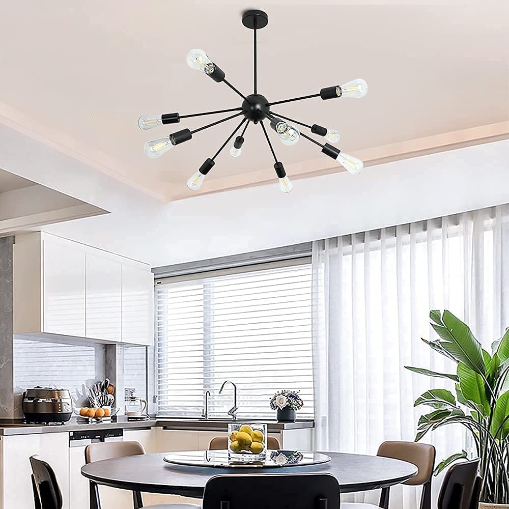 DINGLILIGTHING Depuley Starburst kattokruunut, 10-valoa, moderni riippuvalaisin, musta