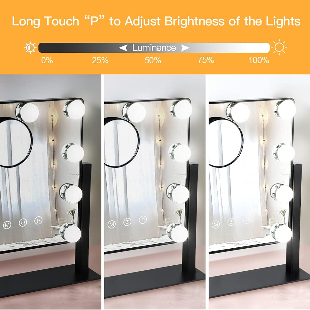 - �【Muistitoiminto ja kääntyvä metallijalusta】 Muistitoiminnon ansiosta tämä peili säilyttää saman kirkkauden ja värivalot, kun se käynnistetään uudelleen. Jokaisessa meikkivalaistuspeilissä on kiinteä metallipohja, jonka avulla voit kääntää peilin täydelliseen kulmaan täydelliseen meikkisovellukseesi.