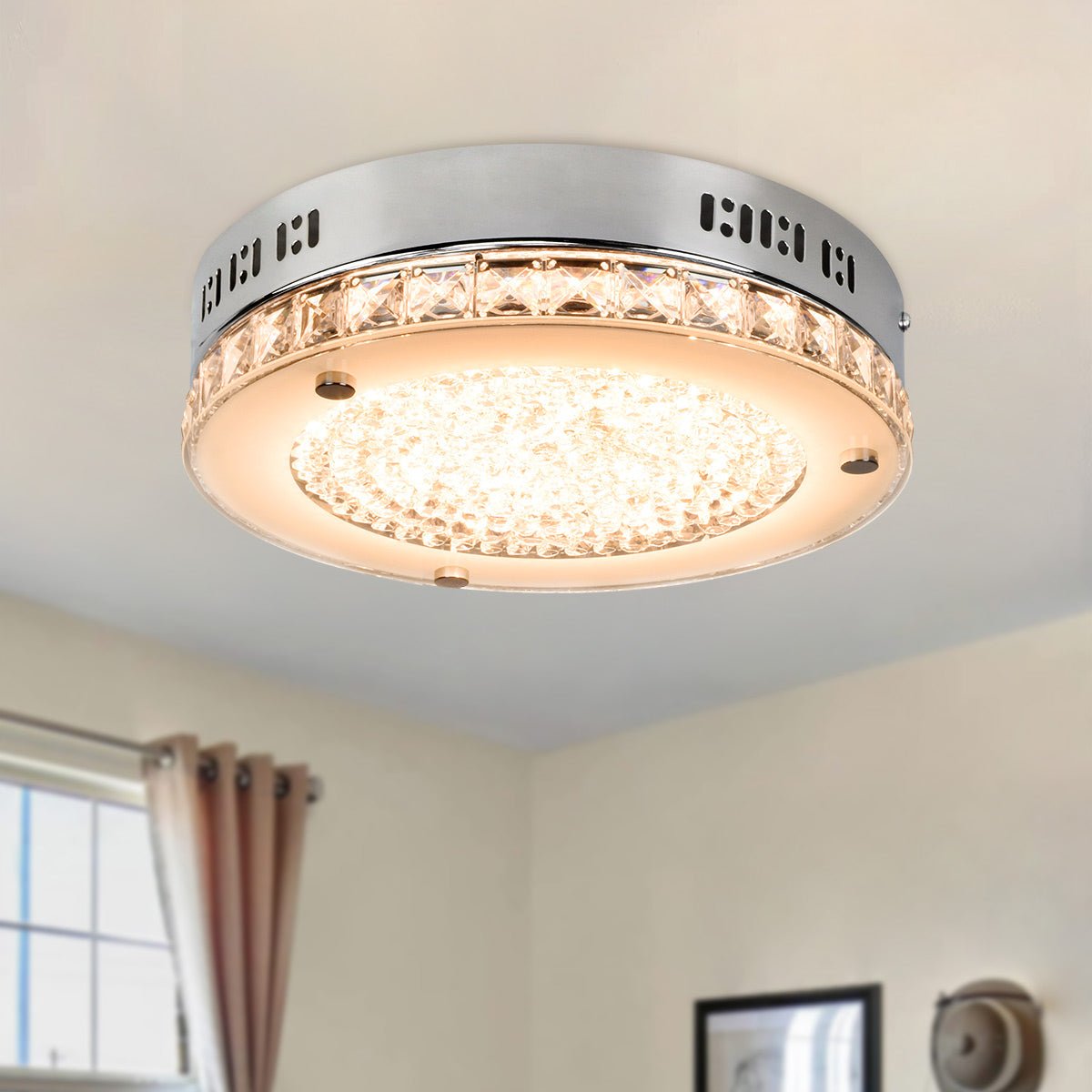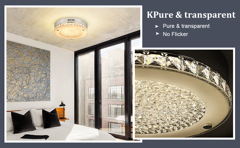 Depuley 18 W LED-kristallikattovalaisin kaukosäätimellä, 11 tuuman moderni himmennettävä lähellä kattoa valaisimet, 1440 LM 3 väriä vaihdettava