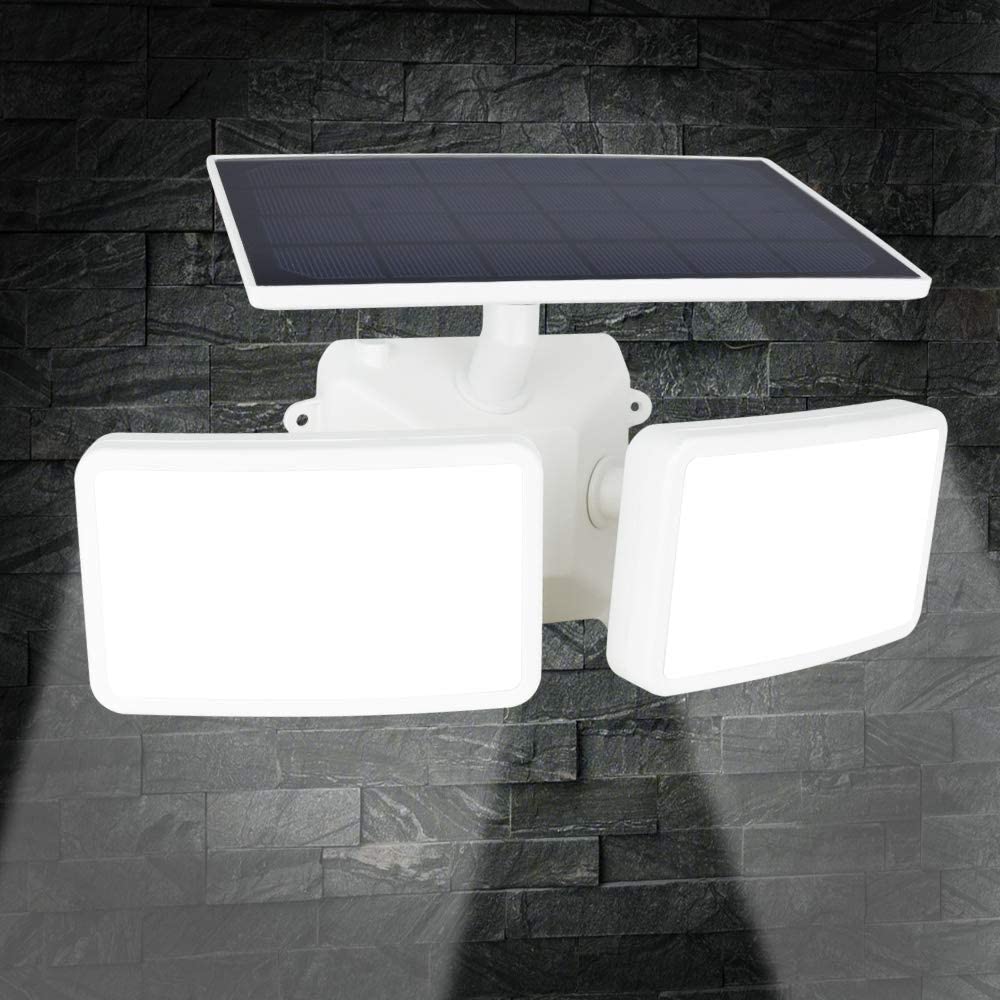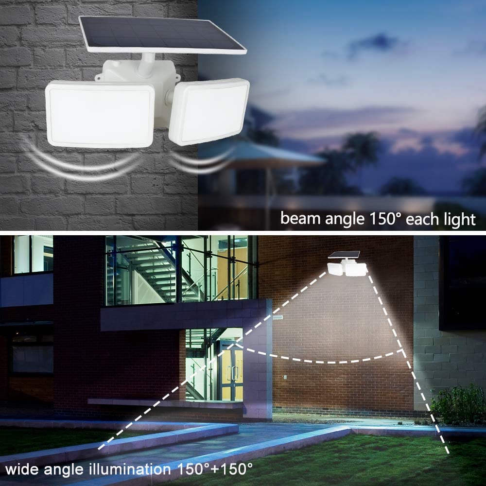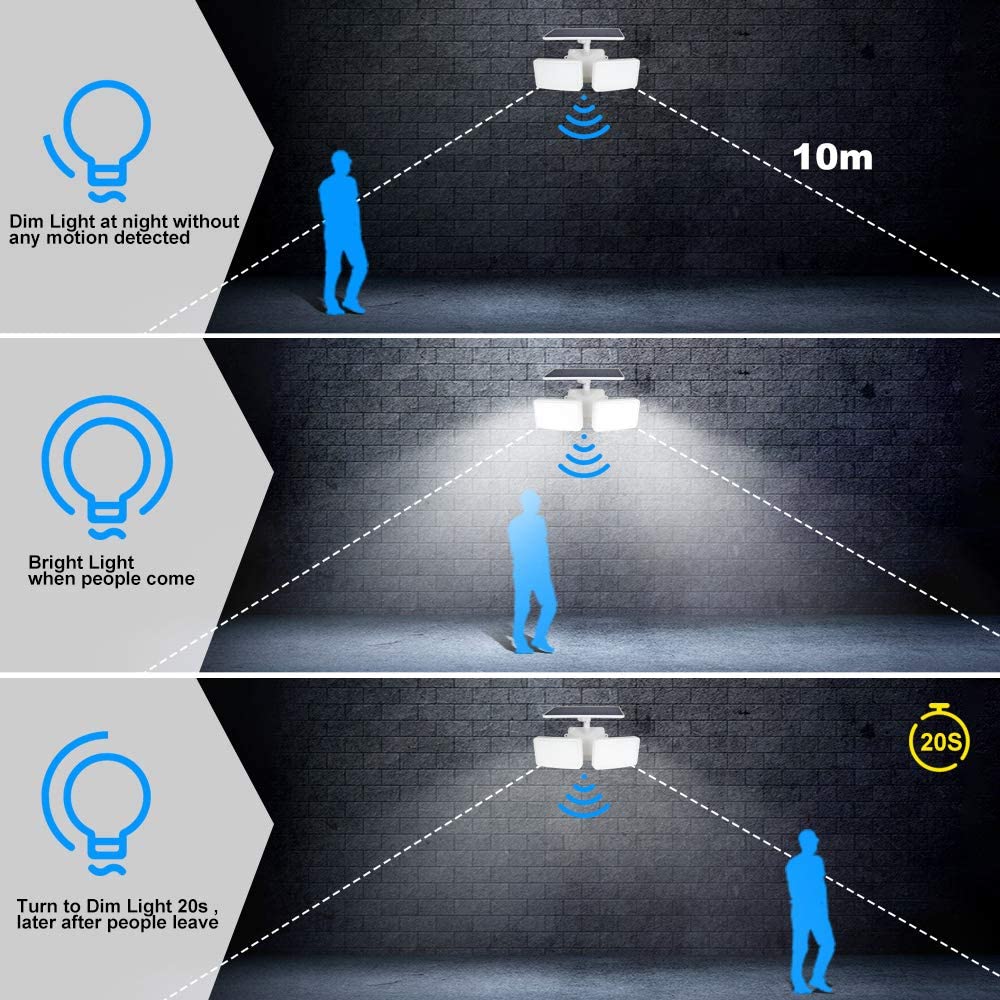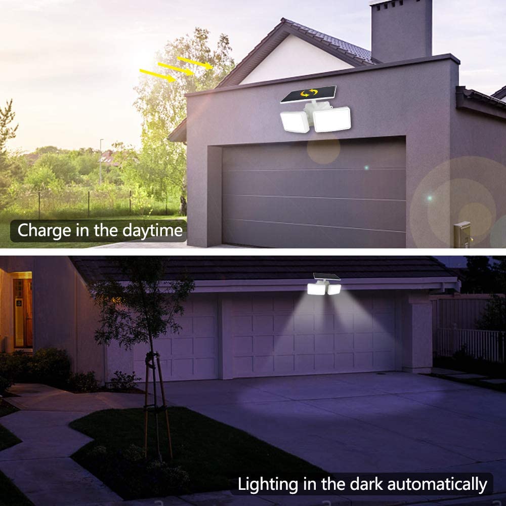 DINGLILIGHTING Outdoor Led-liiketunnistimen turvatulvavalo, aurinkoenergialla toimiva seinävalaisin, 2 säädettävää hämärästä aamunkoittoon valaisinta autotalliin, pihalle, patiolle, puutarhaan, kuistille, 2 päivänvalotilaa, valkoinen