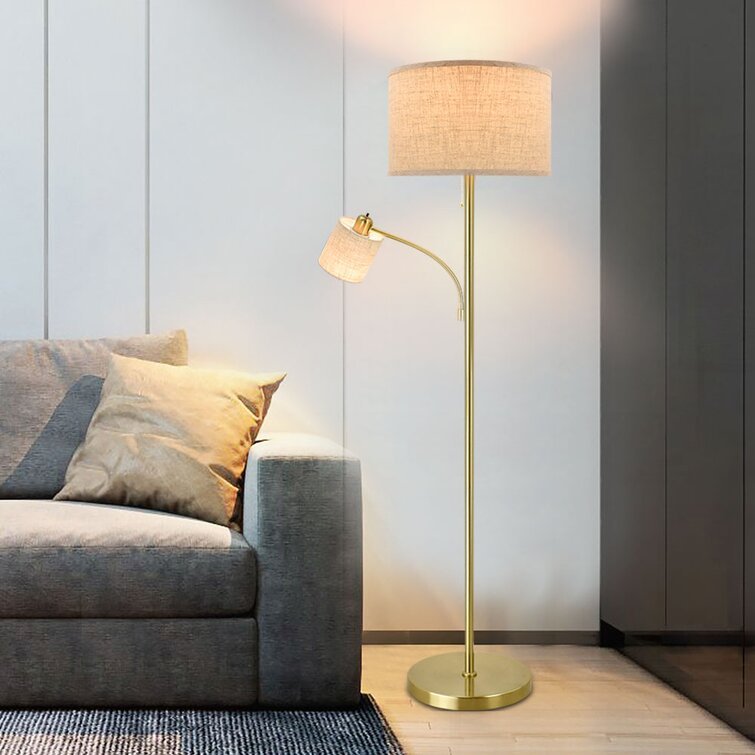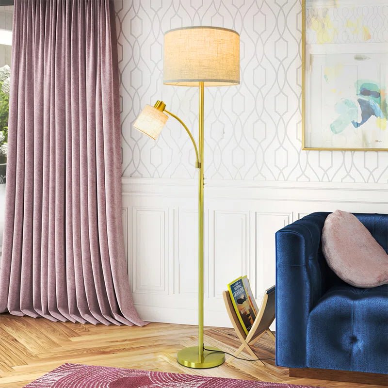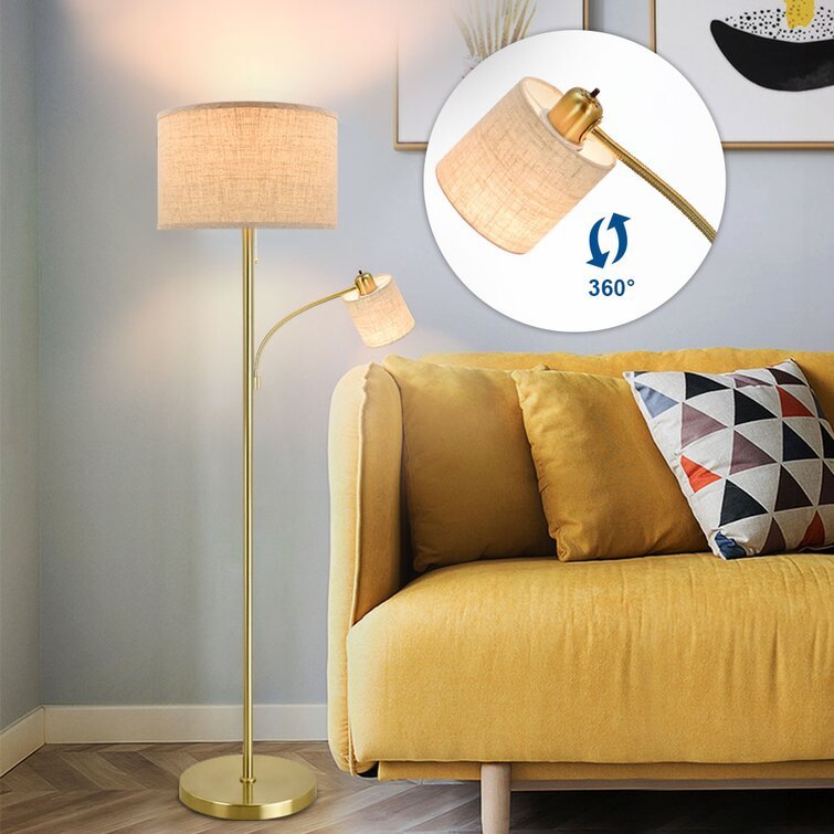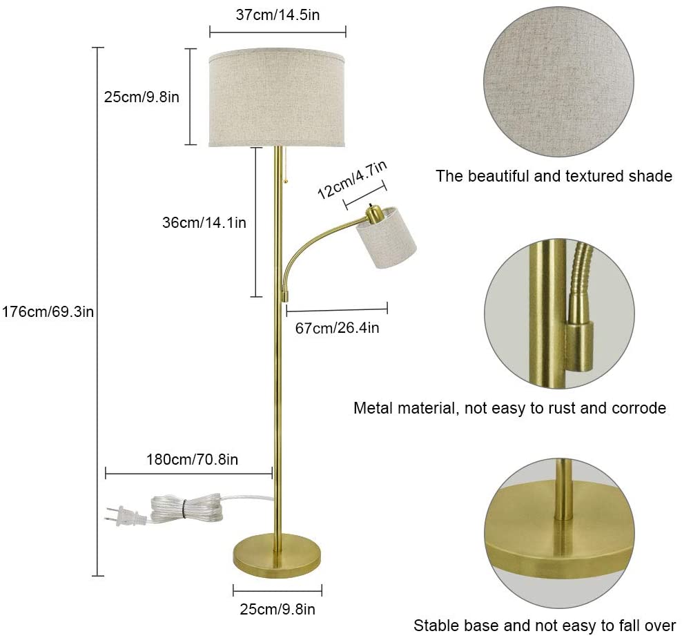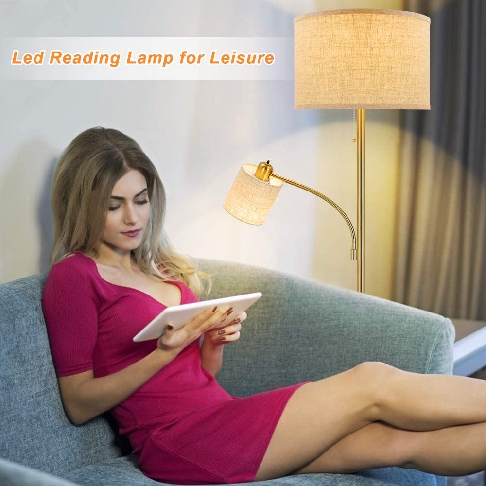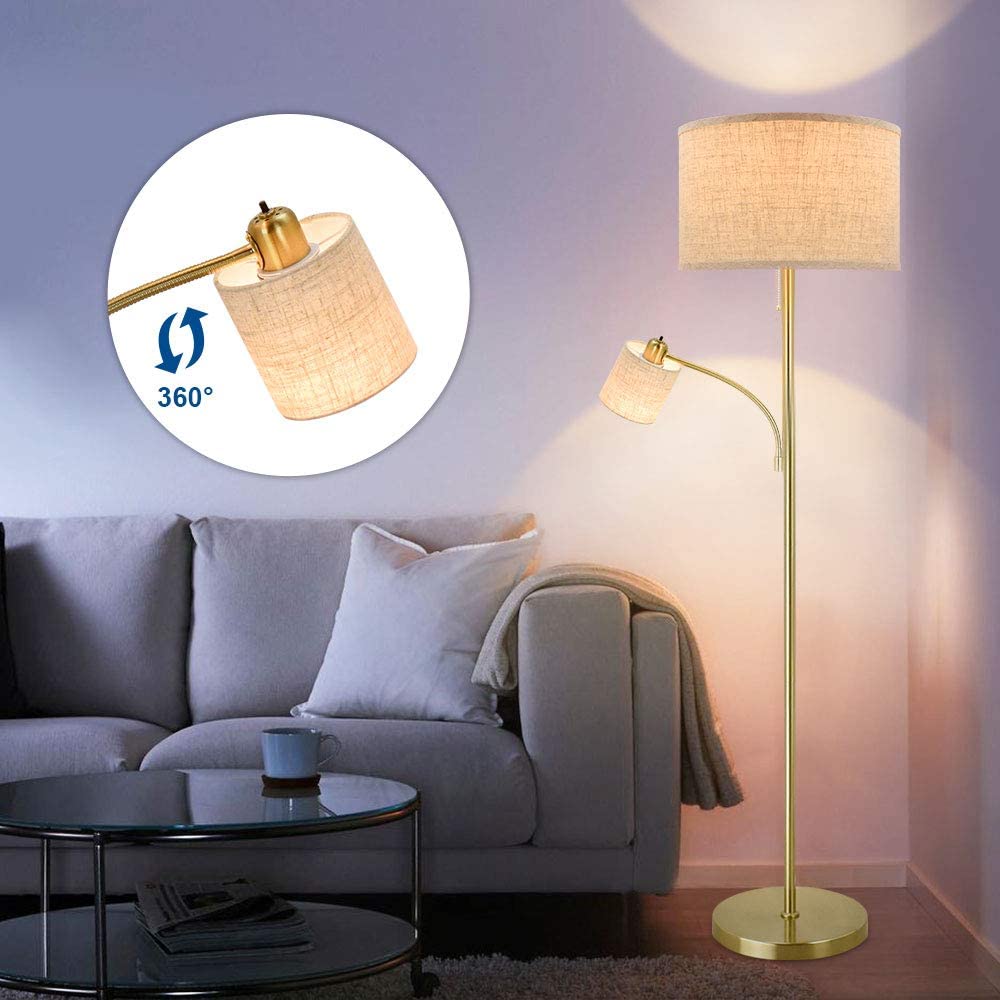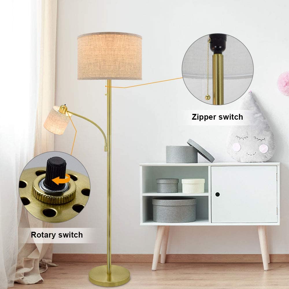 DLLT maalaismaiset lattiavalaisimet olohuoneeseen, moderni korkea napavalo säädettävällä lukuvalolla, vintage seisomalamppu nykyaikaiseen vuosisadan puolivälin makuuhuoneeseen, työhuone, kangasvarjost