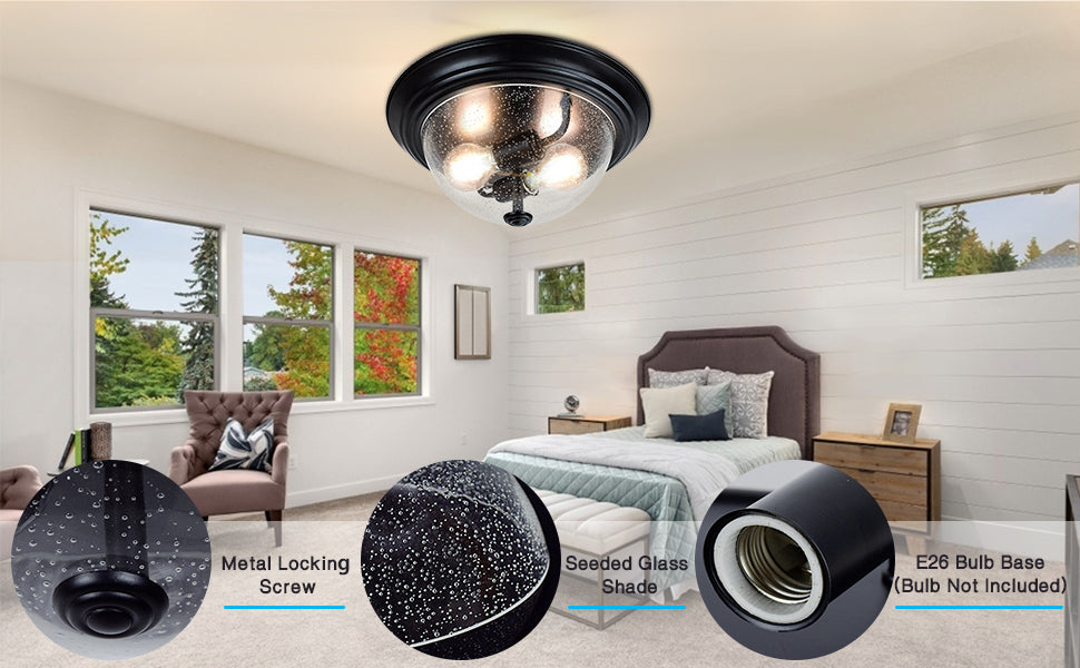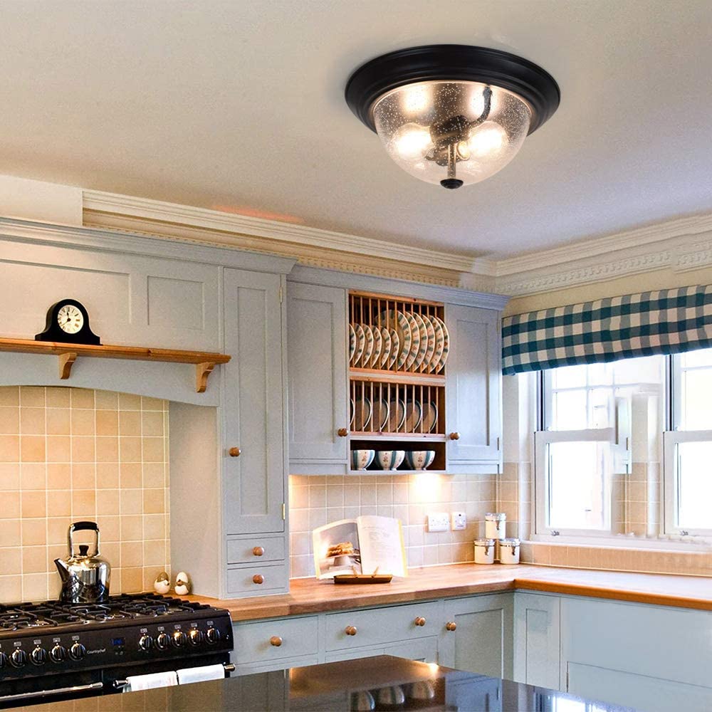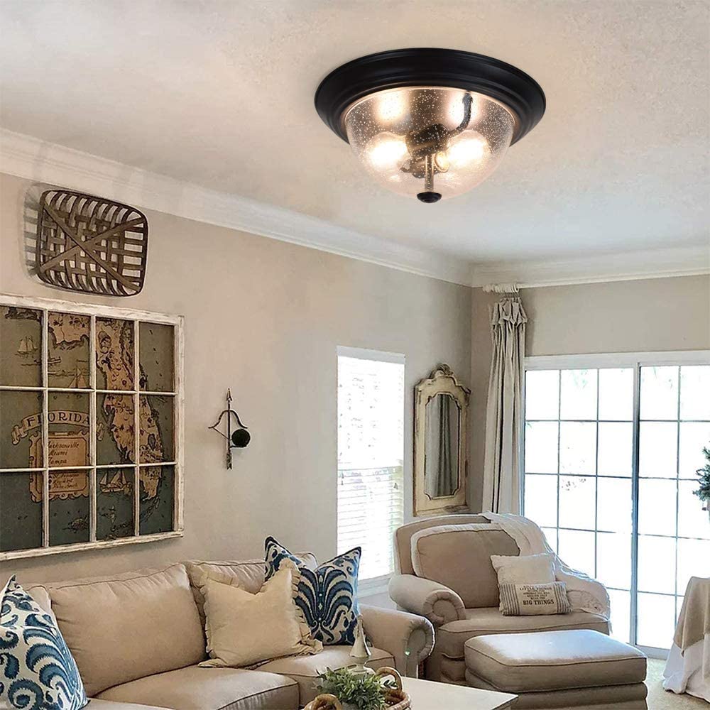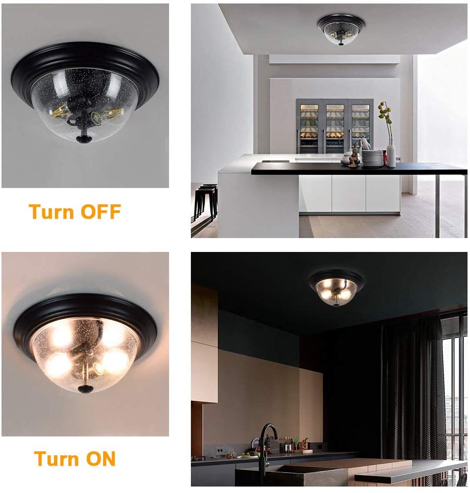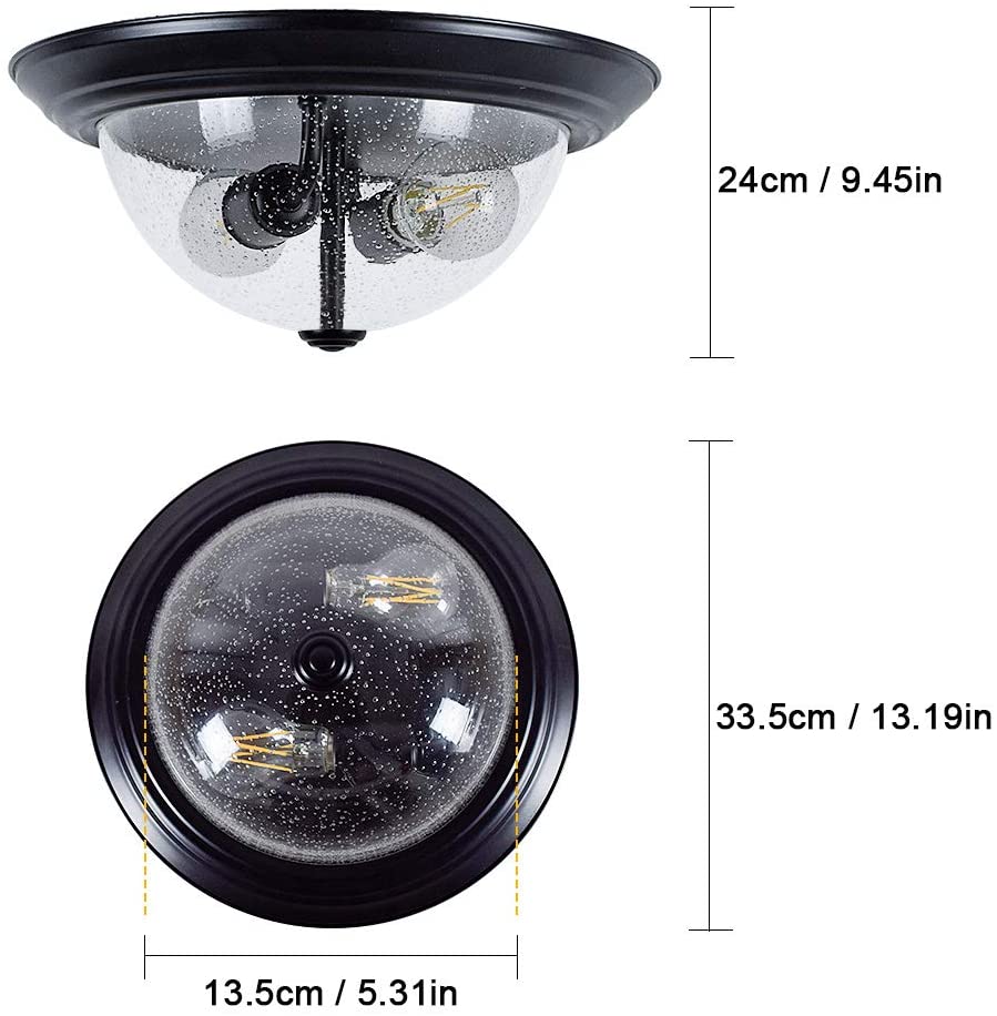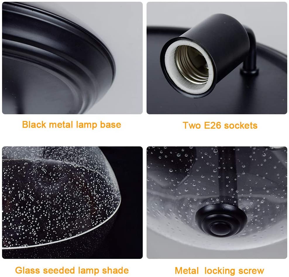 DINGLILIGHTING Depuley kylvetty lasikattovalo, 13 tuuman 2-valaisin maalaistalon puolitasossa asennettava valaisin, pyöreä alasvalo kuplitulla lasivarjostimella eteiseen, eteiseen, makuuhuoneeseen, kuisti, keittiö, olohuone