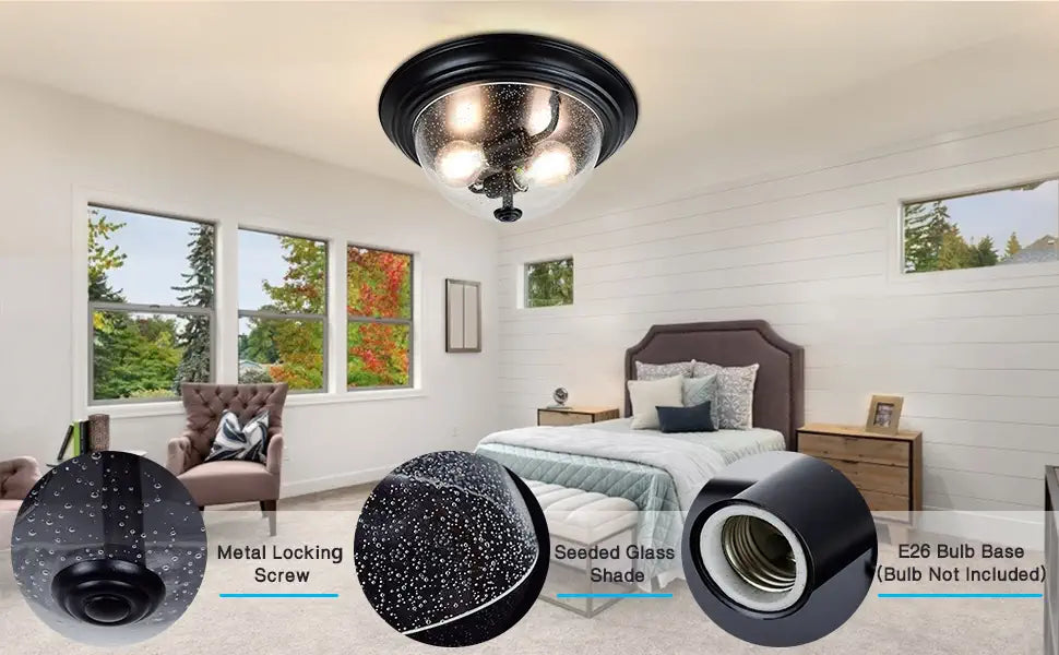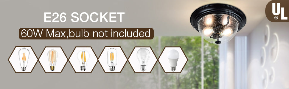 - Yhteensopiva erilaisten polttimoiden kanssa, kuten LED-, CFL-, CFL-lamppu. Suositeltavat Edison-polttimot. (Pomput EIVÄT sisälly)