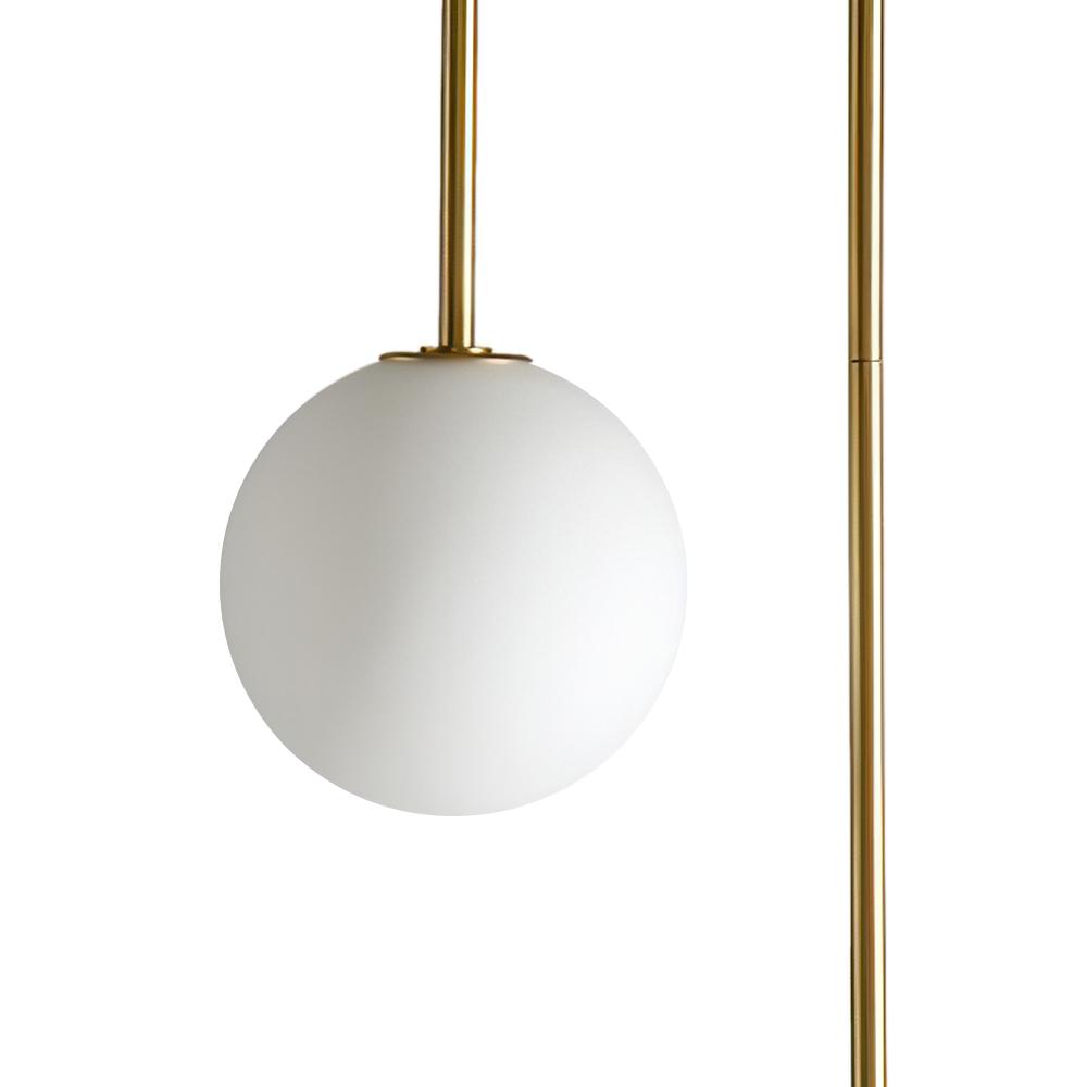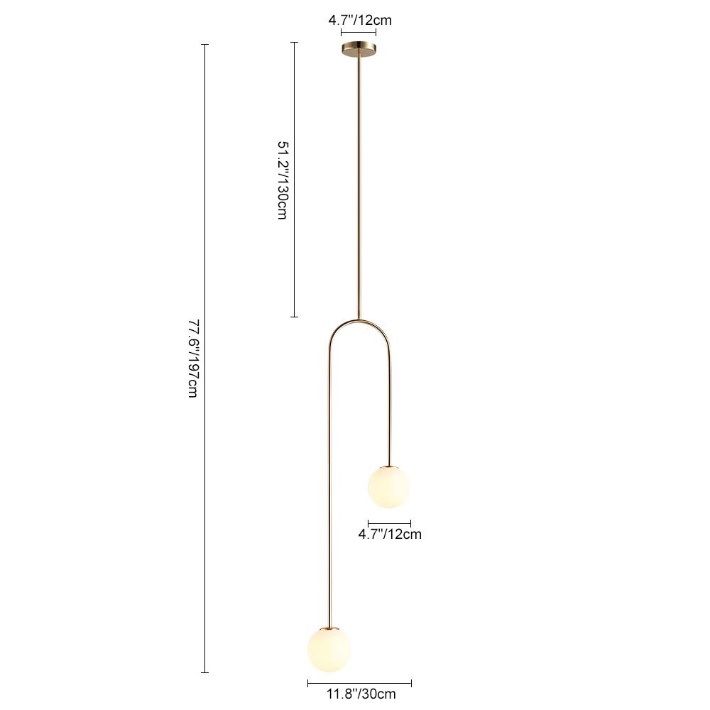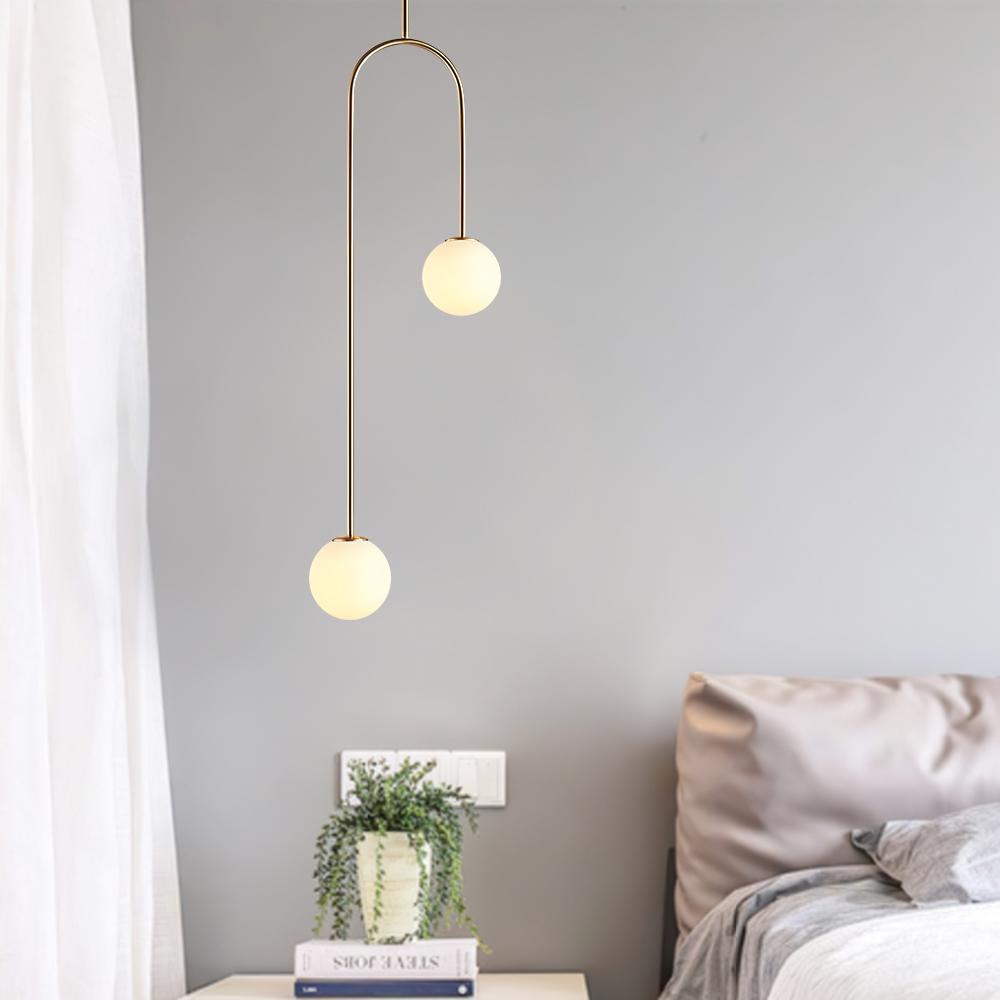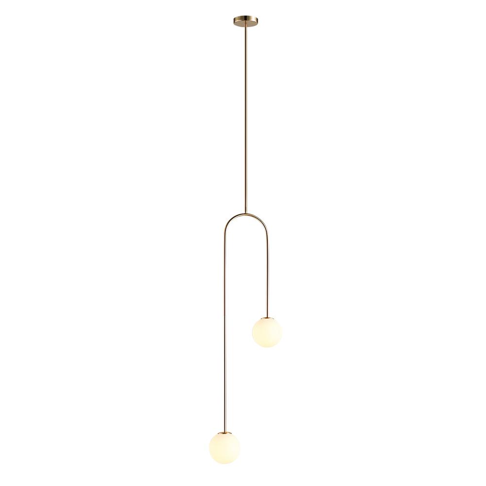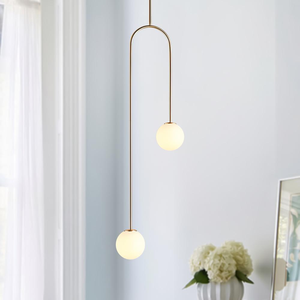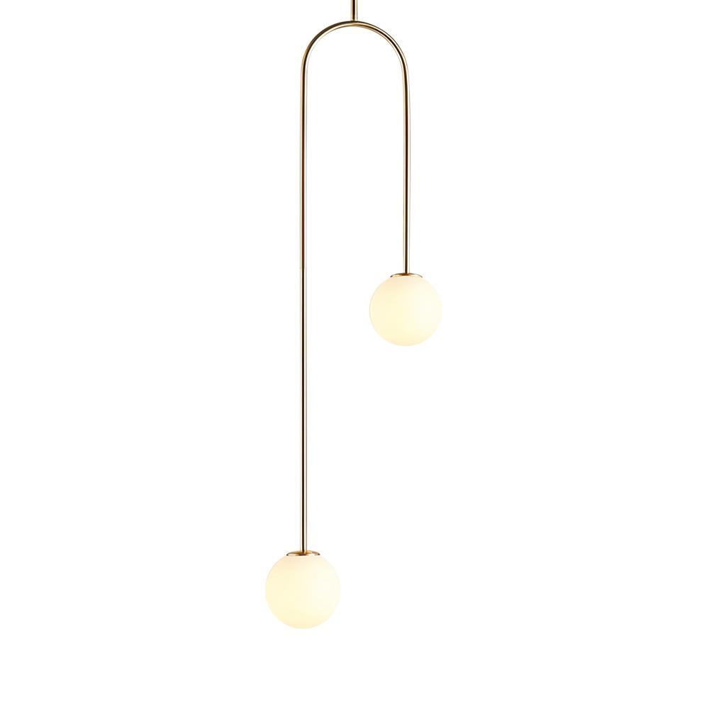 Tämä omituinen, kaarevan ripustuskehyksen taidokkaalla muotoilulla varustettu lasipallonen riippuvalaisin on epäsymmetrinen. Alla on ripustettu kaksi hienoa globe-sävyä eri korkeuksille, jotka lisäävät vuosisadan puolivälin tyylikästä tunnelmaa 2-valaisimeen. Jokaisen opaalilasin varjostimen sisällä on yksi G9-polttimo (ei sisälly) jakaaksesi kodikkaan ympäristön valaistuksen. Korkeussäädettävä ja saatavana kahdessa värissä, tämä 2-valaisin lasipallon riippuvalaisin on vain lisä valaisemaan viehätysvoimaa sängyn viereen, sohvaan, teekuppiin, portaikkoon tai muihin asuinnurkkauksiin.Detail