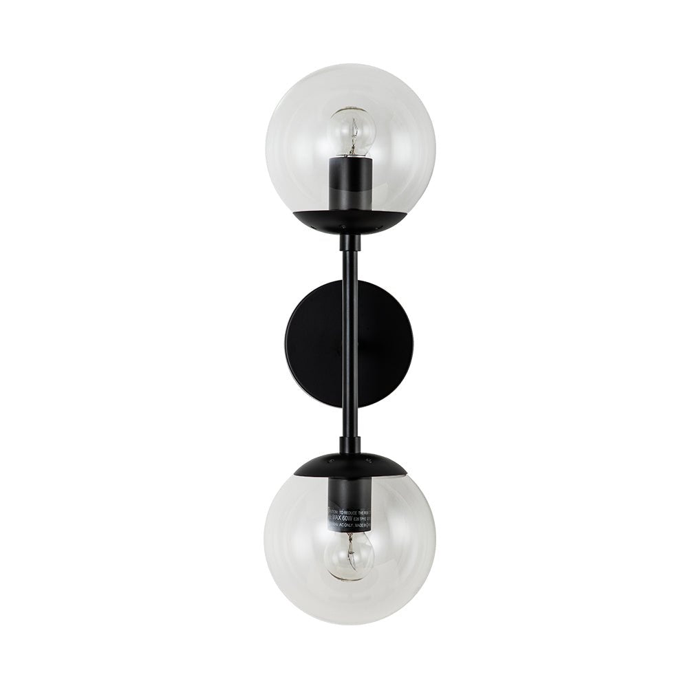 Kaksi valoa • Musta/messinkiviimeistely • Kirkkaat/opaalilasipallot • E26/E27 Keskikantaiset polttimot (ei sisällä) • Kiinteä • UL-listattu