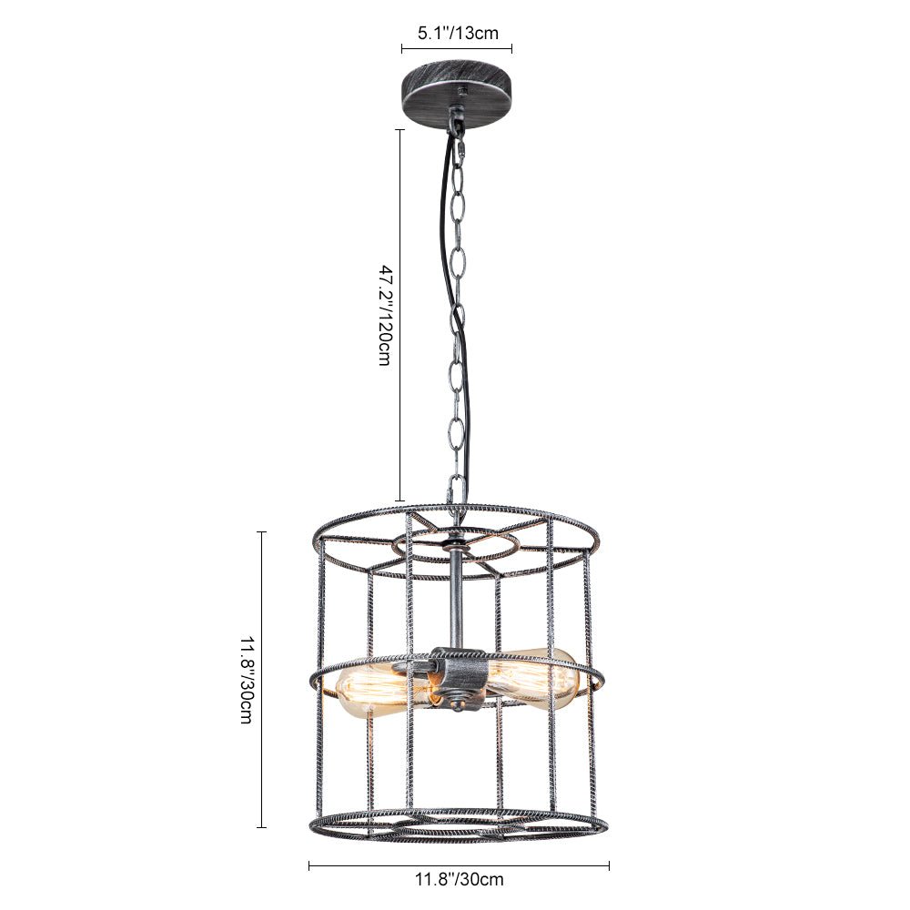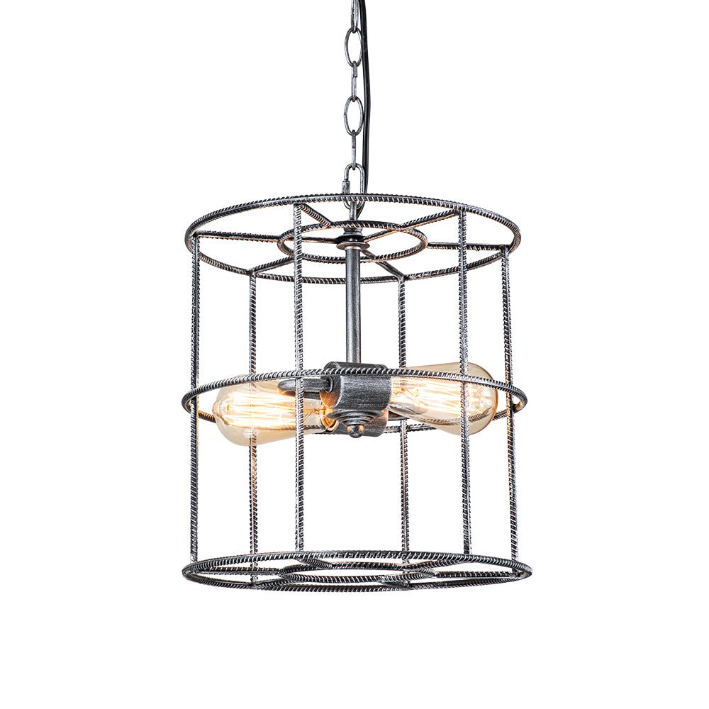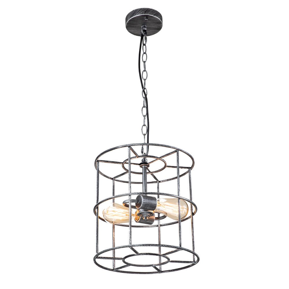 Kaksi valoa • Teräshäkki • Sylinterimäinen lyhty • Avoin runko • Vintage harmaa viimeistely • E26 Keskikantaiset polttimot (ei sisälly) • Kiinteä • UL-listattu