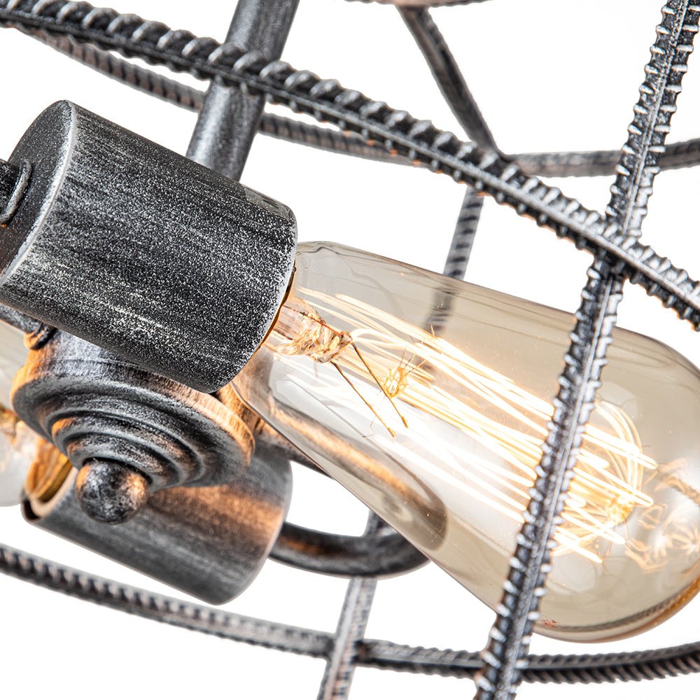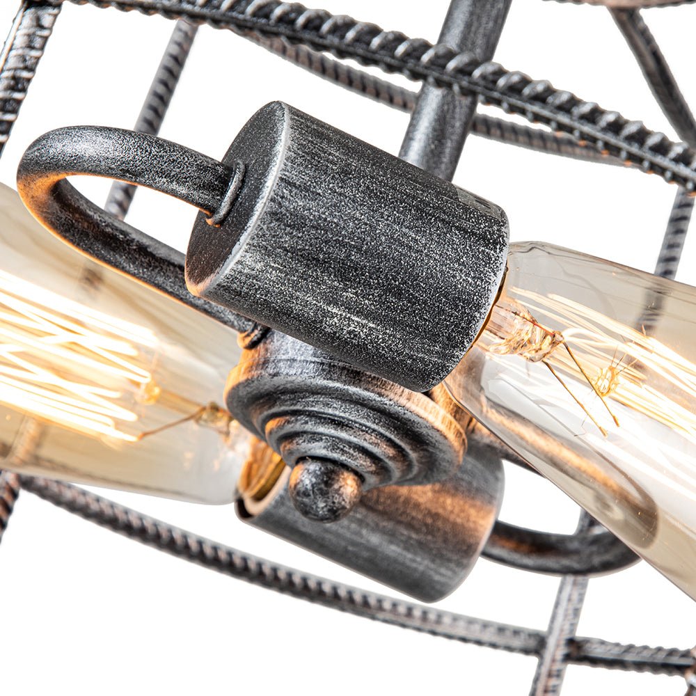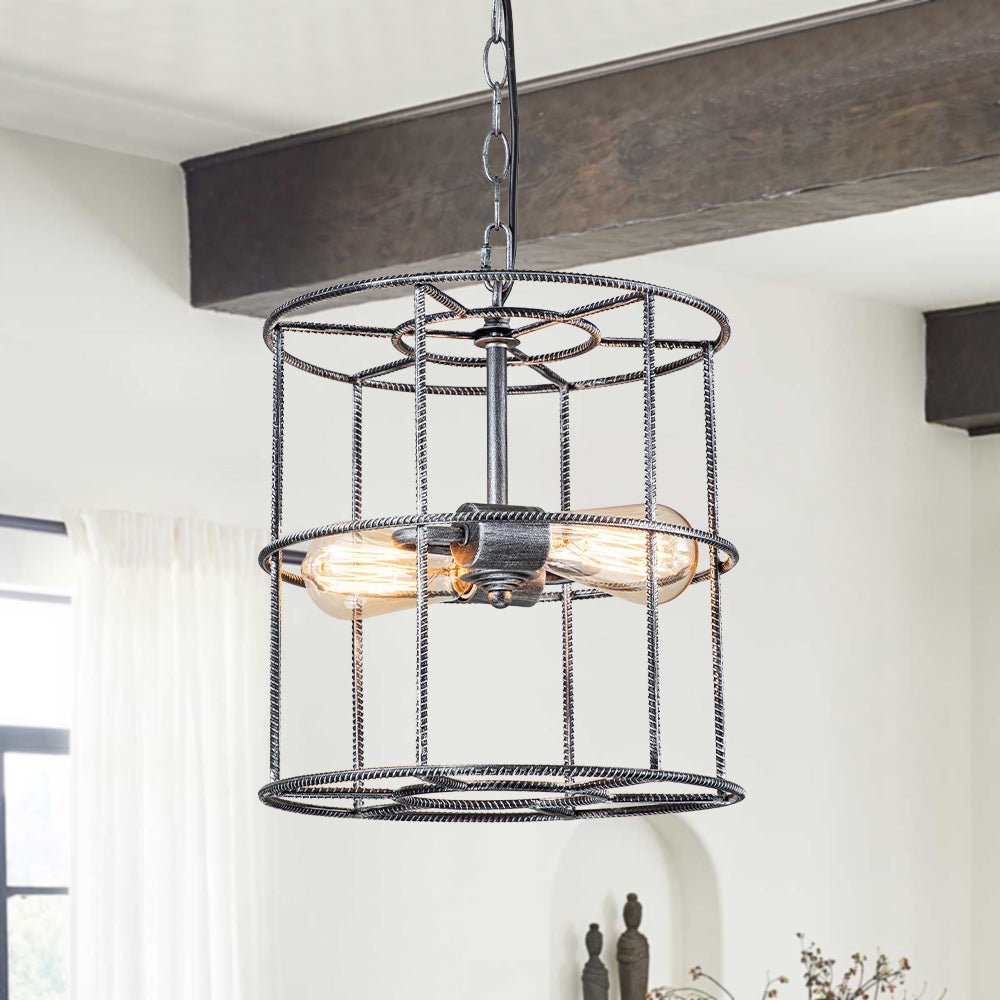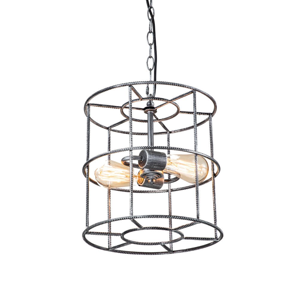 Kaksi valoa • Teräshäkki • Sylinterimäinen lyhty • Avoin runko • Vintage harmaa viimeistely • E26 Keskikantaiset polttimot (ei sisälly) • Kiinteä • UL-listattu