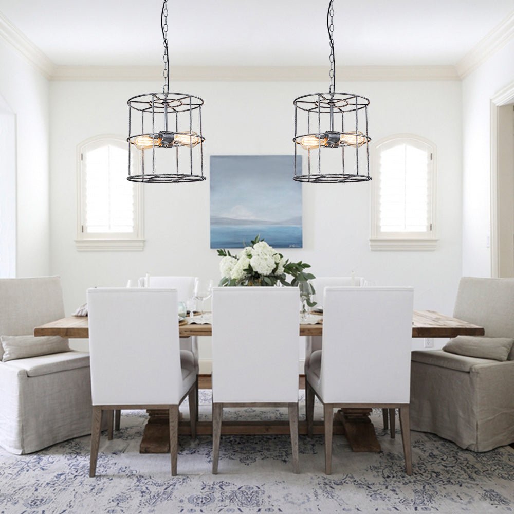Erottele tilasi tällä 2-valaisimen lyhtyvalaisimilla. Avoin sylinterimäinen häkki, joka on valmistettu tukevasta teräksestä ja vintageharmaasta viimeistelystä, viimeistelevät tämän metallisen riippuvalaisimen ulkoasun, kun taas kaksi esillä olevaa keskikokoista E26-polttimoa (ei sisälly toimitukseen) tarjoavat kirkasta valaistusta ja viimeistelevät teollista tyyliä. Riippumatta siitä, ripustetaanko se yksin tai useaan otteeseen, tämä 2-kevytmetallisylinterinen lyhtyriippuvalaisin tuo tyylikkään vintage-modernin maalaistalon ilmeen ruokailutilaan, keittiösaarekkeeseen, eteiseen tai makuuhuoneeseen.Tiedot