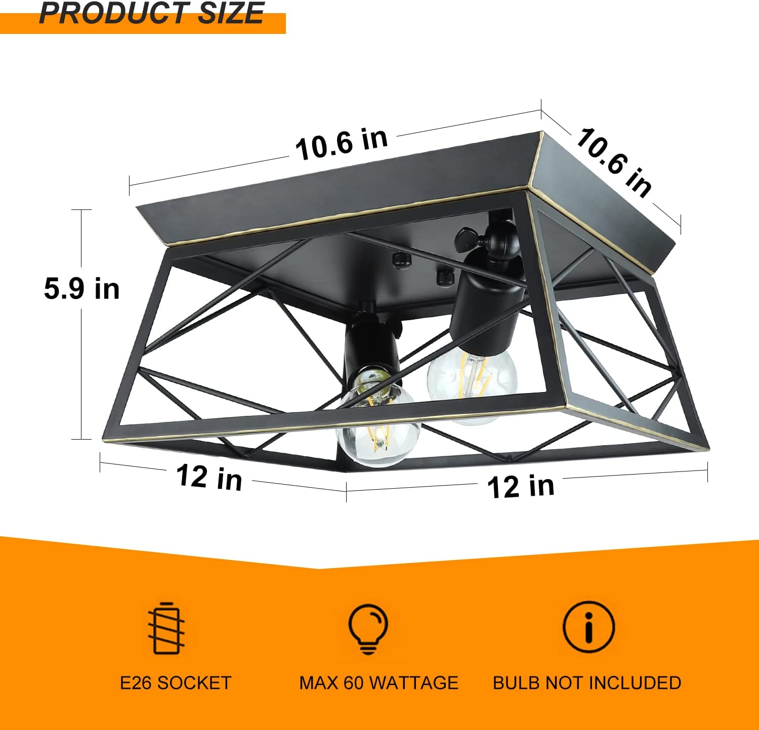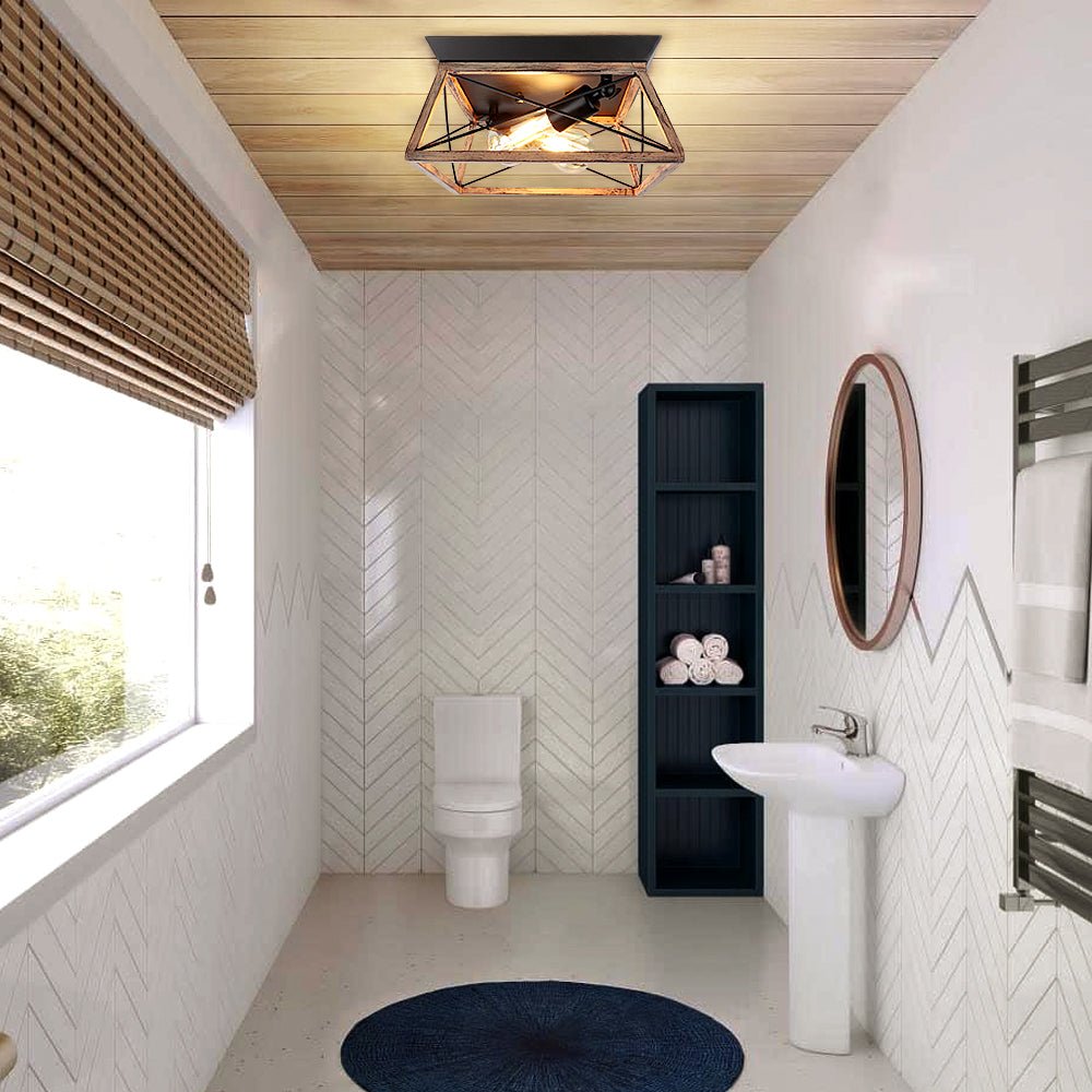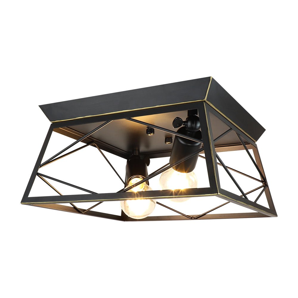 DLLT teollinen uppoasennettava kattovalaisin, neliönmuotoinen maalaistalo 2-valoa lähellä kattoa, maalaismainen metallikattolamppu puu-/mustamaalauksella keittiön makuuhuoneeseen, E26-jalusta