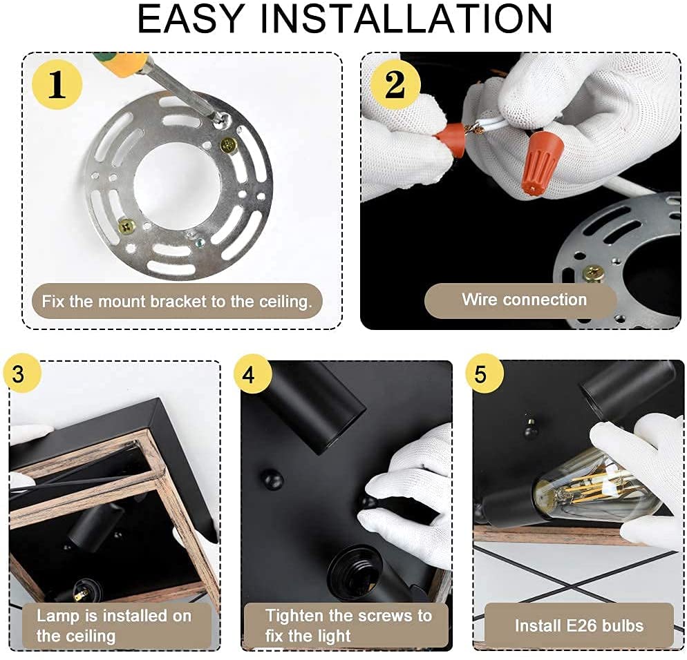 - 【Vintage Charm】 Tämä maalaismainen 2-valaisin kattovalaisin, jossa on maalattu puun väri, tuo sinulle retroa ja tyylikästä kosketusta. Lisätty vintage houkuttelevia hehkulamppuja luomaan haluamasi tunnelma ja tehosteet.