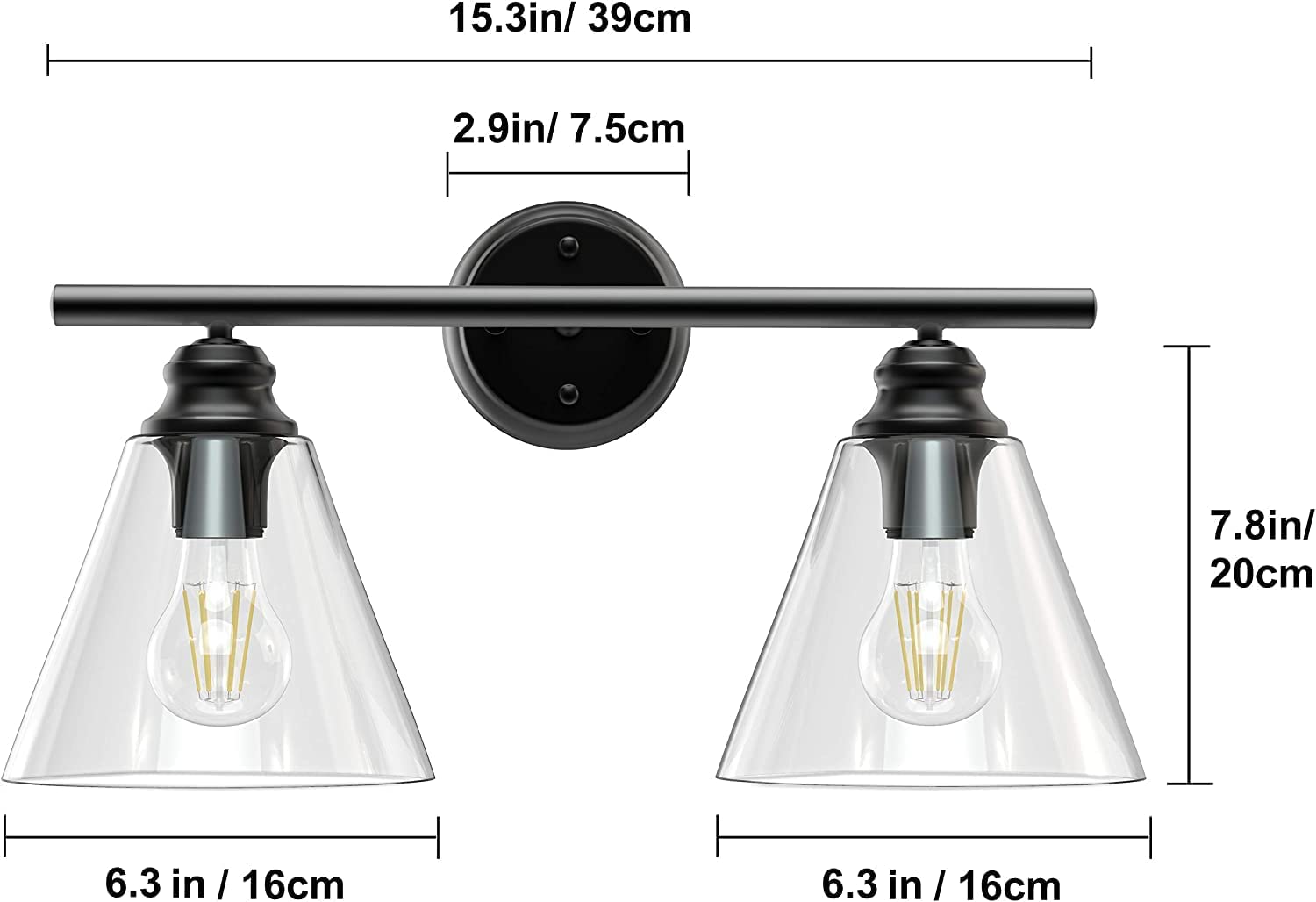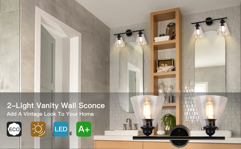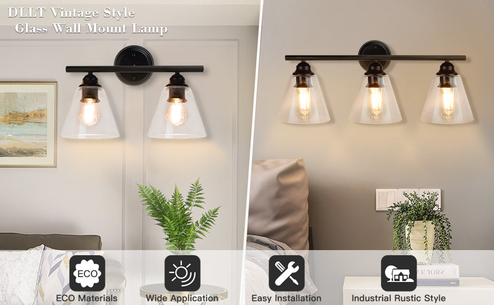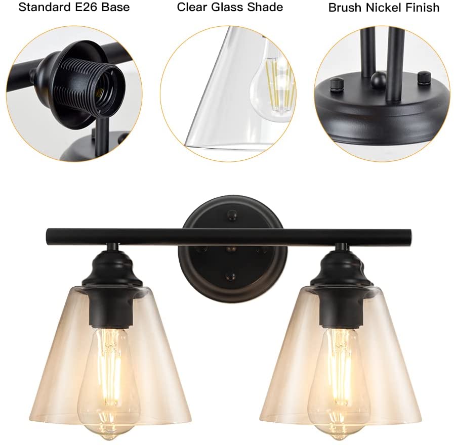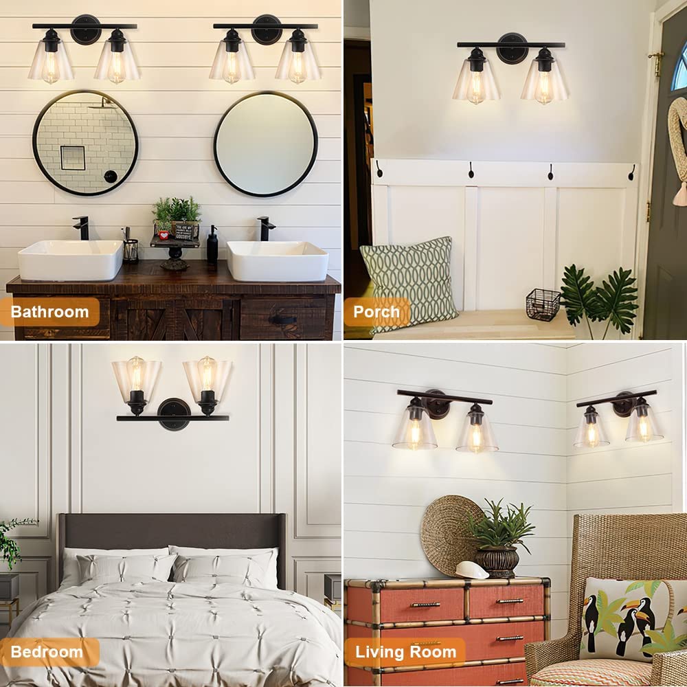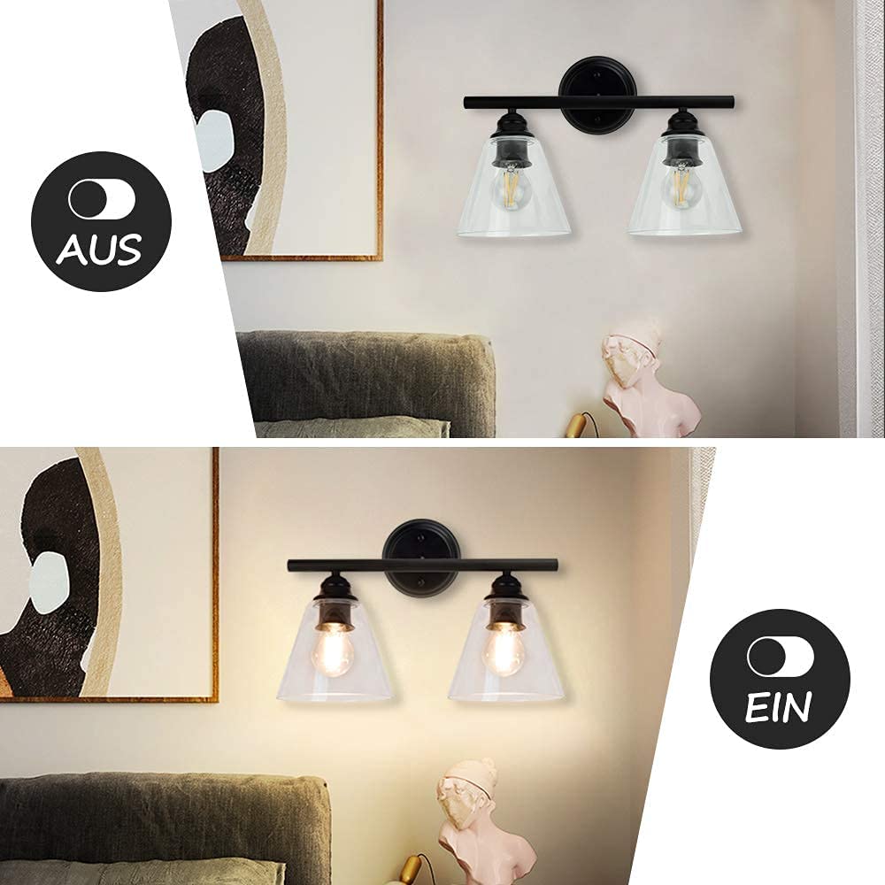 DINGDILIGHTING Depuley turhamaisuus seinävalaisin, maalaismaiset kylpyvalaisimet, 2-kevyt seinävalaisin lasivarjostimella makuuhuoneeseen, keittiöön, jauhehuoneeseen, eteiseen, keittiöön, peiliin, pesulaan