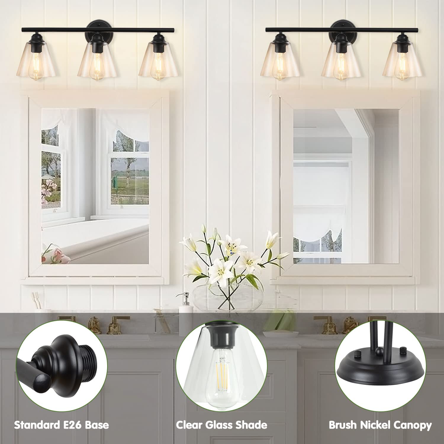 DLLT-seinävalaisimet, seinävalaisin, 2 valoa maalaistalon kylpylamppu kylpyhuoneeseen, eteinen, jauhehuone, keittiö, peili, kirkas lasivarjostin