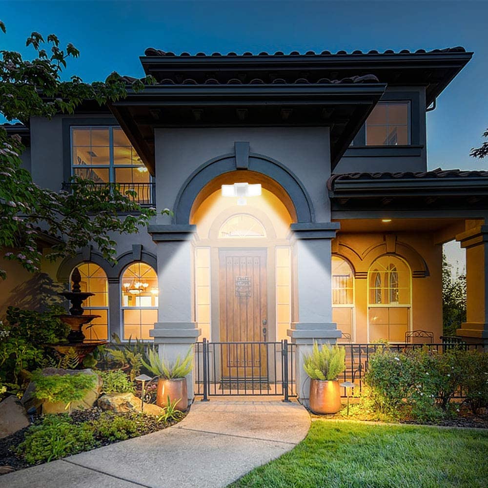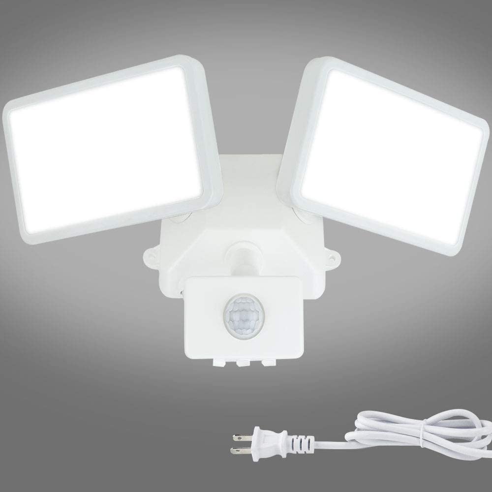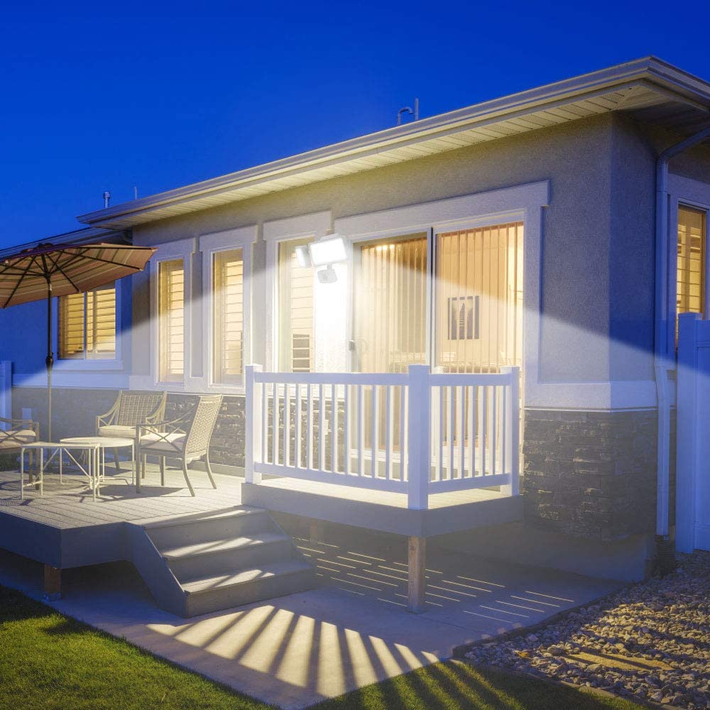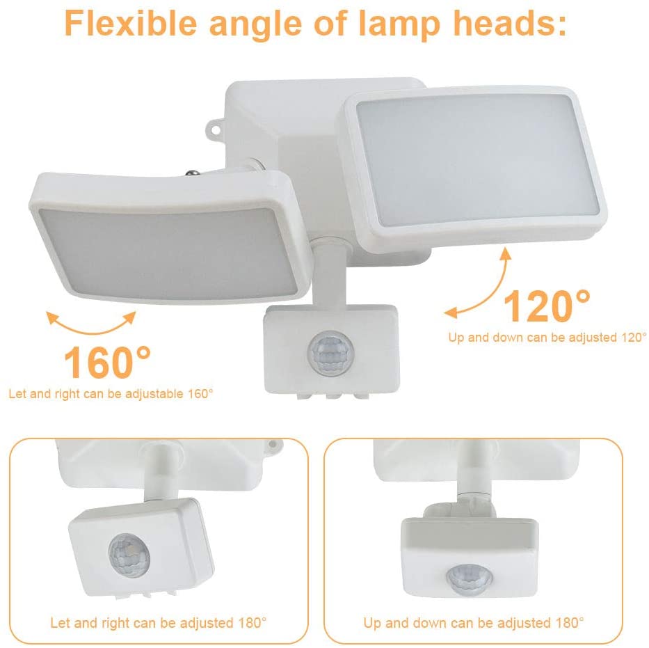 Depuley LED-liiketunnistin ulkovalo, 20W 6000k Kytke turvavalo 2 säädettävää päätä IP65 vedenpitävä liikkeentunnistin tulvavalo autotallipihan puutarhakuistille