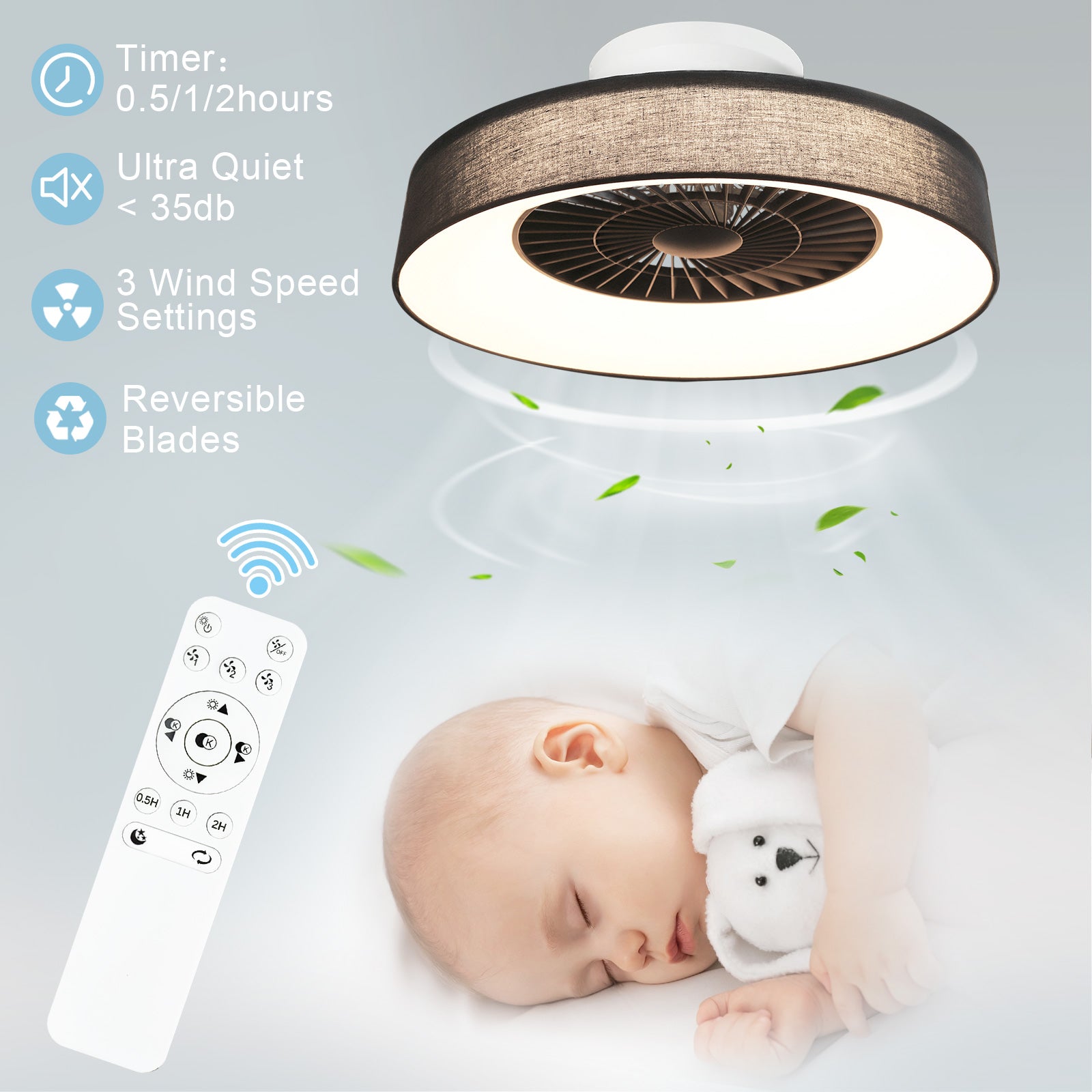 - ✤Helppo puhdistaa✤ Kaukosäätimellä varustettu kattotuuletin on suunniteltu helppoon puhdistamiseen. Suojaverkko voidaan avata ja tuulettimen jokaiseen osaan pääsee helposti käsiksi, mikä varmistaa, että se näyttää aina uudelta.