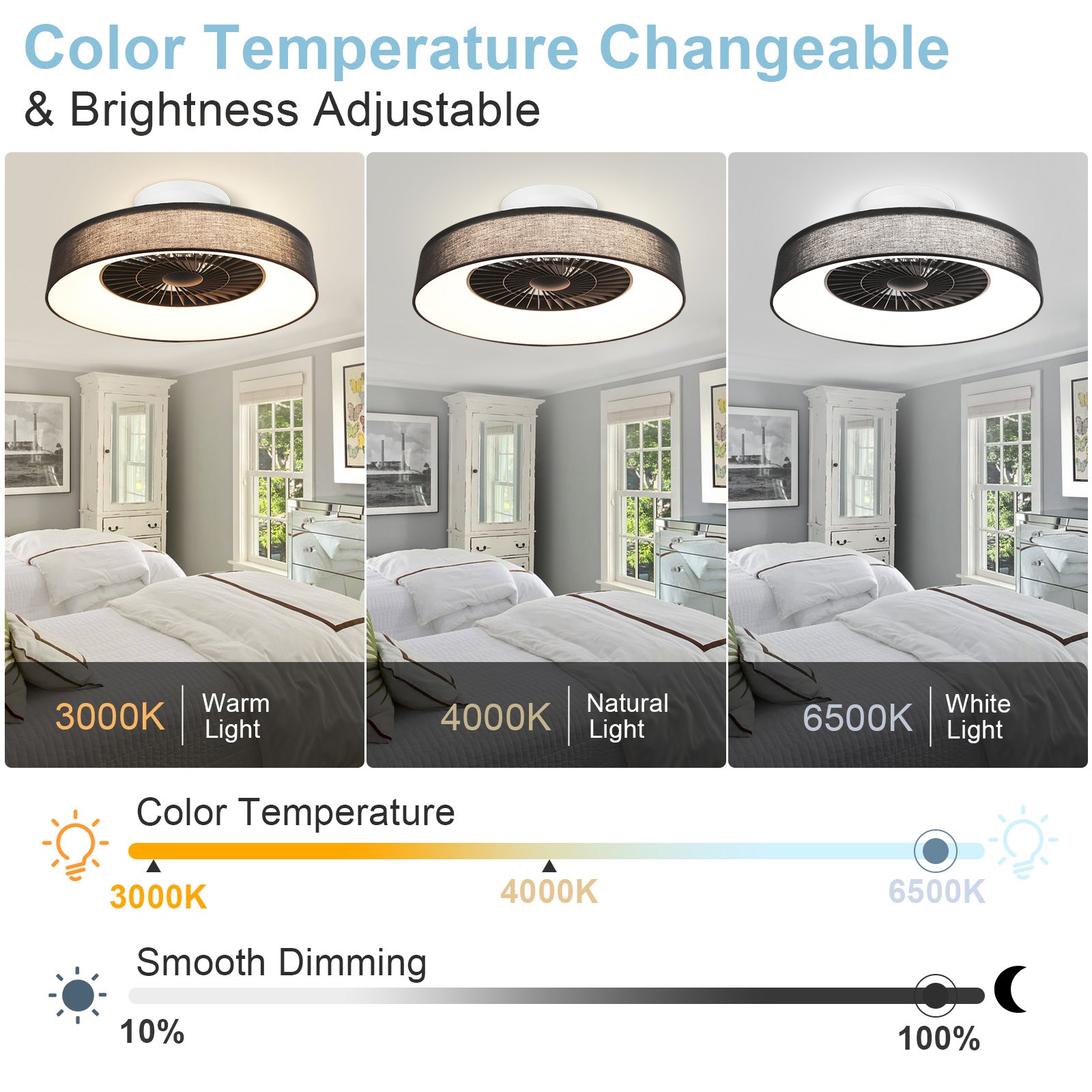 - ✤Himmennettävä LED-valo✤ LED-valoja voidaan ohjata kaukosäätimellä, kirkkaustasoilla 10–100 % ja värivaihtoehdoilla lämmin, neutraali ja valkoinen.