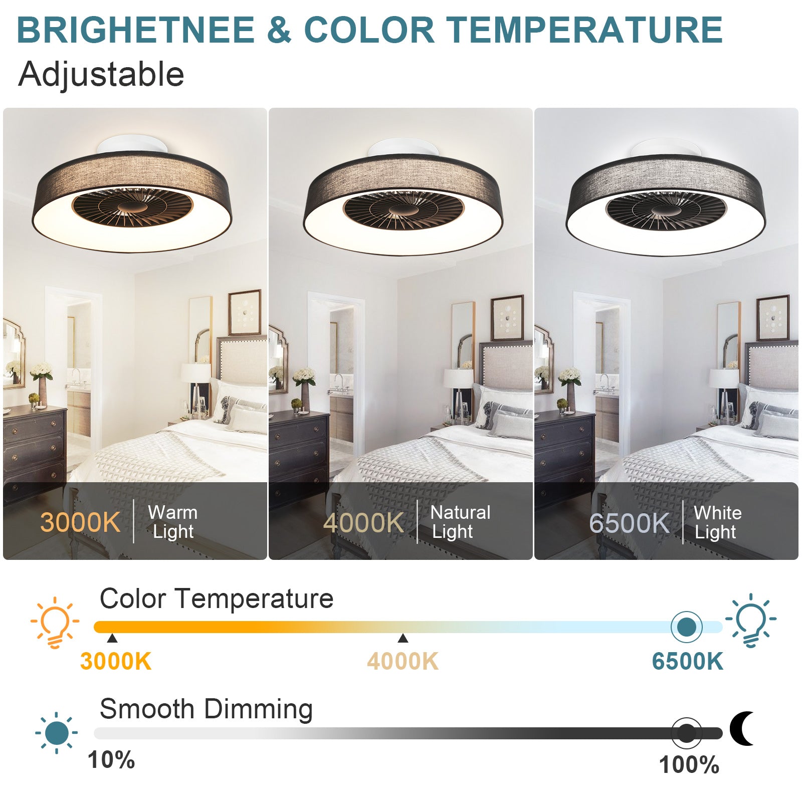 - ✤2 in 1 Moderni muotoilu✤ Tämä uppoasennettava kattotuuletin on täydellinen yhdistelmä säädettävästä LED-valorenkaasta ja modernista siivettömästä tuulettimesta. Siinä on tyylikäs, matalaprofiilinen muotoilu ja korkealaatuinen kuparimoottori, joka toimii hiljaa ja tarjoaa tehokkaan ilmavirran. Se lisää tyylikkään ja luovan tunnelman sisustukseesi samalla, kun se tarjoaa hiljaisen jäähdytyksen ja kirkastaa tilaasi tyylikkäästi.