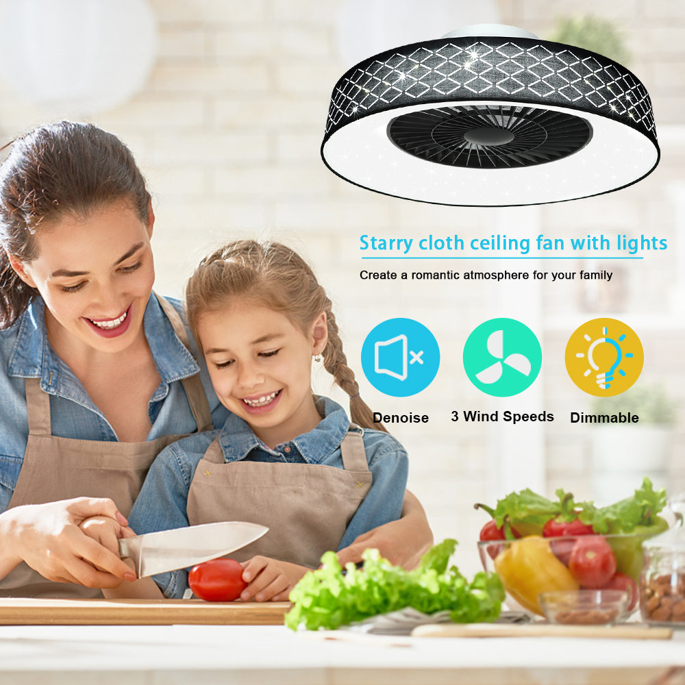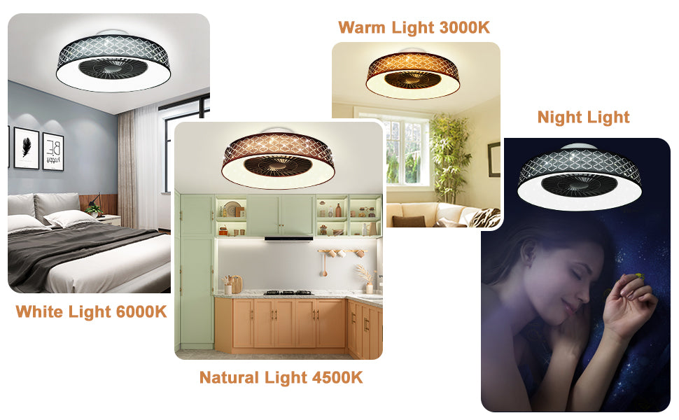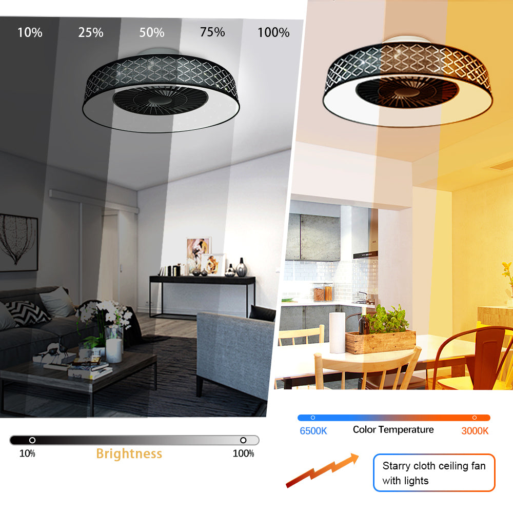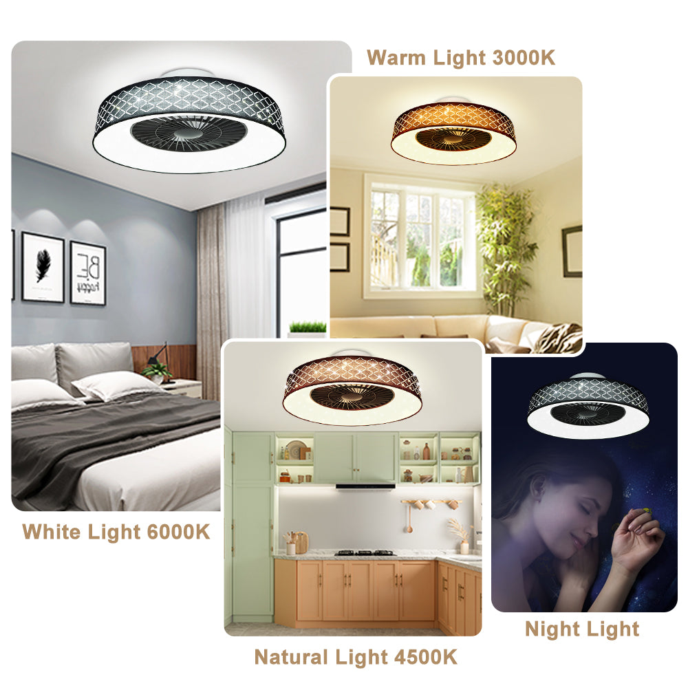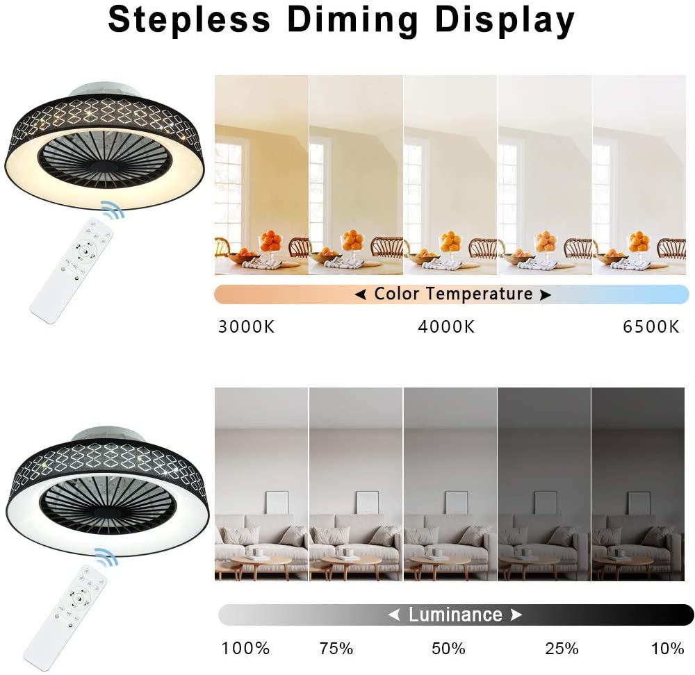 DLLT-kattotuuletin led-valolla, 40 W:n moderni himmennettävä kattotuulettimen valaistus, 7 näkymätöntä terää, 22 puolitasossa, 3 väriä vaihdettava, 3 tiedostoa, ajoitus, käännettävä tasavirtamoottori,