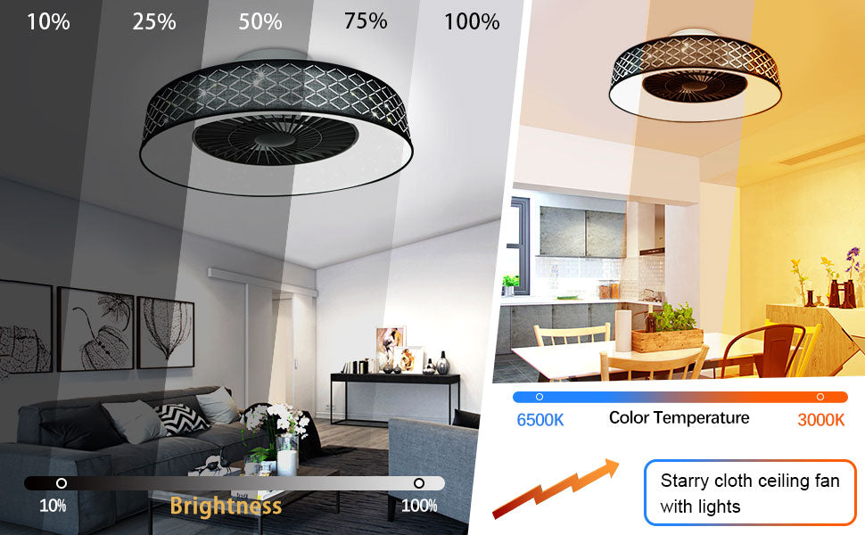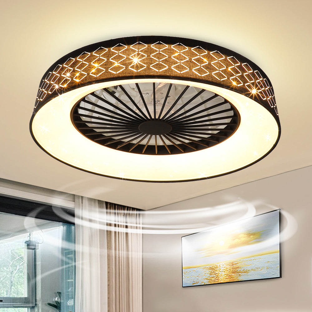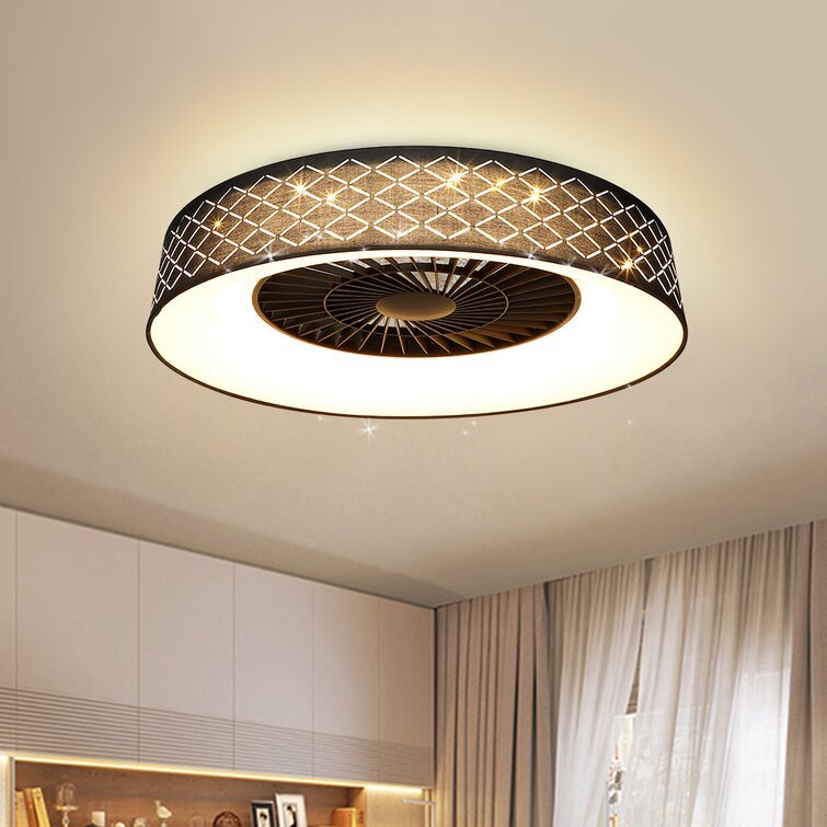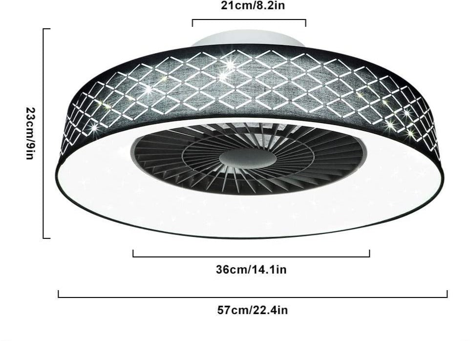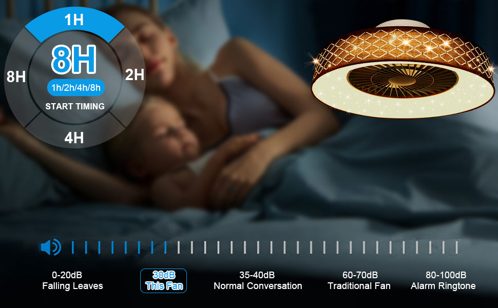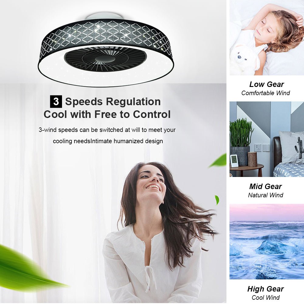 DLLT-kattotuuletin led-valolla, 40 W:n moderni himmennettävä kattotuulettimen valaistus, 7 näkymätöntä terää, 22 puolitasossa, 3 väriä vaihdettava, 3 tiedostoa, ajoitus, käännettävä tasavirtamoottori,