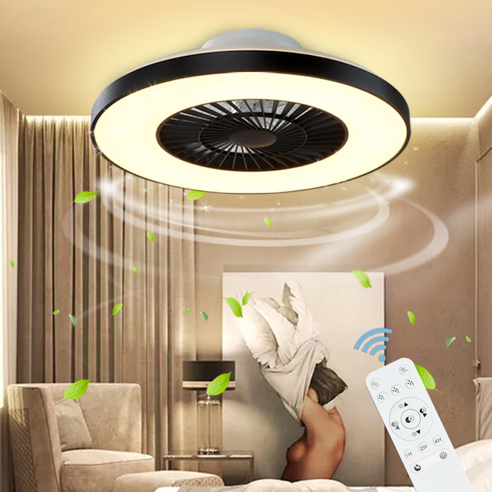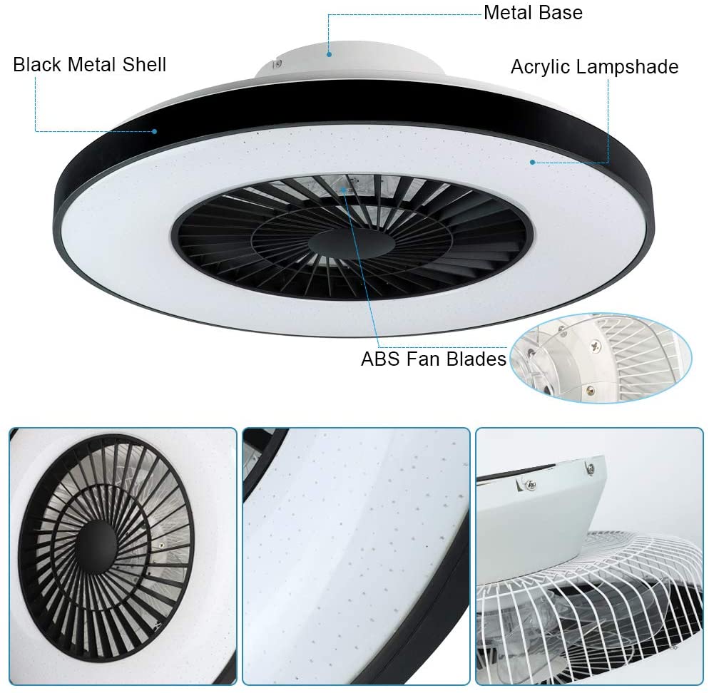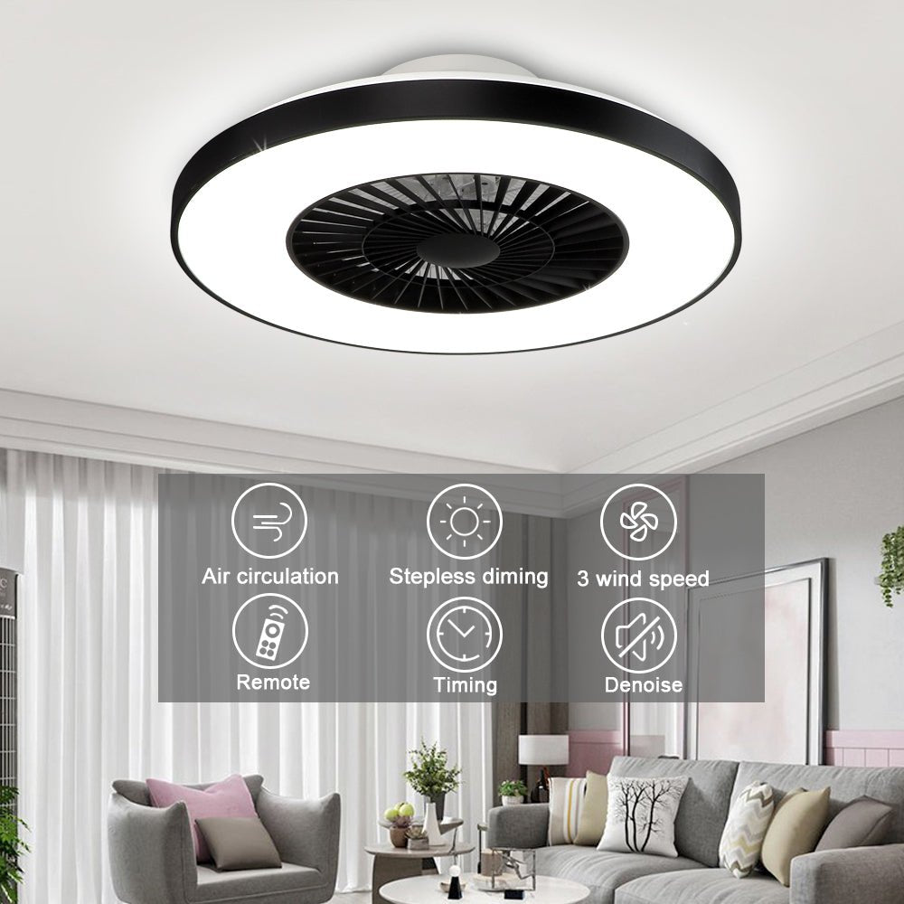 Modernit DLLT-kattotuulettimet valoilla, 40 W:n LED-himmennettävä kaukosäätimellä, 7 näkymätöntä terää puolitasossa asennettava kattotuulettimen valo, 3-nopeuksinen sisäkäyttöinen matalaprofiilinen ka