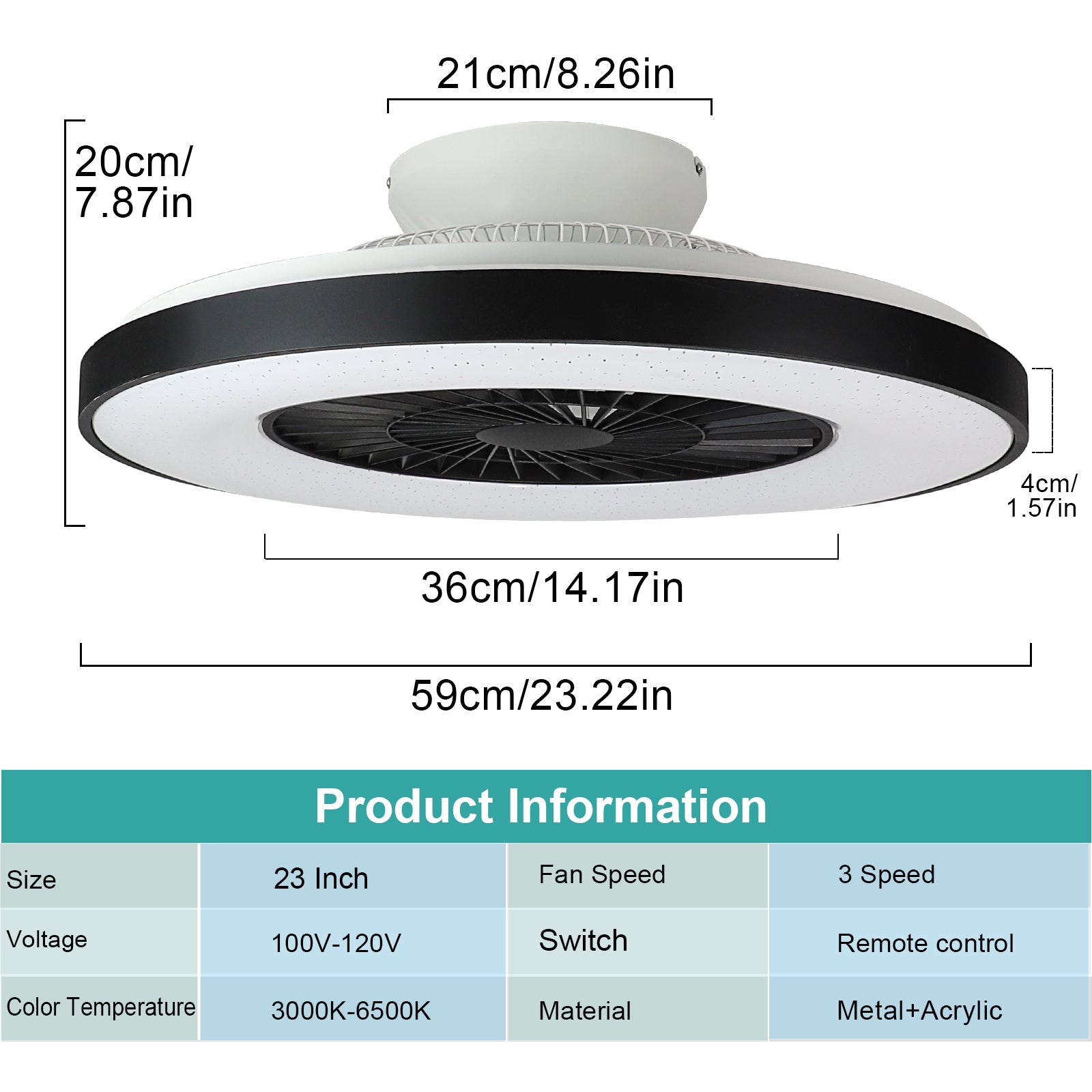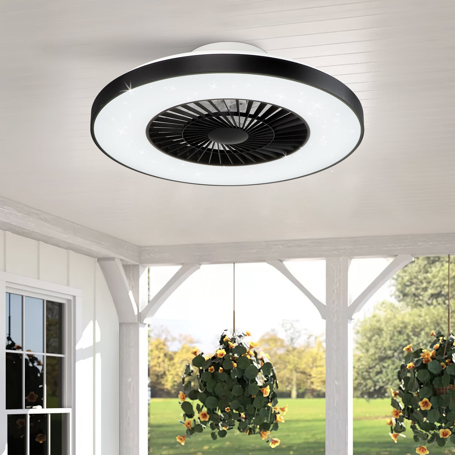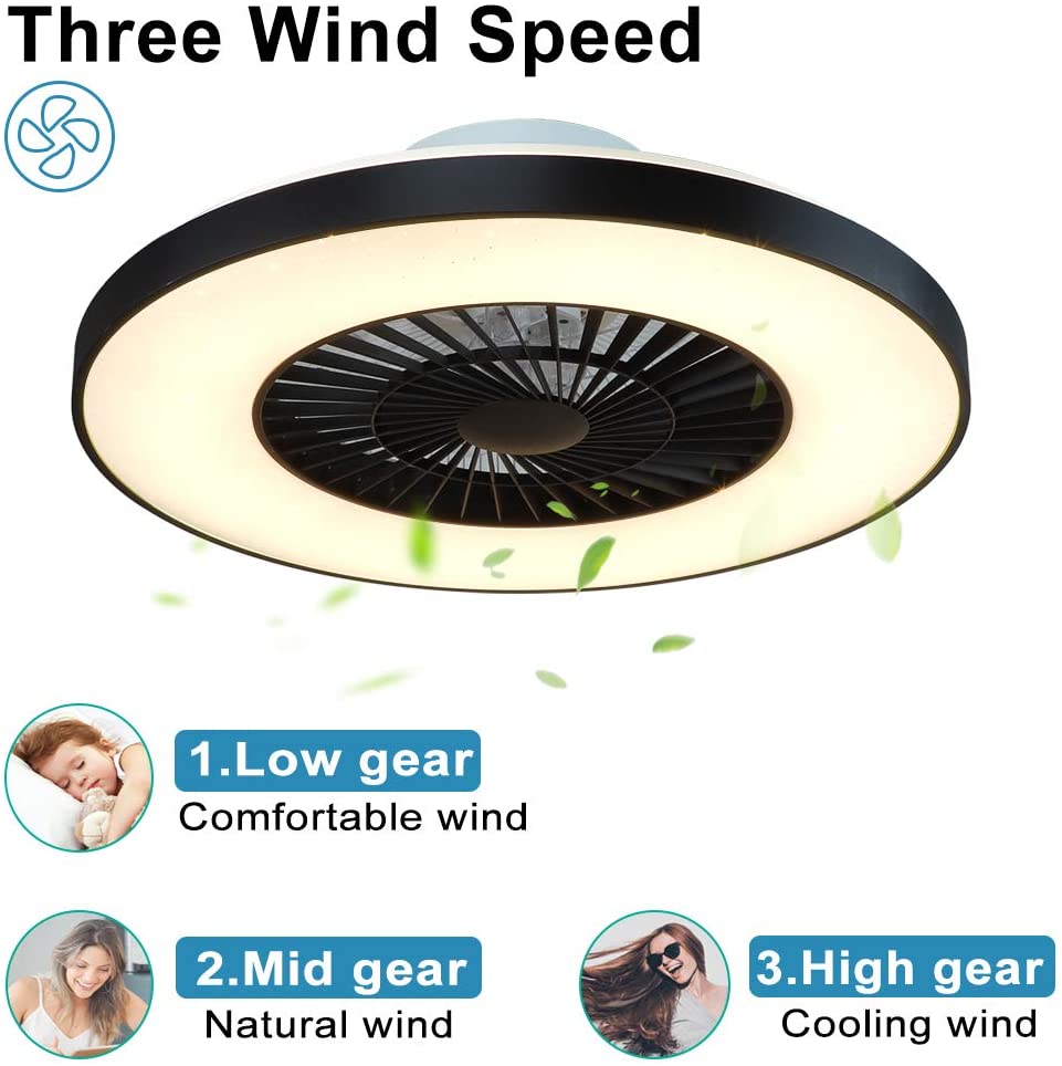 Modernit DLLT-kattotuulettimet valoilla, 40 W:n LED-himmennettävä kaukosäätimellä, 7 näkymätöntä terää puolitasossa asennettava kattotuulettimen valo, 3-nopeuksinen sisäkäyttöinen matalaprofiilinen ka