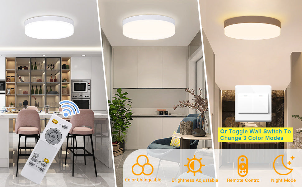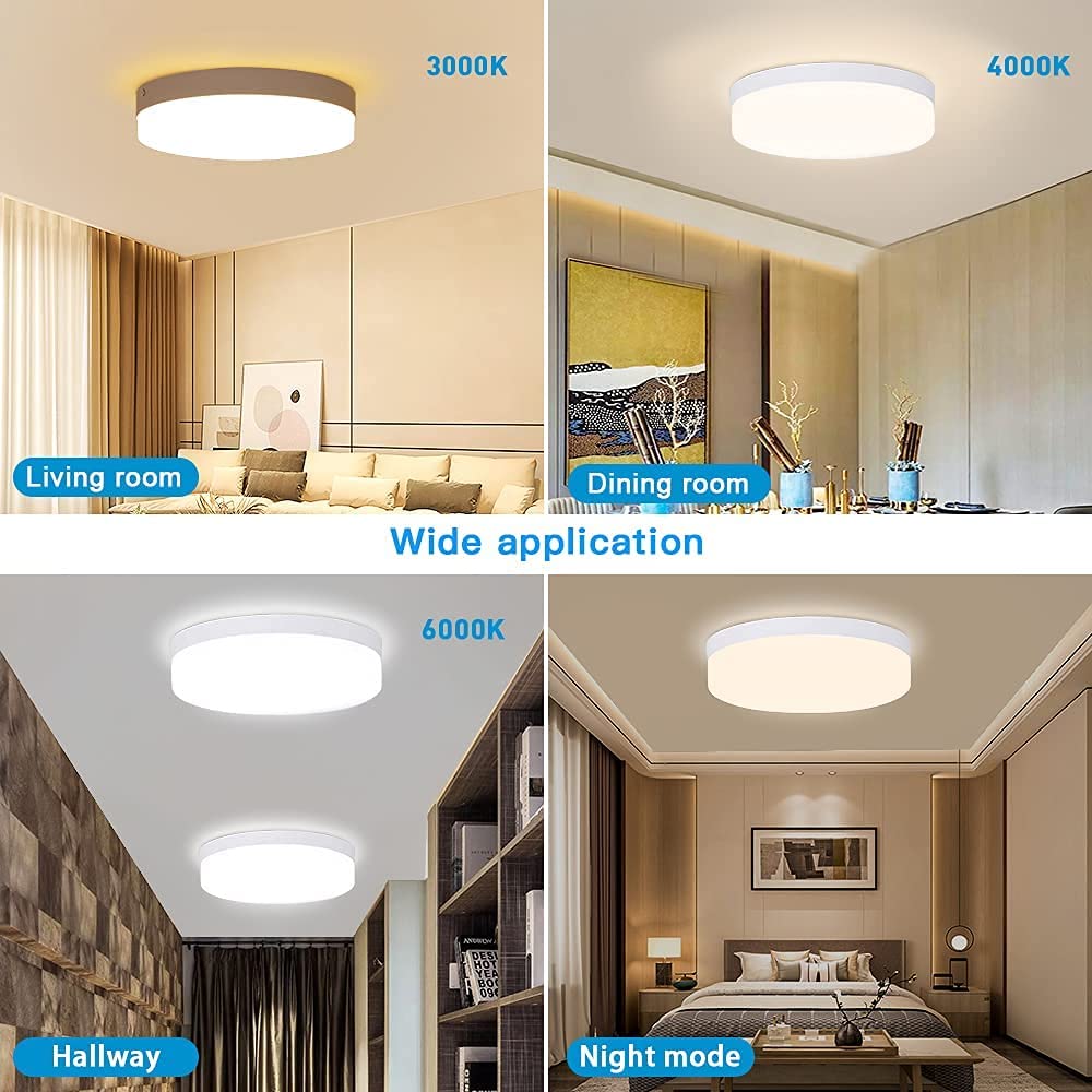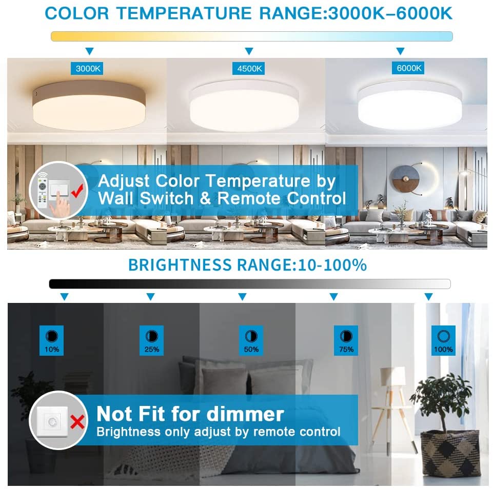 - 【CRI 90 ja helppo asentaa】: Pinta-asennus, helppo asentaa (AC 110-220V). Kaukosäätimellä varustettu kattovalaisin valitsee laadukkaan Alumiinisen lampunpitimen ja läpinäkyvän akryylikuoren, sitä voidaan käyttää turvallisesti erilaisissa sisäympäristöissä. Tällä kattovalaisimilla on CRI90+-luokitus, jonka ansiosta valo toistuu paremmin kohteen todellisen ja alkuperäisen värin mukaan, mikä antaa sinulle elävämmän ja tarkemman valaistuksen.
