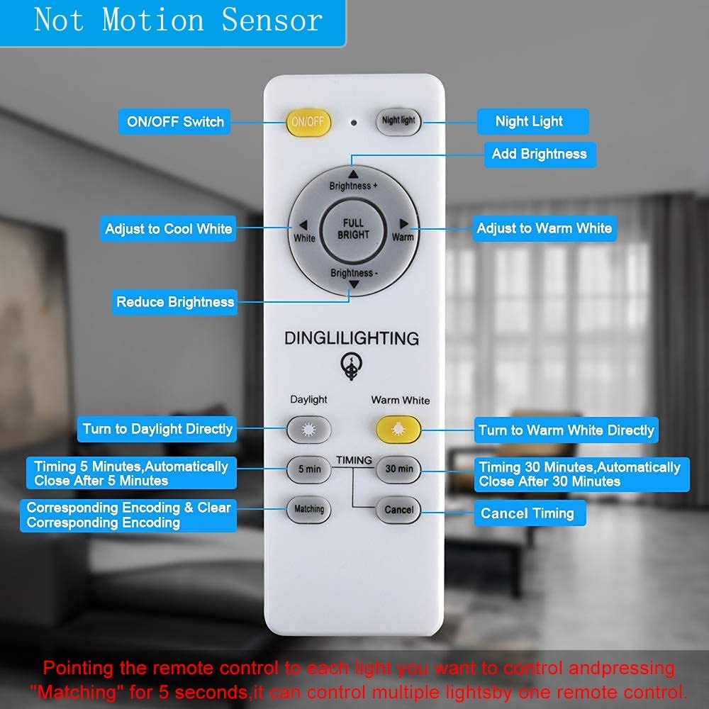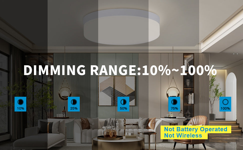 - 【Kauko-ohjain (mukana)& (muistitoiminnolla)】: Ohjaa useita valoryhmiä kerrallaan. Ei tarvitse muodostaa yhteyttä WIFI- tai Bluetooth-verkkoon. Sen ohjausetäisyys on noin 26 tuumaa. Himmennettävä kattovalaisin sopii 118-129 neliöjalkaalle (Huom: seinäkytkimellä ohjattaessa valaistusaika ylittää 10 sekuntia, muistitoiminto tulee voimaan. Valojen sytyttäminen ja sammuttaminen usein aiheuttaa muistihäiriön)