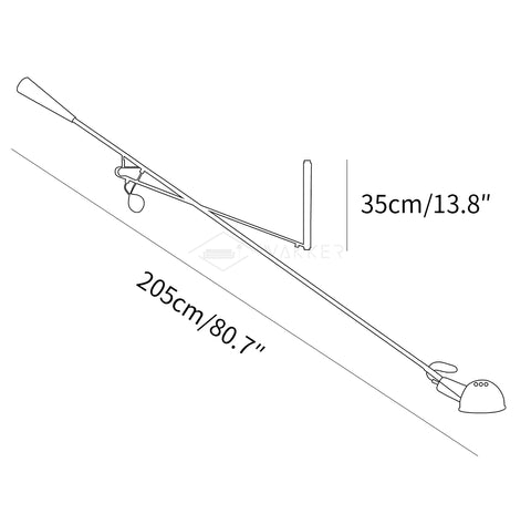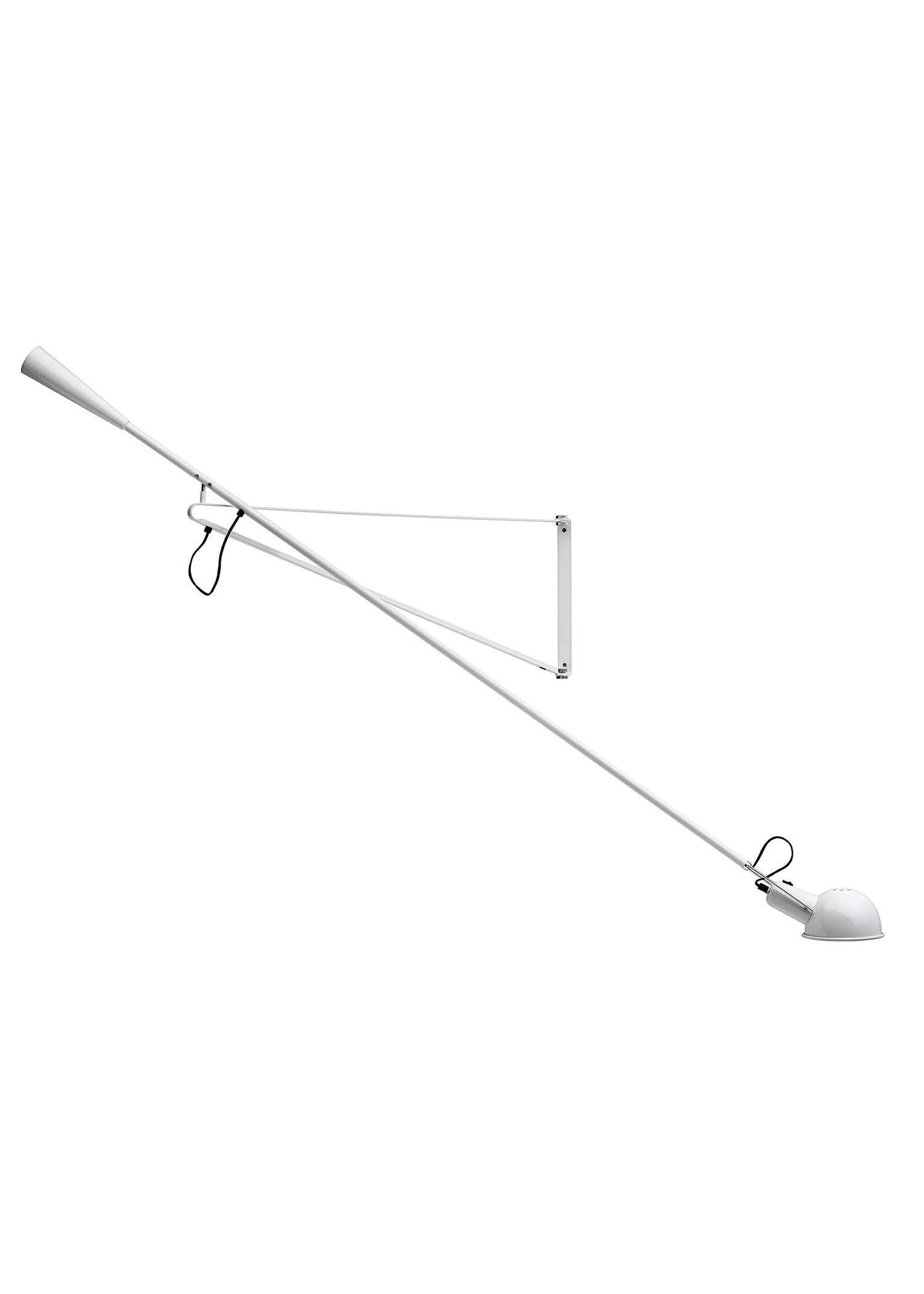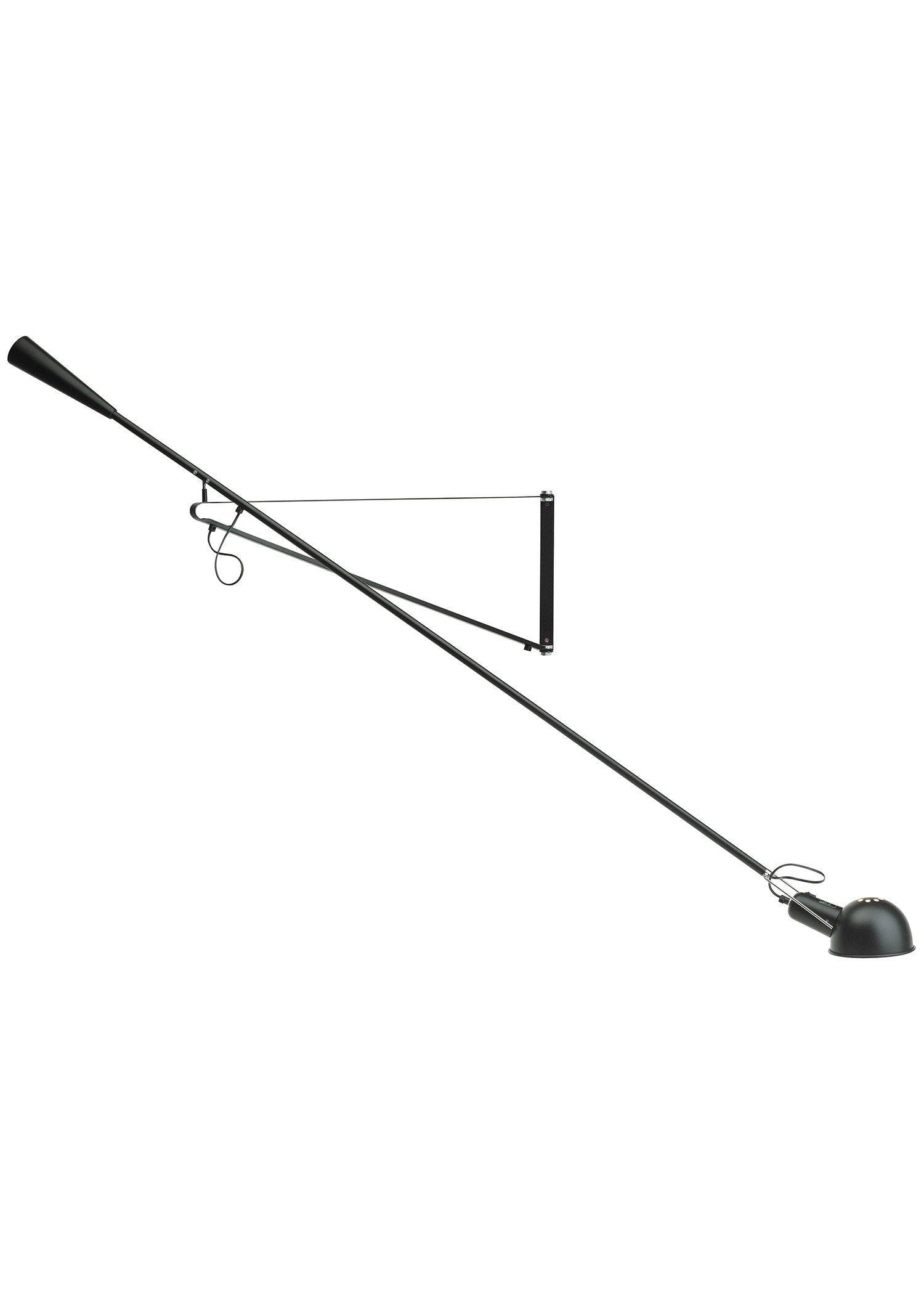 265 Seinävalaisin antaa suoraa valoa. Maalattu metalli säädettävä varsi ja heijastin. musta maalattu metalli heijastintuki. Valurautainen kartiomainen vastapaino. Maalattu metalliseinäteline.