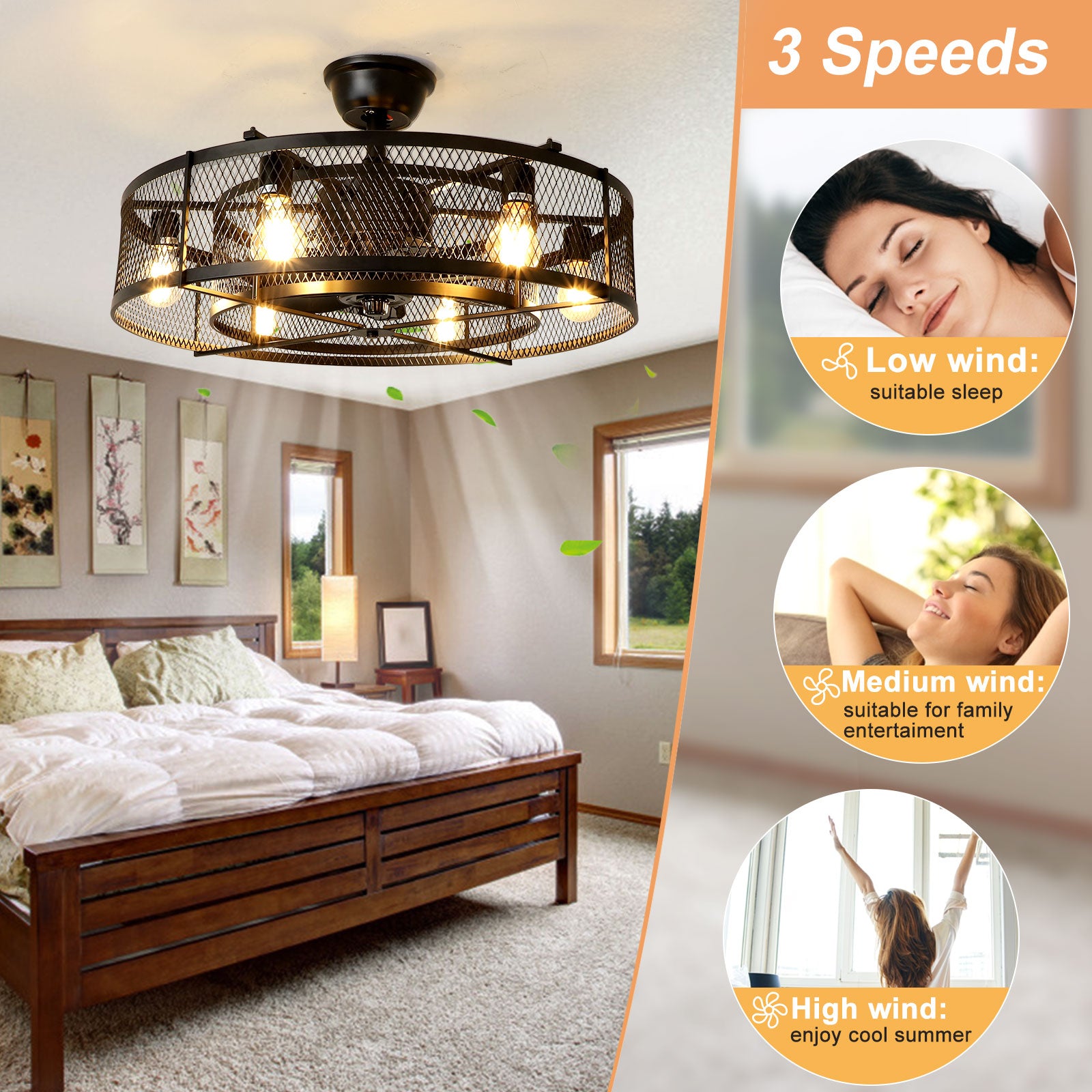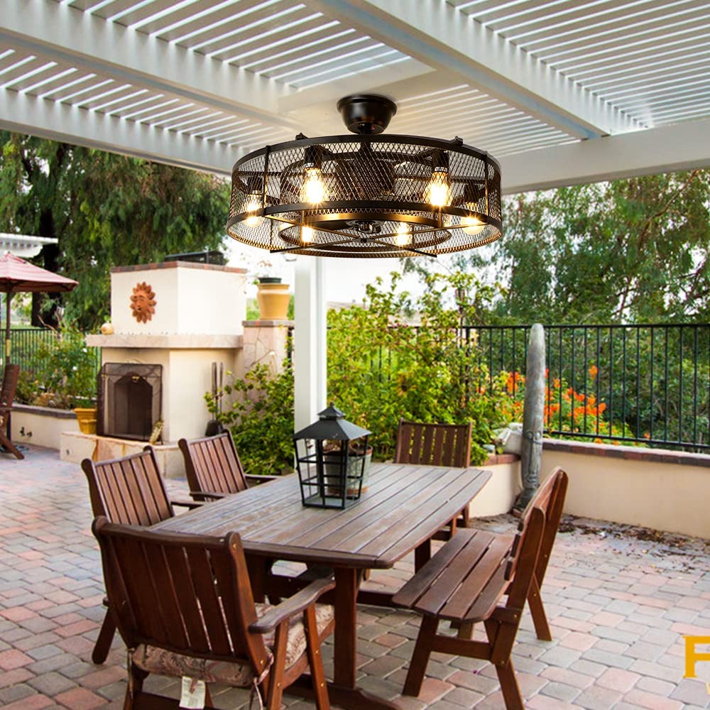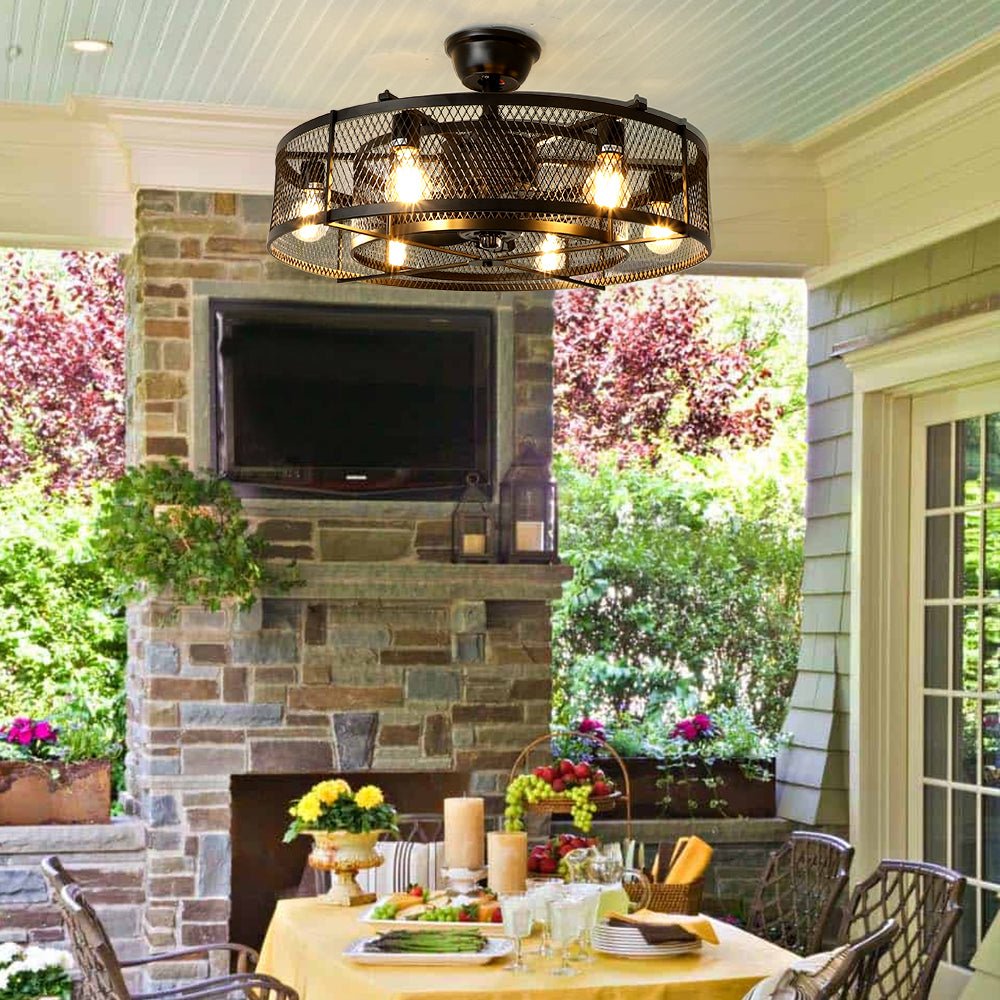 Depuley 26" maalaistalon kattotuuletin 6 valolla, teollinen sisä-/ulkokattotuuletinvalaistus, mattamusta kattotuuletinvalot, häkkikattotuuletin 6-nopeuksisella kaukosäätimellä (polttimo ei sisälly)