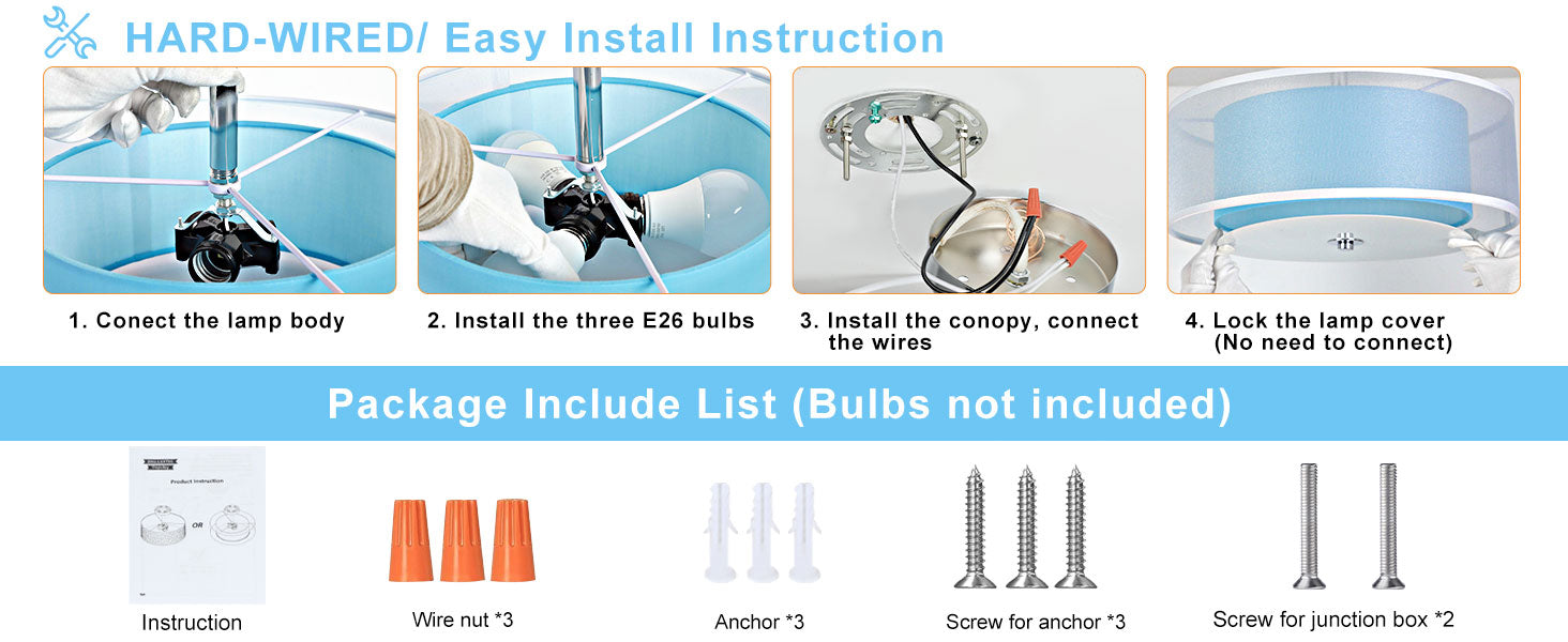 - Yhteensopiva useiden lamppujen kanssa (60 W Max), kuten hehku-, LED-, CFL- ja halogeenilamput.