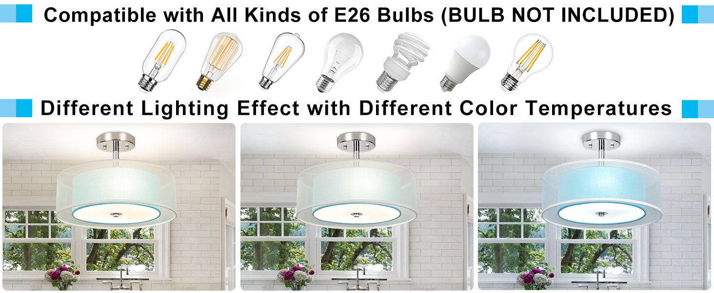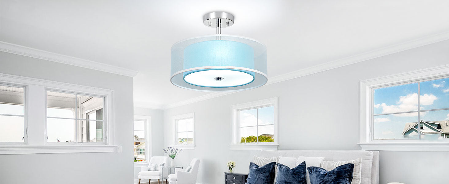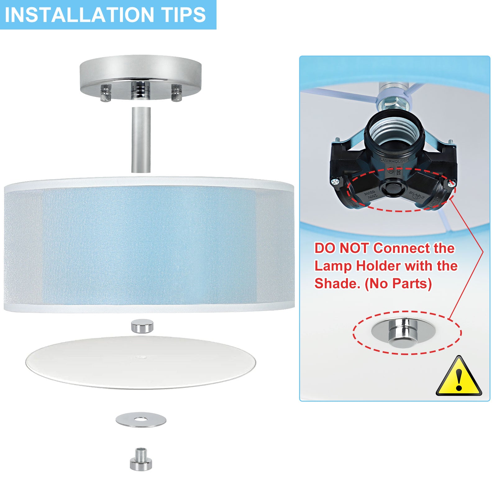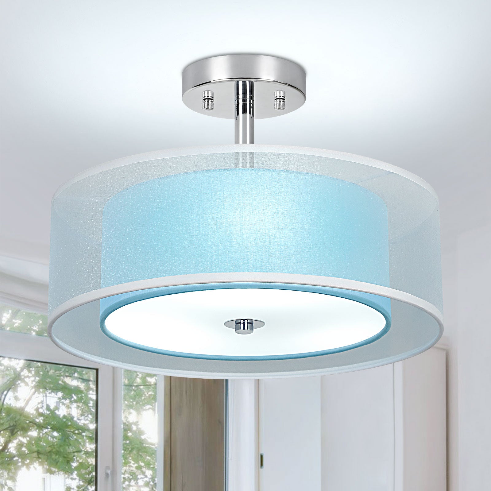 3-kevyt, puolitasossa asennettava kattovalaisin, 15 tuuman sininen rumpuvalaisin, kattoon ripustettu kaksinkertainen kangasvarjostin, moderni lähellä kattoa oleva valaisin olohuoneeseen Makuuhuone Kei