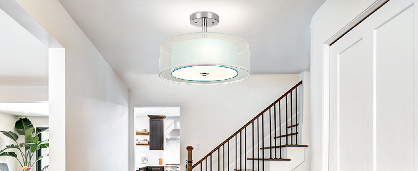 - Double Frabic Drum Shade: Rummun muotoisessa valaisimessa on kaksi valkoista ulompaa ja sisäpuolista kangasvarjostusta, mikä auttaa pehmentämään valoa ja suojaamaan silmiä.
