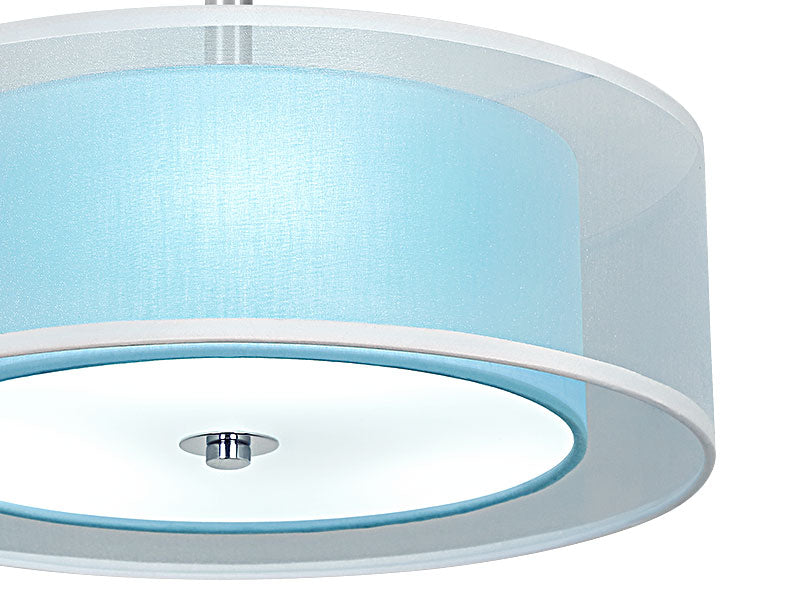 DINGLILIGHTING 3-valaisin puoliksi upotettava kattovalaisin, sininen rumpuvalaisimet kaksinkertaisella kangasvarjostimella, moderni riippuvalaisin olohuoneeseen Makuuhuone Keittiö Ruokailuhuone Eteinen