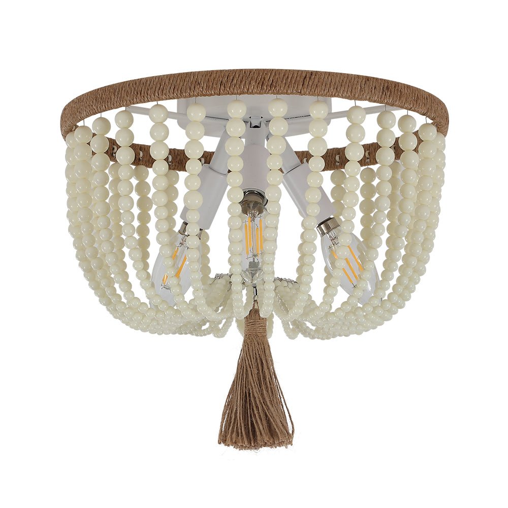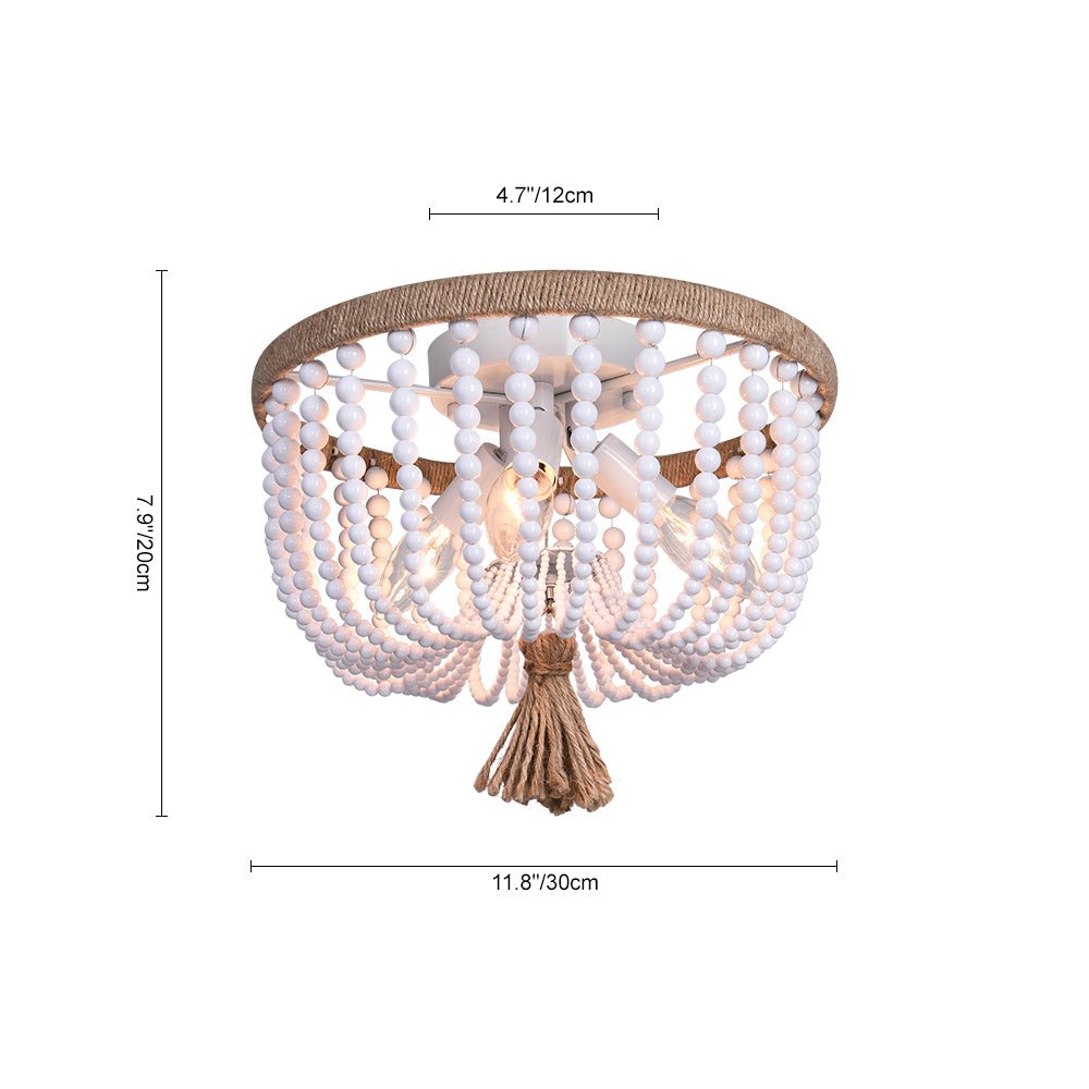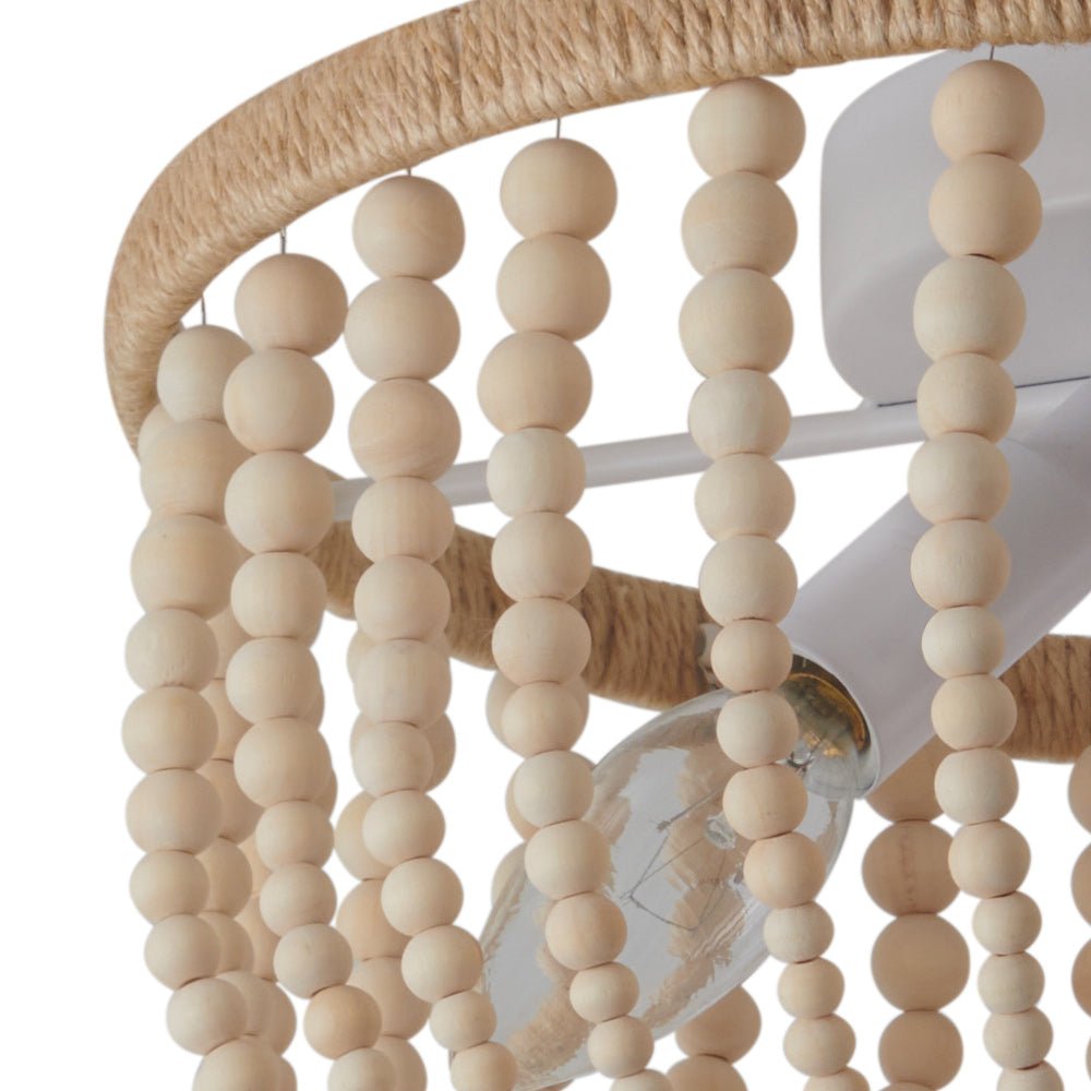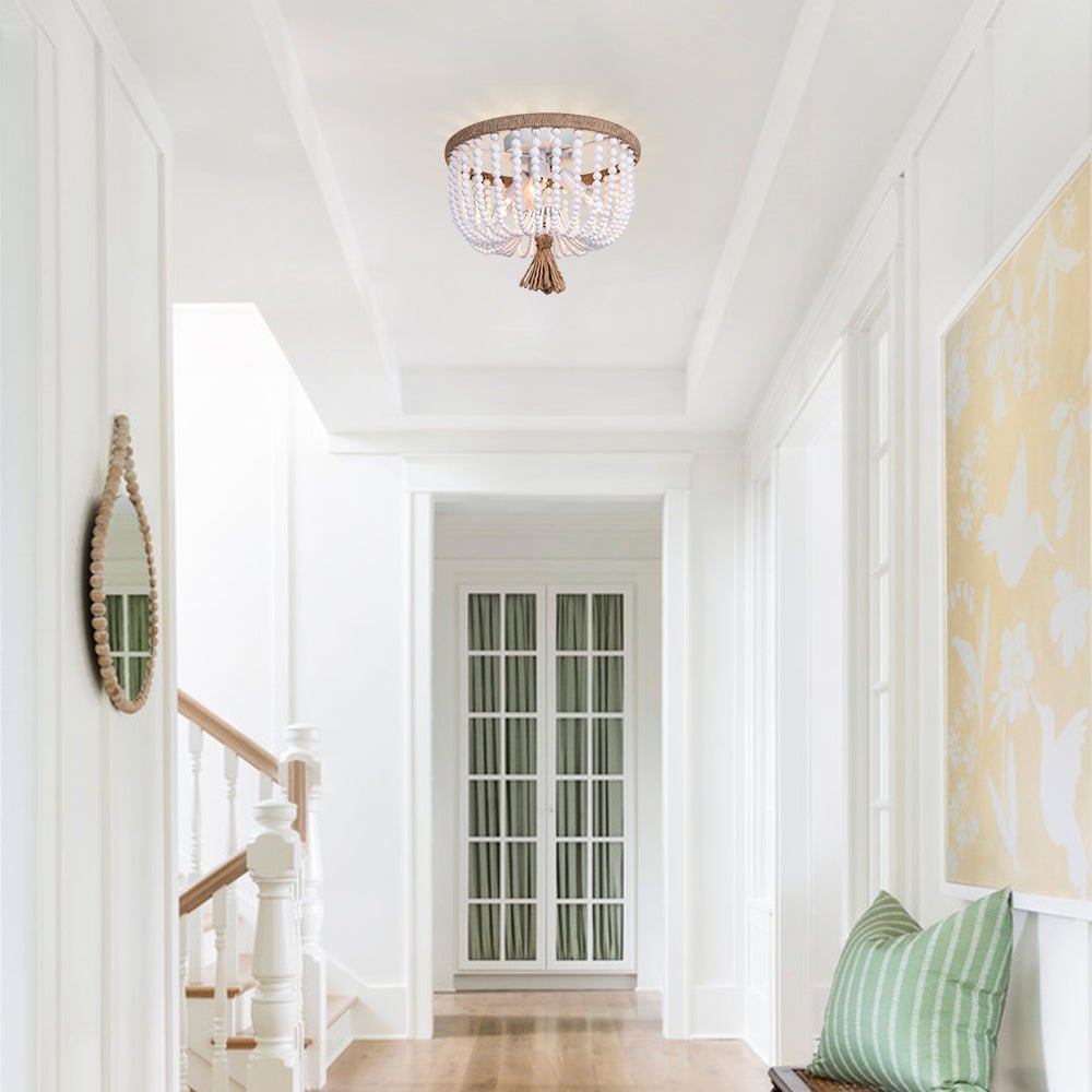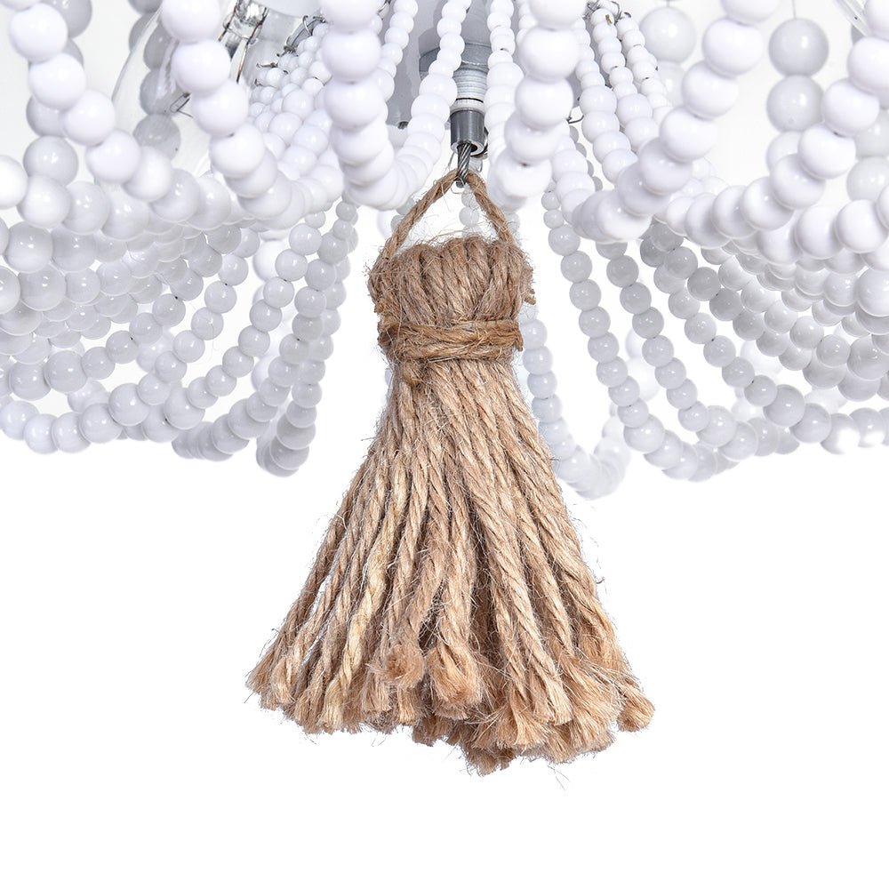 Ikonisena eksoottisena valaisimena tämä boheemi helmitaskuasennus tuo luonnollisen ja reippaan rannikon kosketuksen laajaan tyyliin modernista maalaistalosta ihanaan Barbie-tyyliin. Tämä kulhoon asennettava valaistus esittelee pyöreän kattokehyksen reunasta ripustettuja muovi- tai puuhelmiä, jotka kerääntyvät keskelle ja muodostavat kupolin muotoisen harjakattoisen ilmeen. Luonnonruskeat hamppuköysiyksityiskohdat ja käsintehty tupsu keskellä alaosassa luovat maanläheisen aksentin tähän helmillä koristeltu kattovalaisin. Kolmessa E12/E14-polttimossa (ei sisälly toimitukseen) on oikea määrä valoa, jotta voit pestä tilan avoimen varjostimen läpi, kun se sytytetään. Täydellinen asennettavaksi eteiseen, portaikkoon, pesuhuoneeseen, keittiöön tai makuuhuoneeseen klassisen ja näyttävän viimeistelyn saamiseksi.Detail