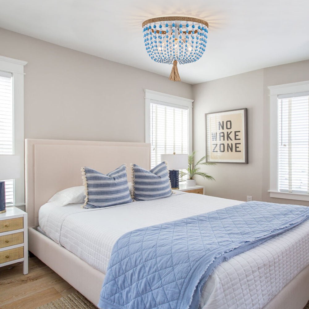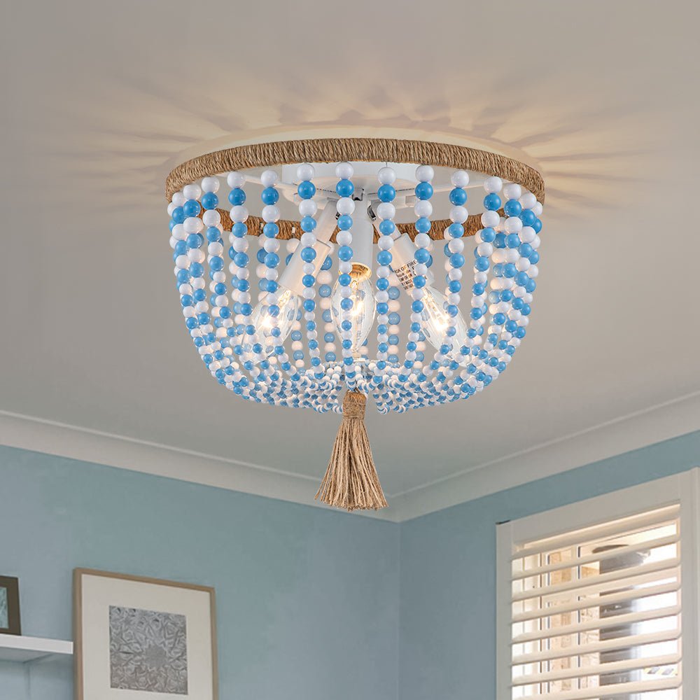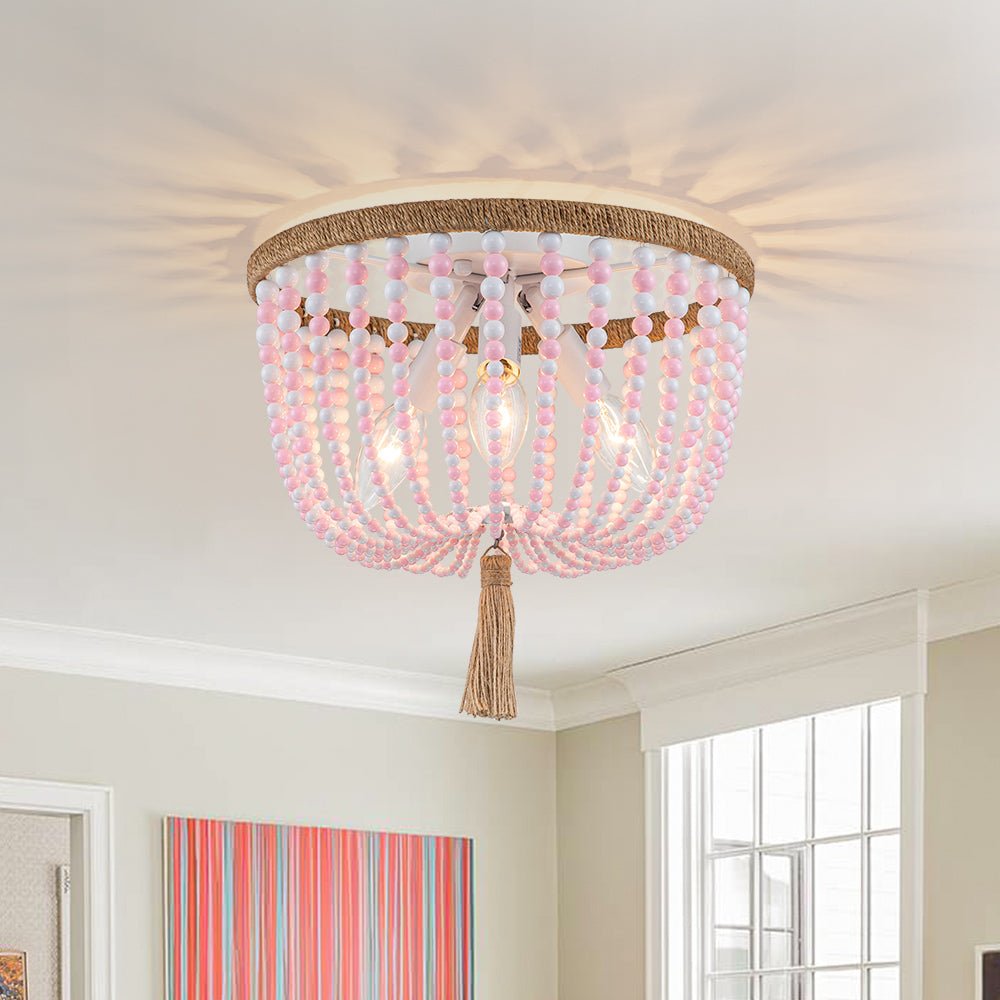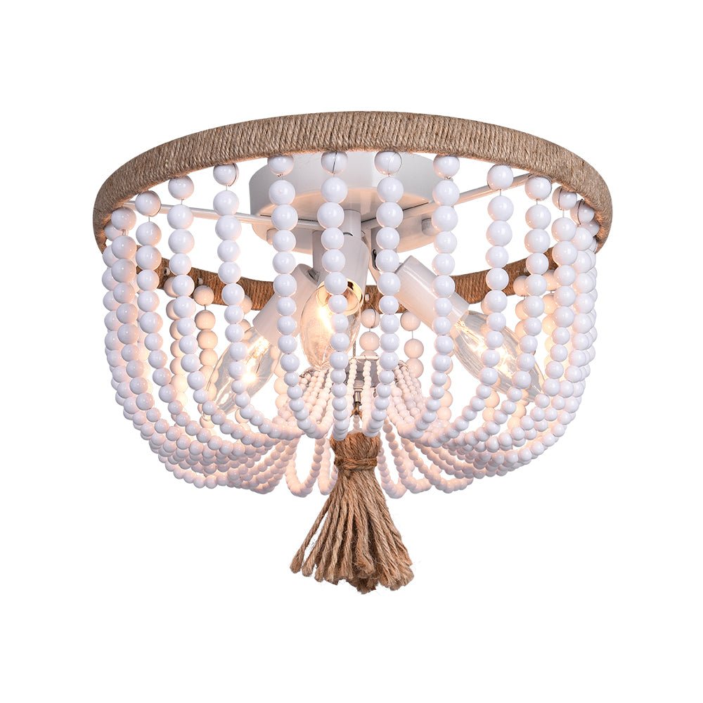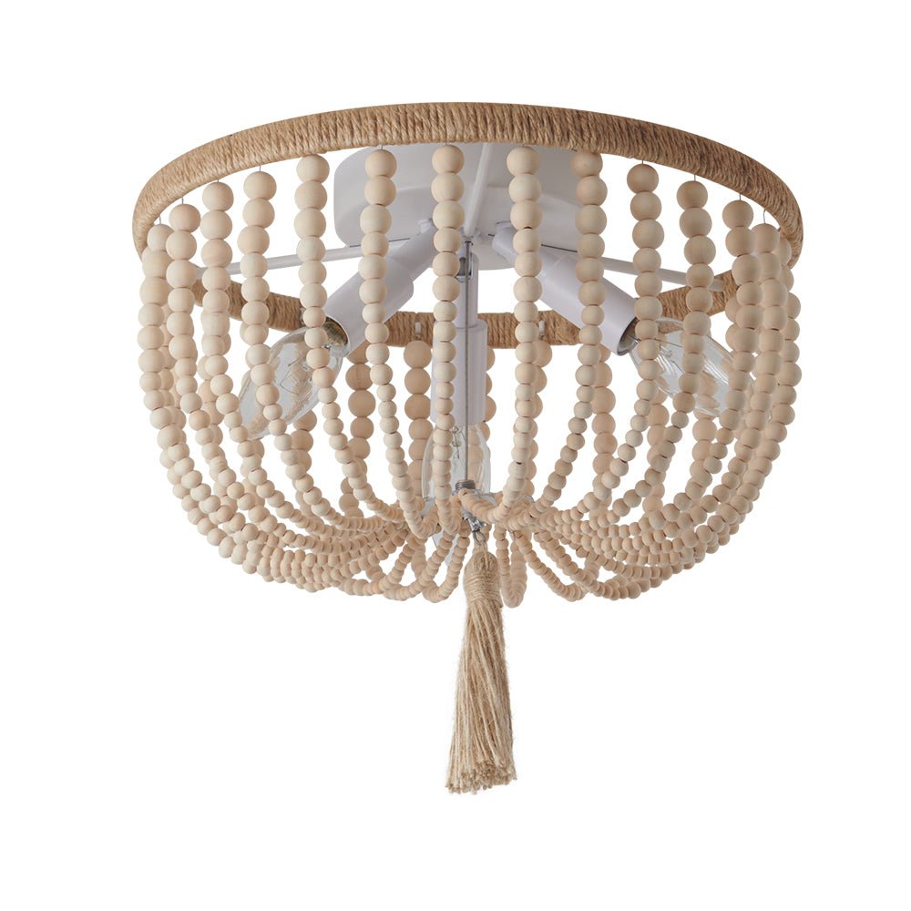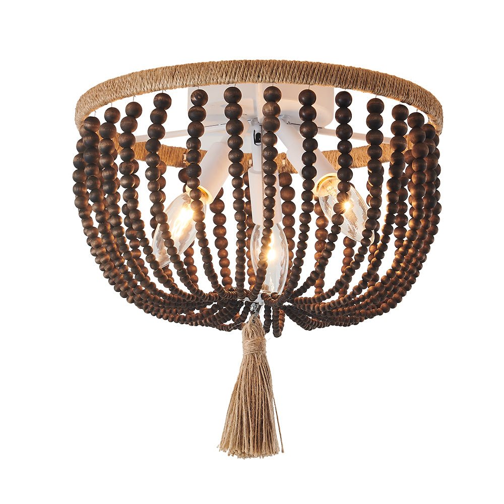 Ikonisena eksoottisena valaisimena tämä boheemi helmitaskuasennus tuo luonnollisen ja reippaan rannikon kosketuksen laajaan tyyliin modernista maalaistalosta ihanaan Barbie-tyyliin. Tämä kulhoon asennettava valaistus esittelee pyöreän kattokehyksen reunasta ripustettuja muovi- tai puuhelmiä, jotka kerääntyvät keskelle ja muodostavat kupolin muotoisen harjakattoisen ilmeen. Luonnonruskeat hamppuköysiyksityiskohdat ja käsintehty tupsu keskellä alaosassa luovat maanläheisen aksentin tähän helmillä koristeltu kattovalaisin. Kolmessa E12/E14-polttimossa (ei sisälly toimitukseen) on oikea määrä valoa, jotta voit pestä tilan avoimen varjostimen läpi, kun se sytytetään. Täydellinen asennettavaksi eteiseen, portaikkoon, pesuhuoneeseen, keittiöön tai makuuhuoneeseen klassisen ja näyttävän viimeistelyn saamiseksi.Detail